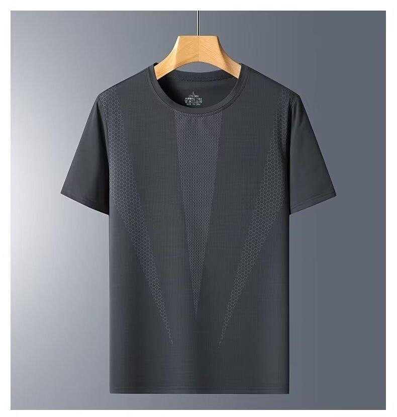 Camiseta de malla de seda de hielo para hombre, de secado rápido, de verano, de manga corta, holgada, transpirable, para fitness, de media manga, fina.