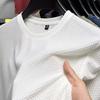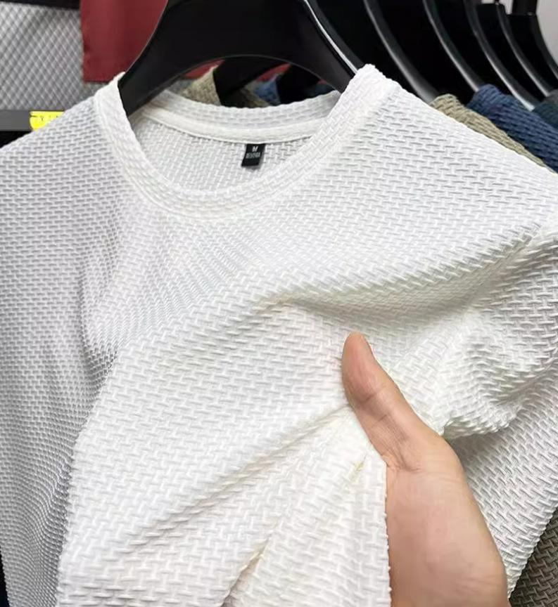 Camiseta de manga corta fina de verano de malla de seda de hielo para hombre, deportiva, informal, holgada, de secado rápido, transpirable, con cuello redondo y media manga.