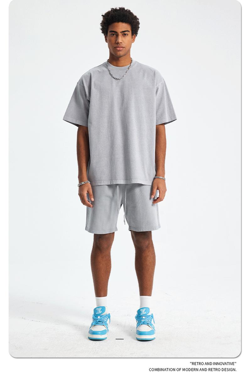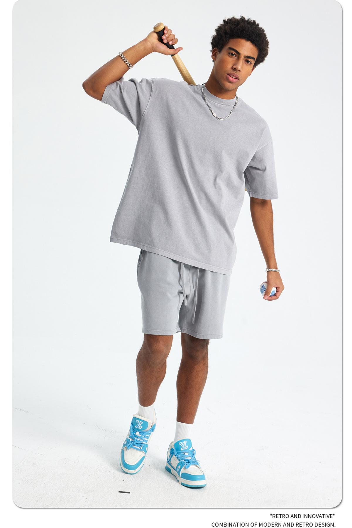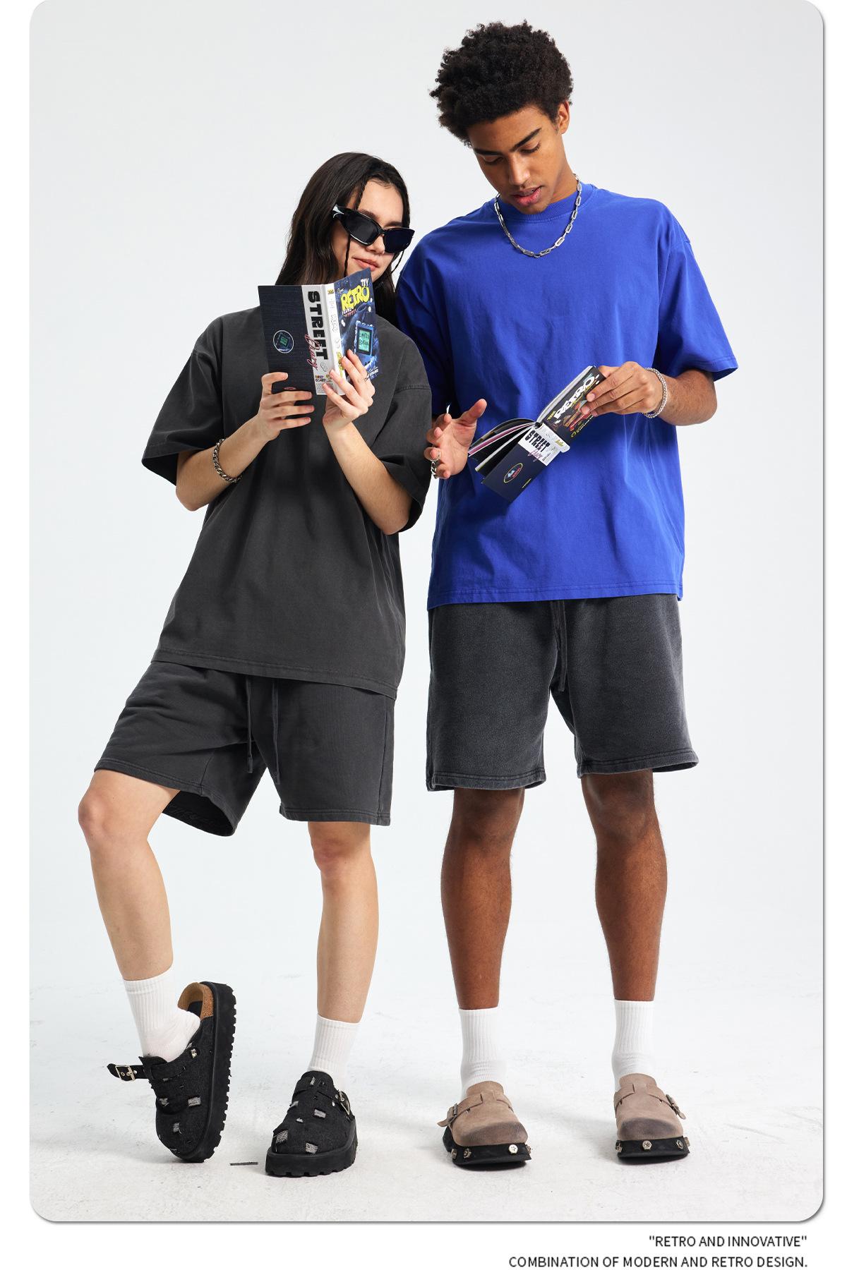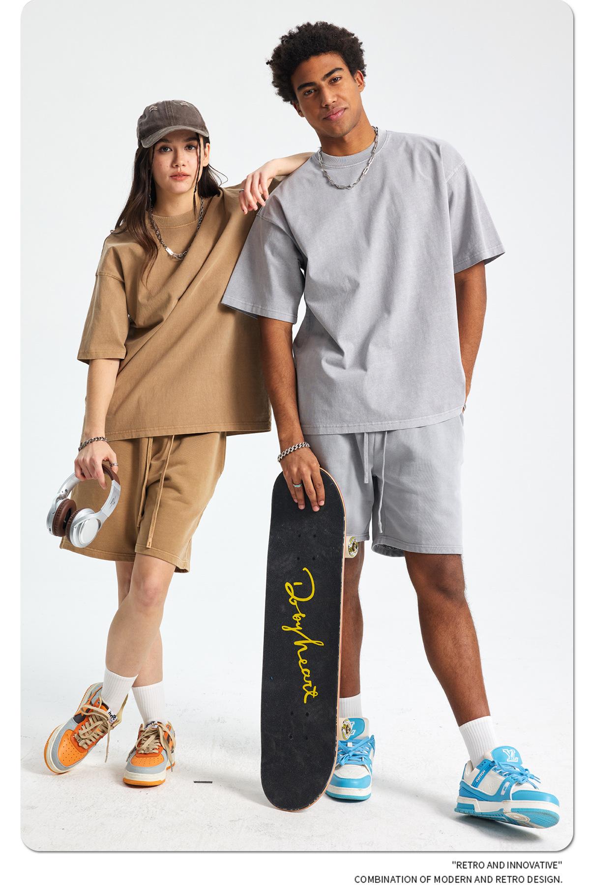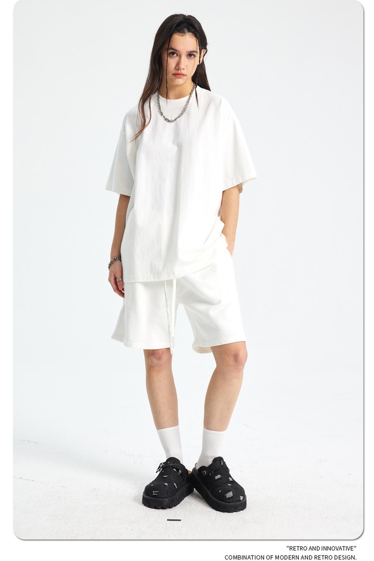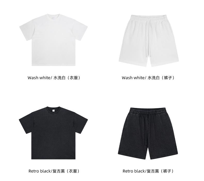 Ropa de Hombre 2025 Verano Nuevo Producto Lavado al Agua Teñido Blanco Manga Corta Shorts Marca de Moda Traje de Hombre y Mujer