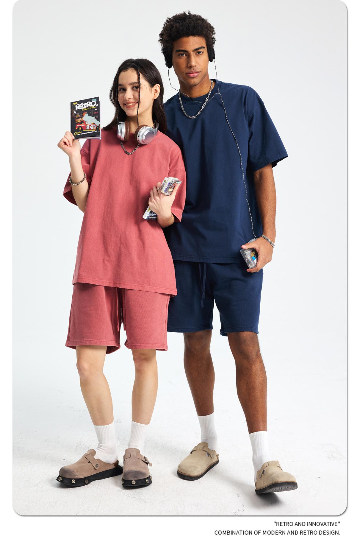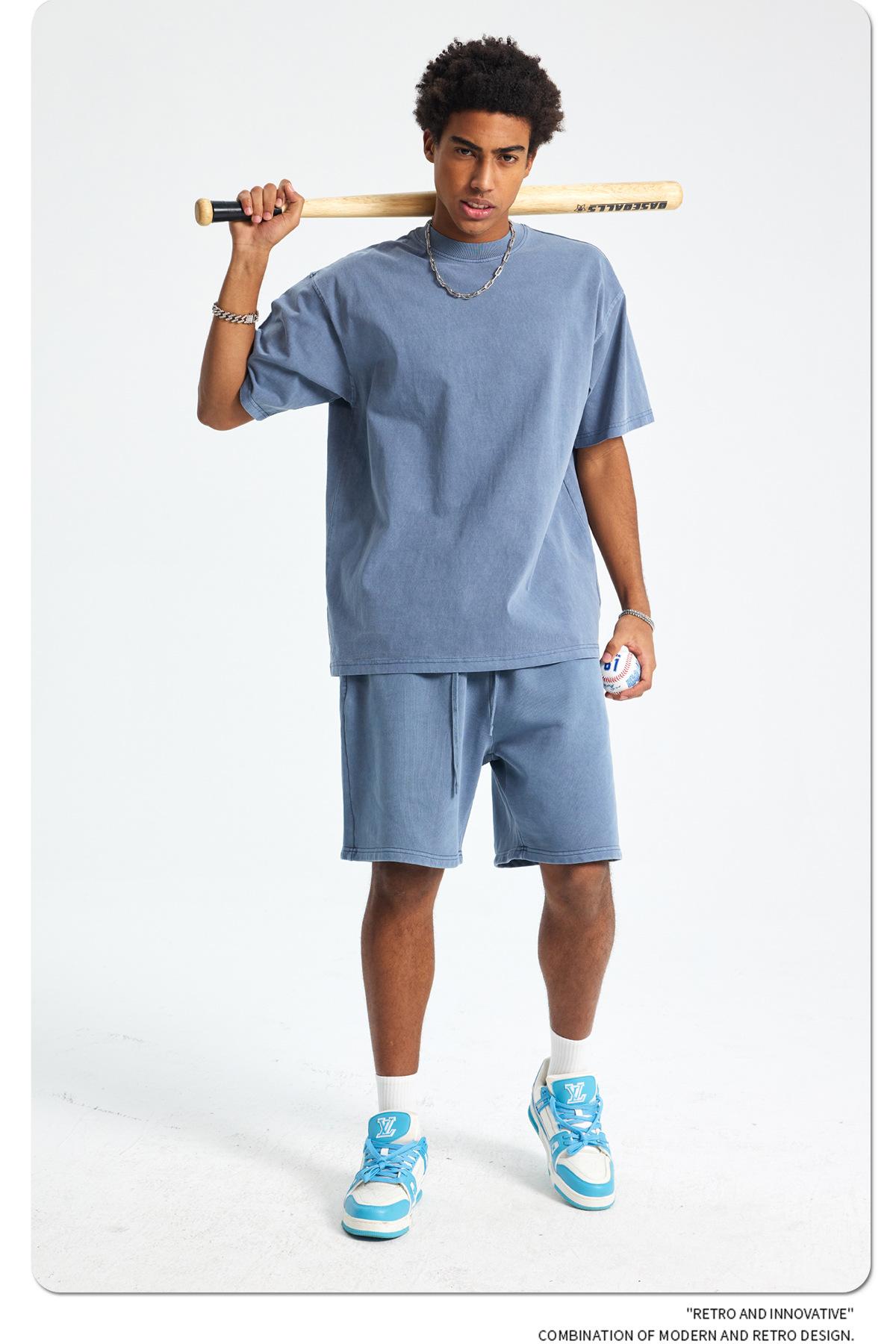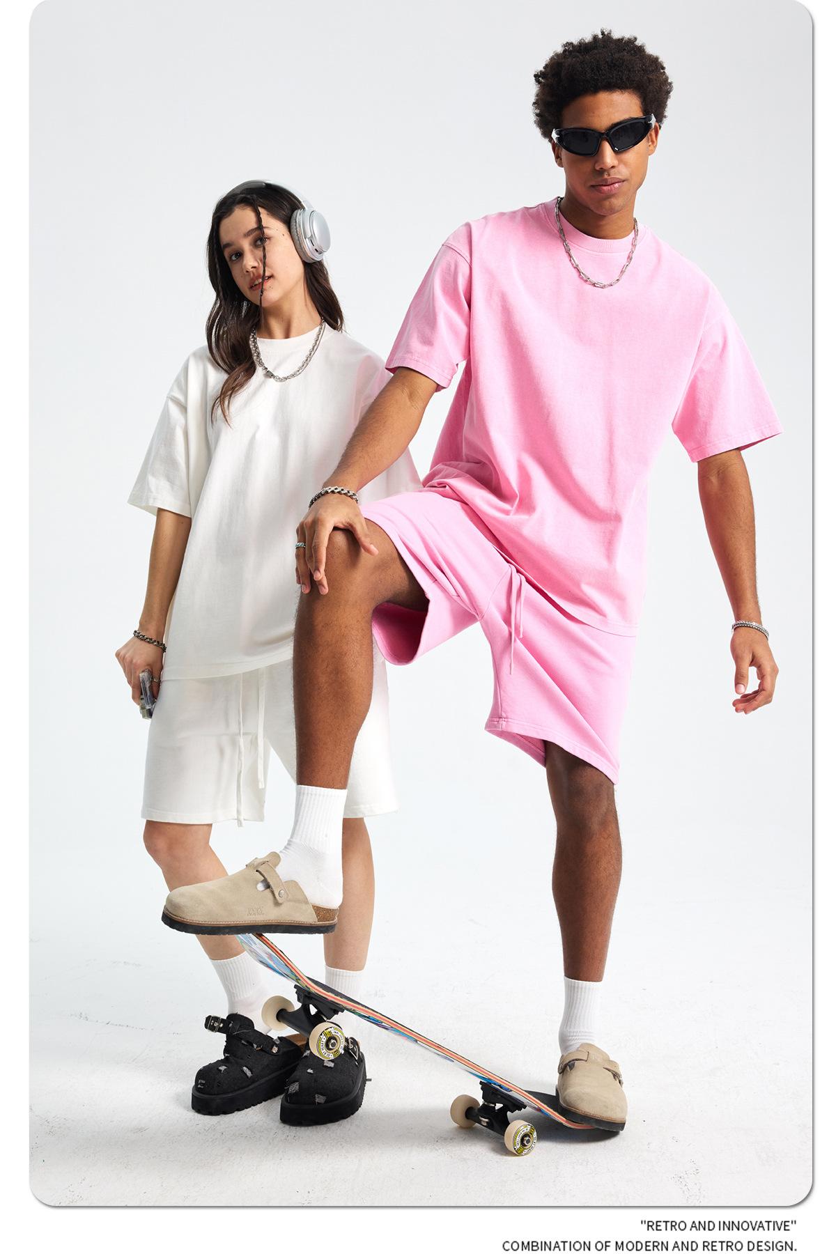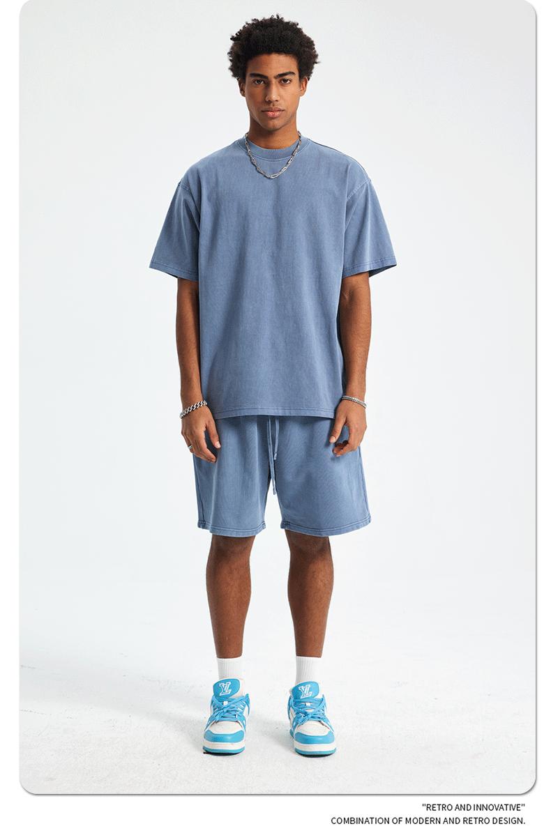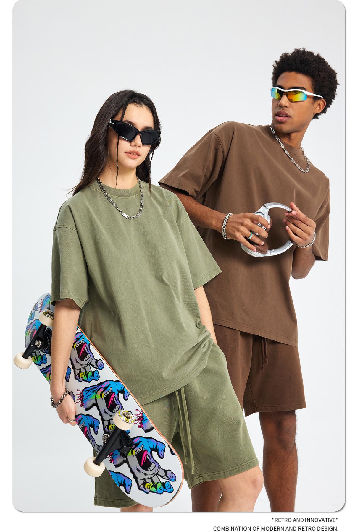 Ropa de Hombre 2025 Verano Nuevo Producto Lavado al Agua Teñido Blanco Manga Corta Shorts Marca de Moda Traje de Hombre y Mujer