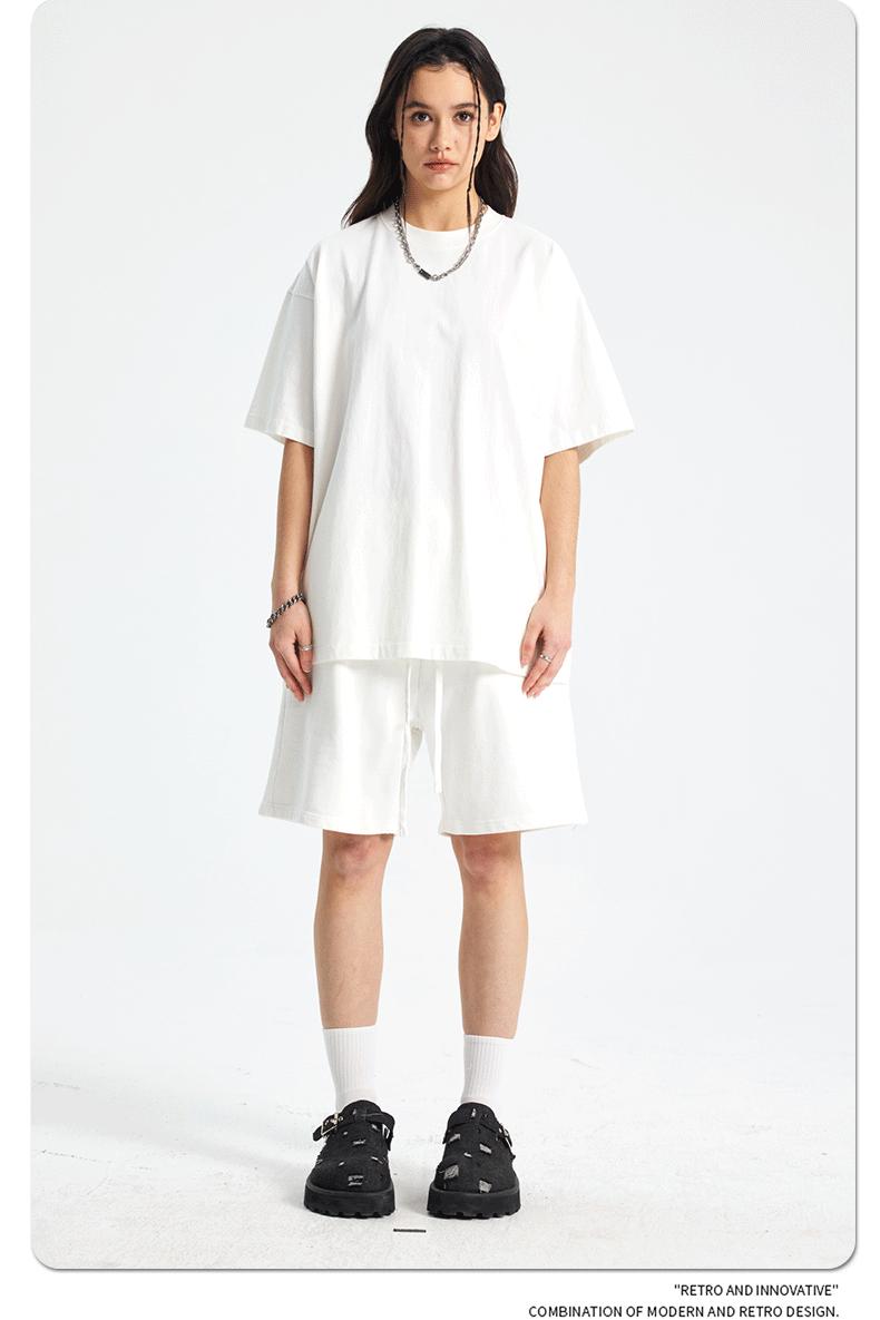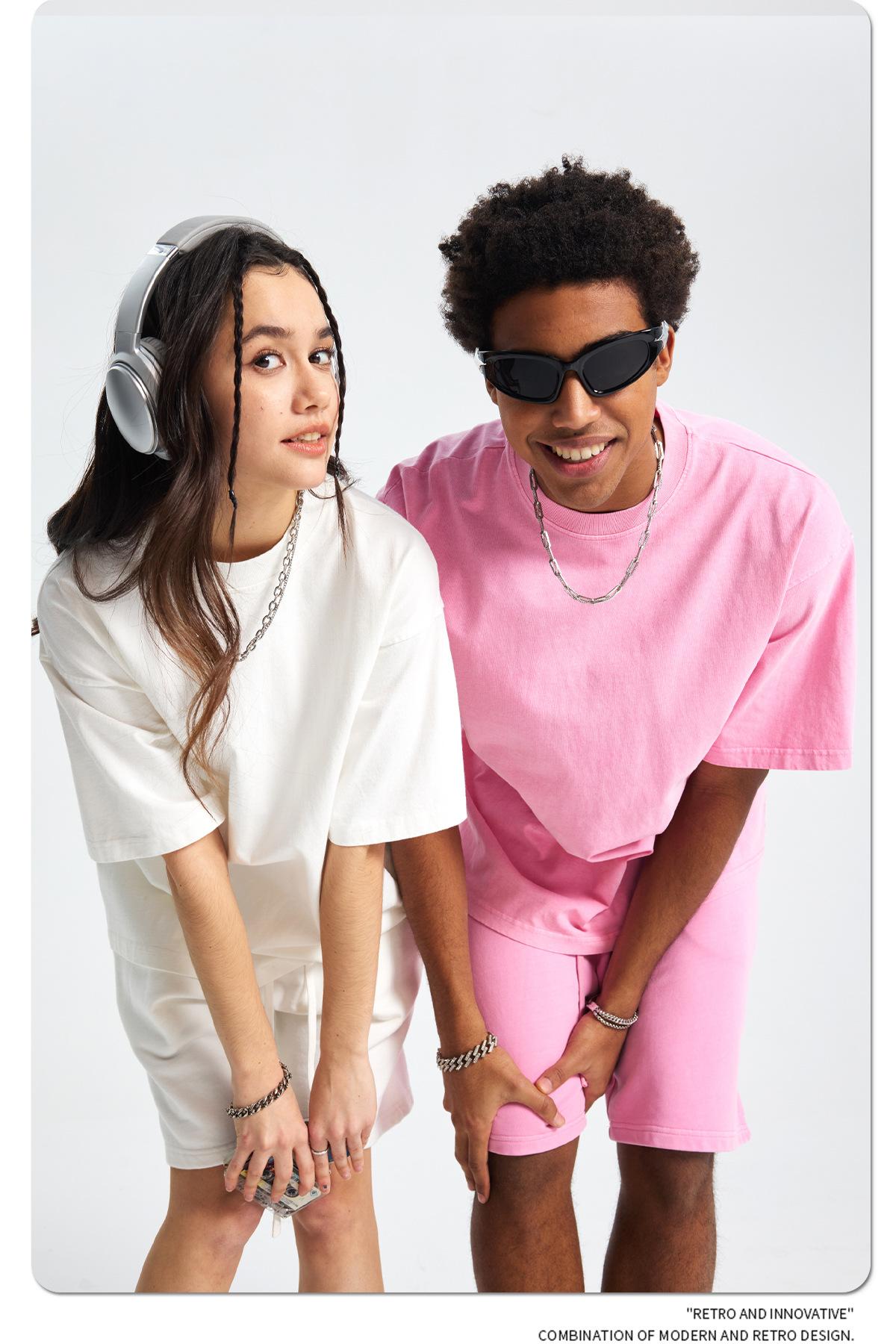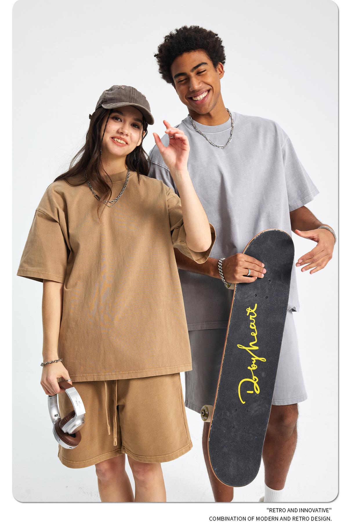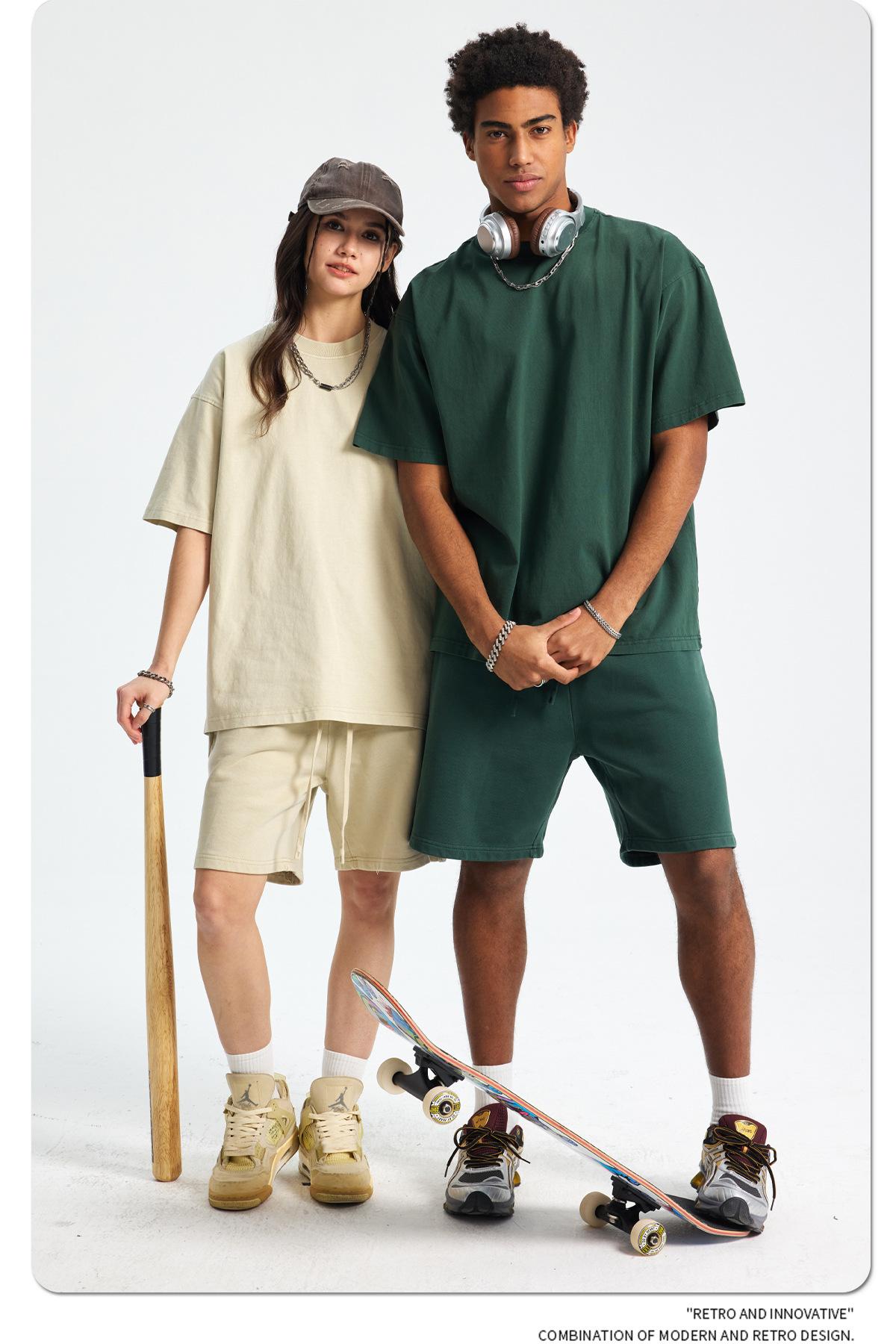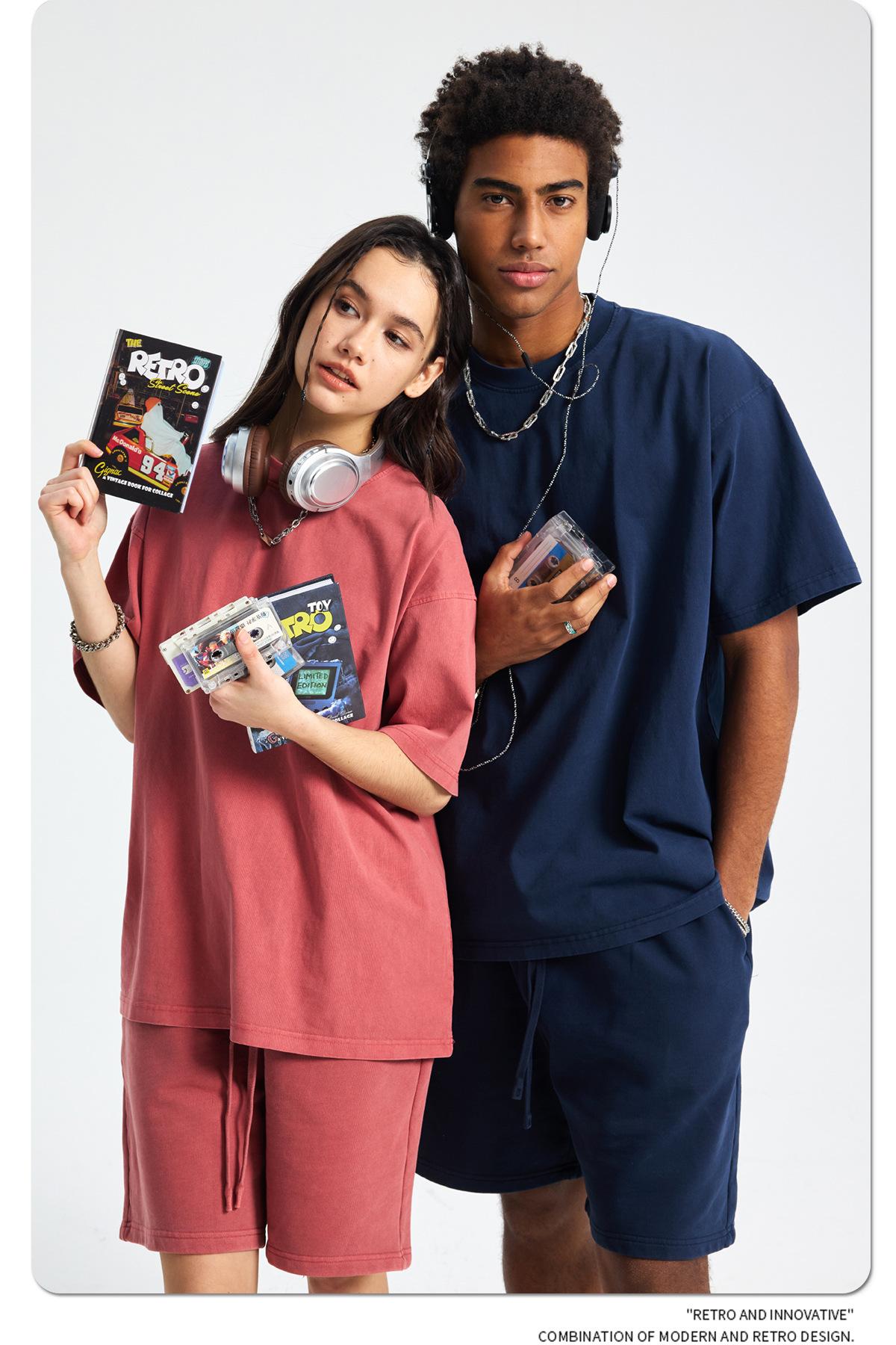 Ropa de Hombre 2025 Verano Nuevo Producto Lavado al Agua Teñido Blanco Manga Corta Shorts Marca de Moda Traje de Hombre y Mujer