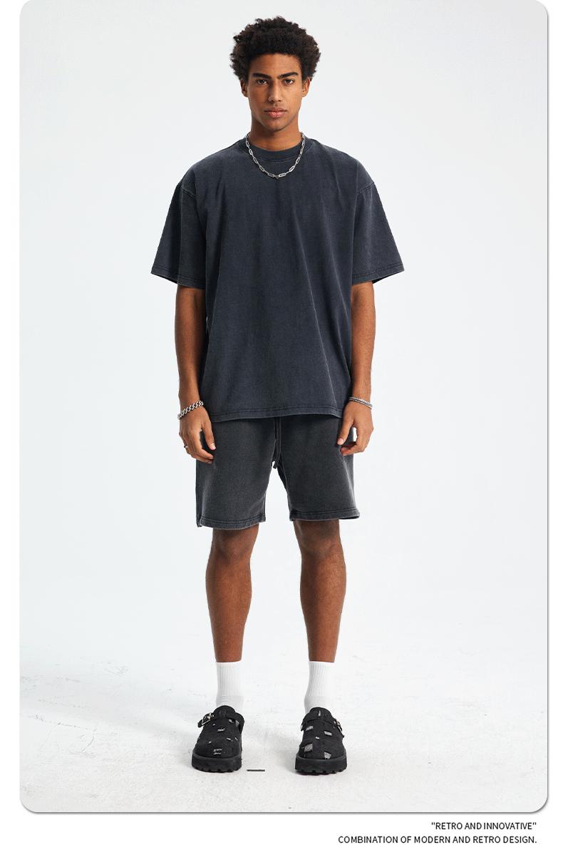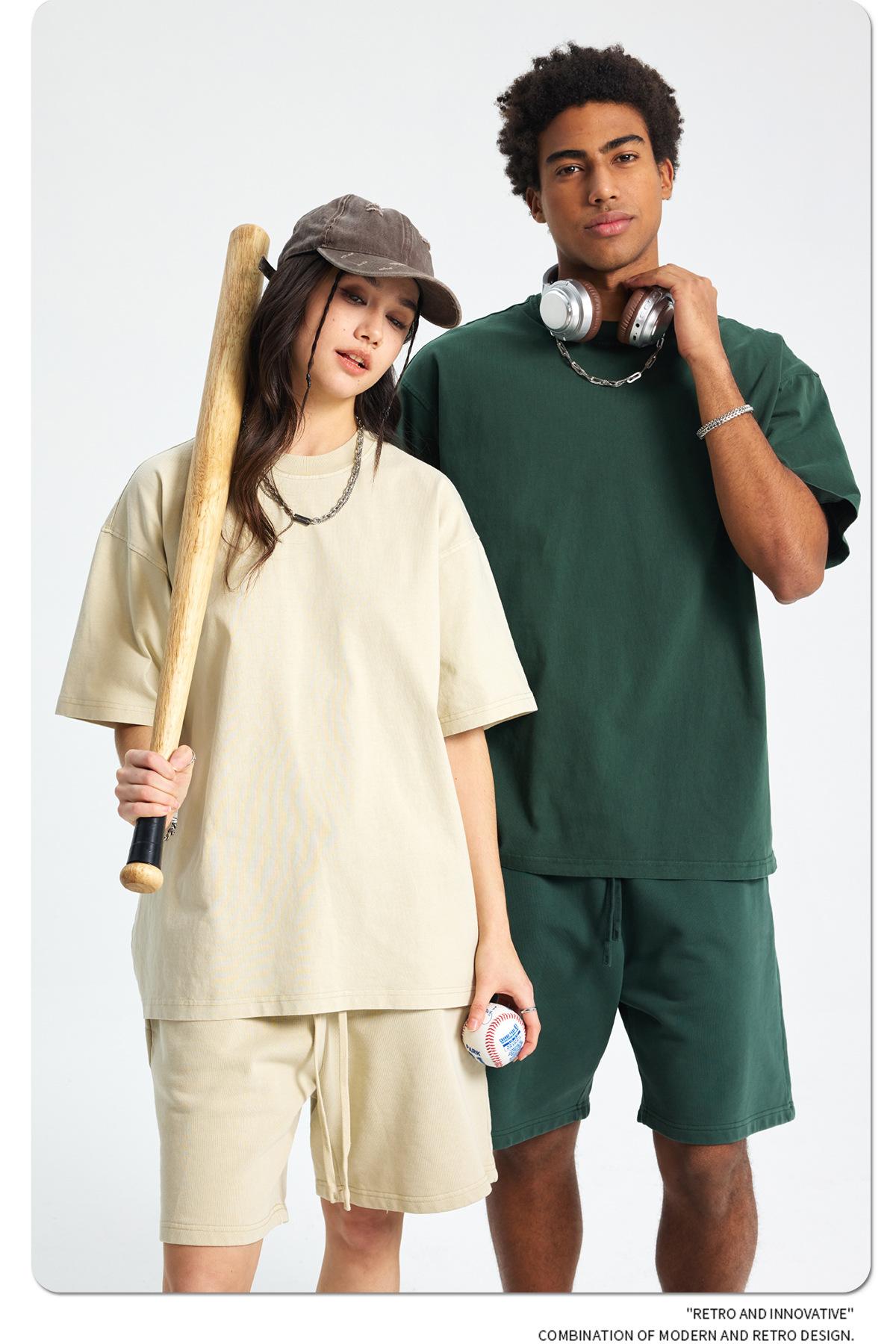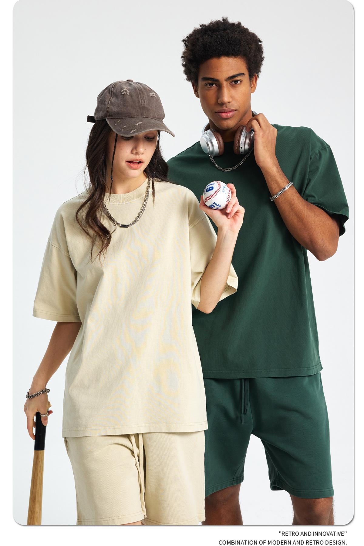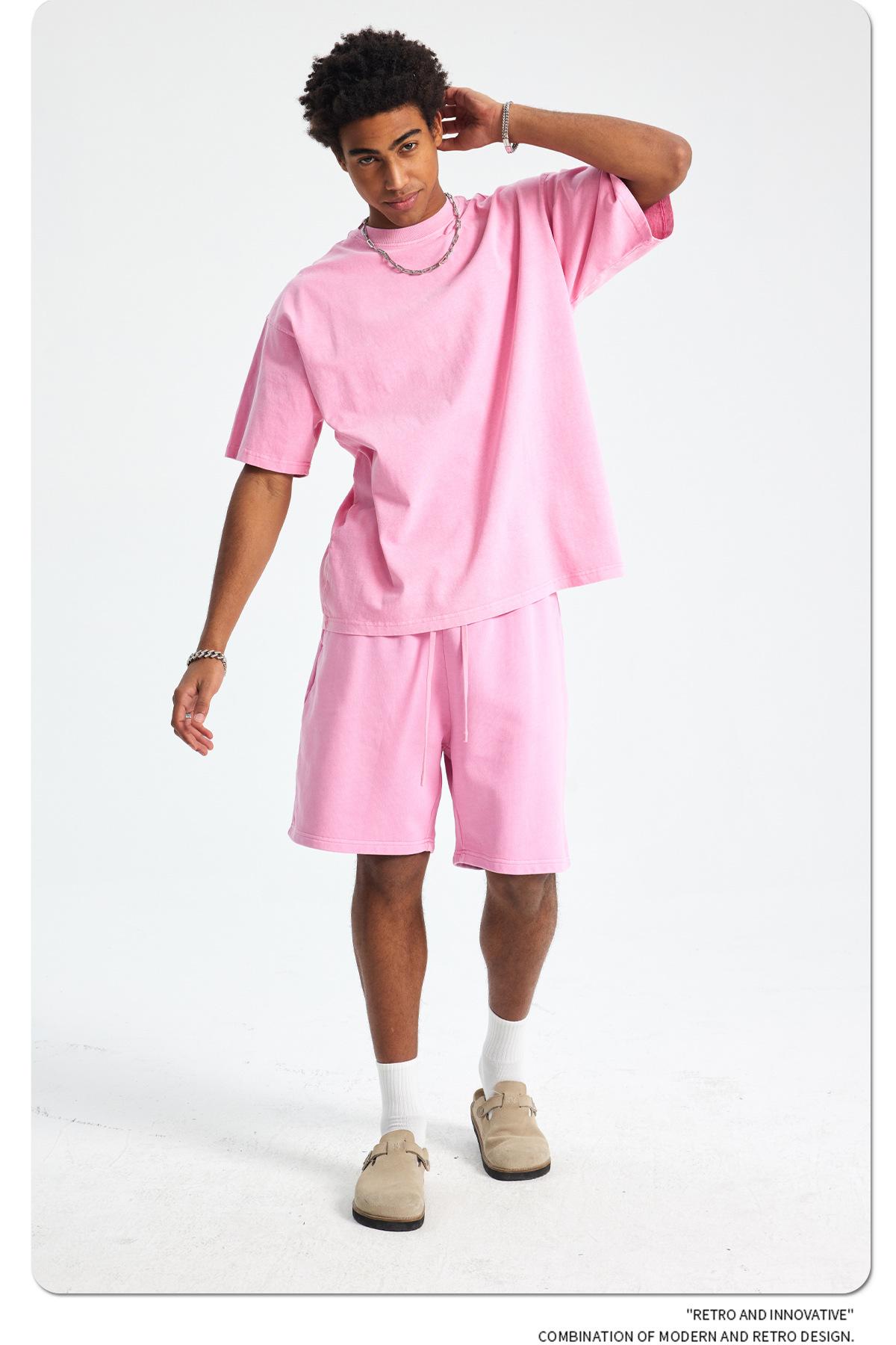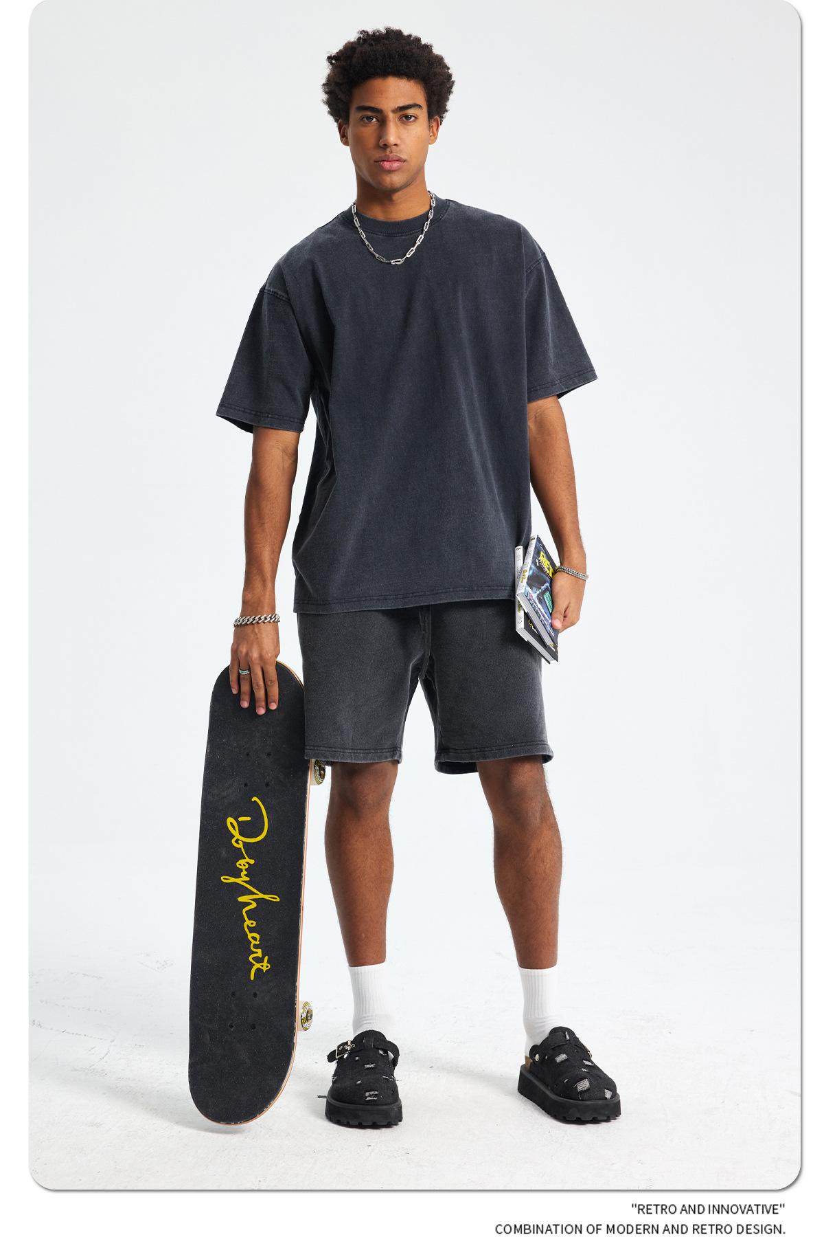Ropa de Hombre 2025 Verano Nuevo Producto Lavado al Agua Teñido Blanco Manga Corta Shorts Marca de Moda Traje de Hombre y Mujer