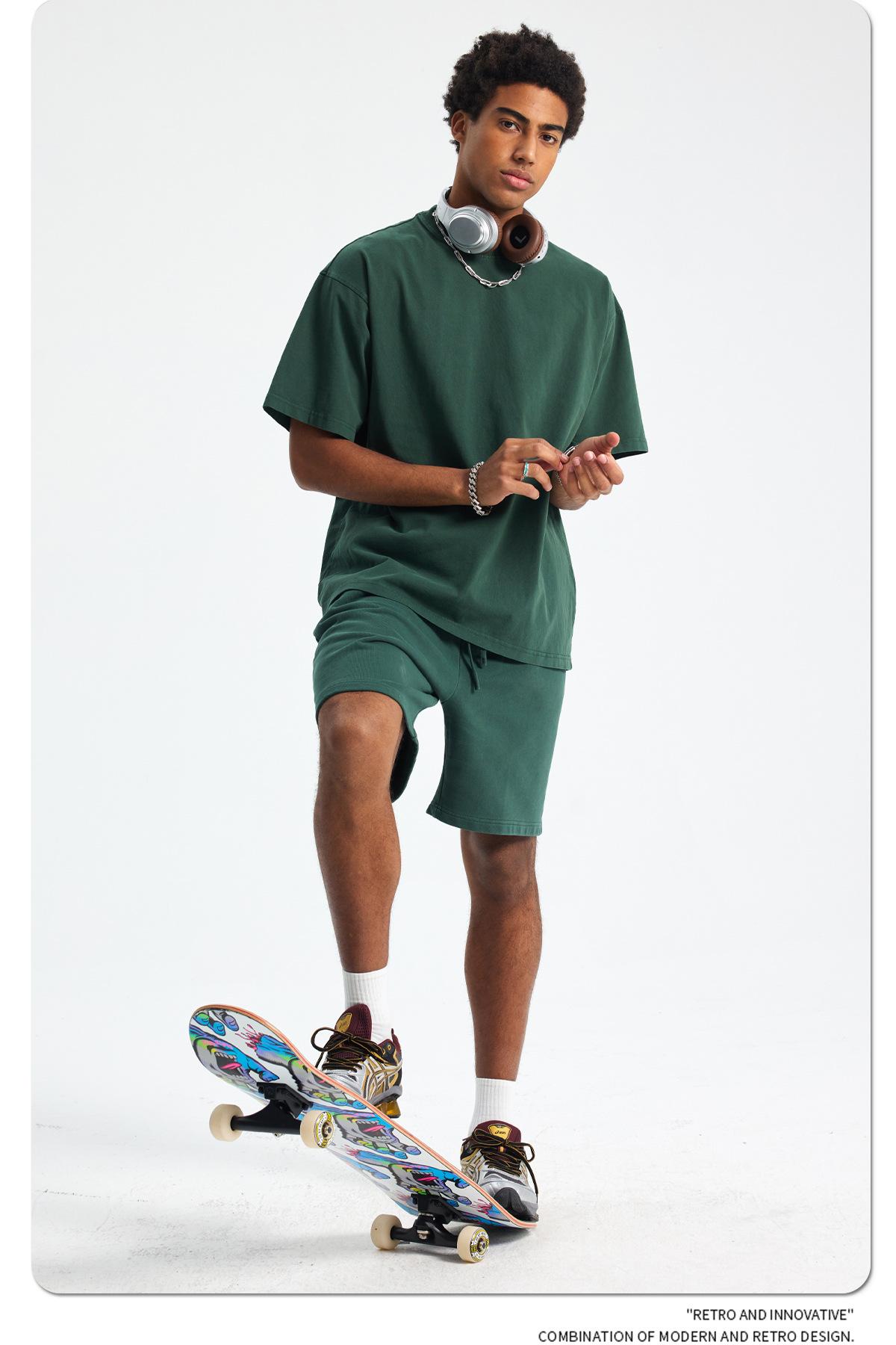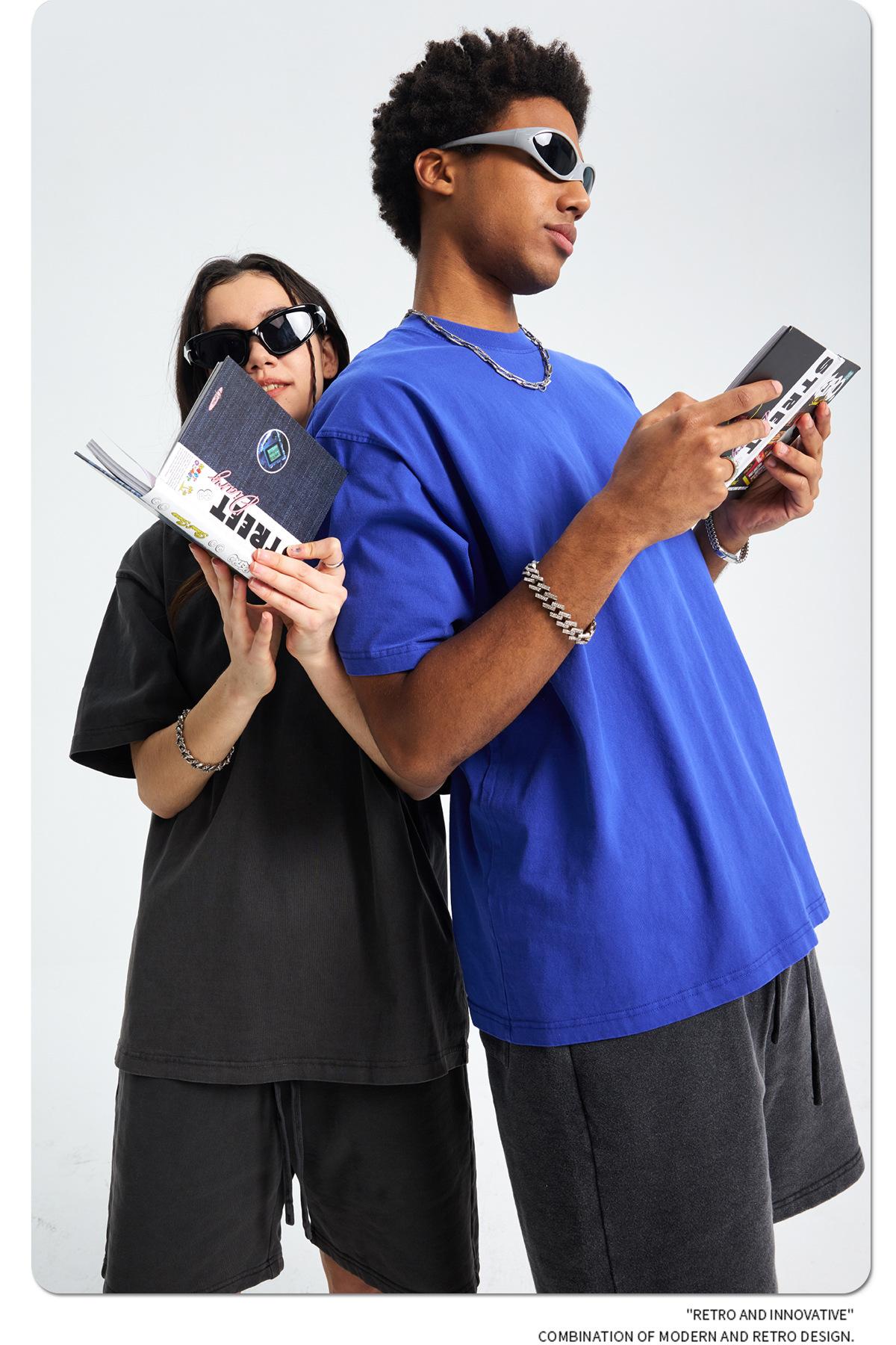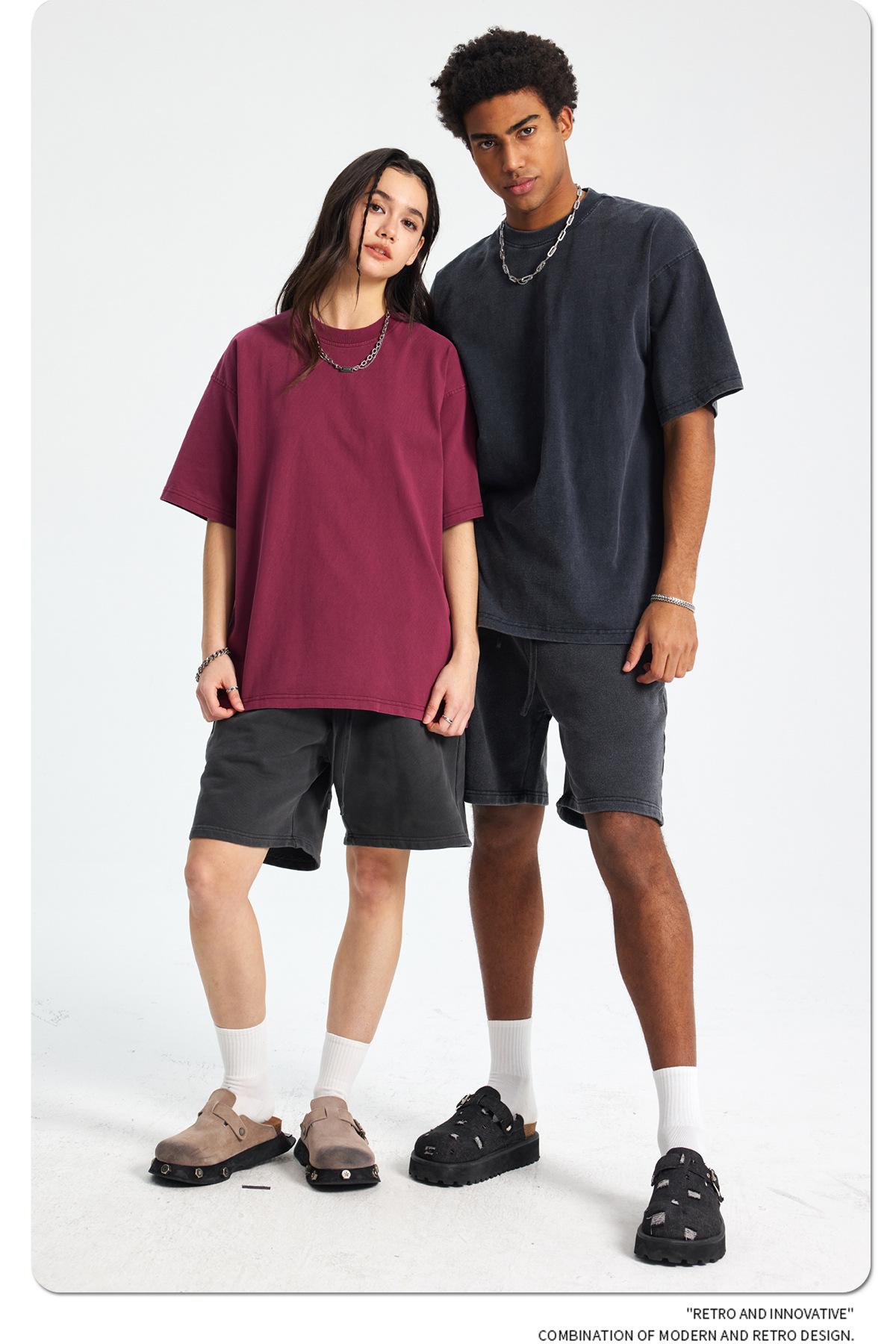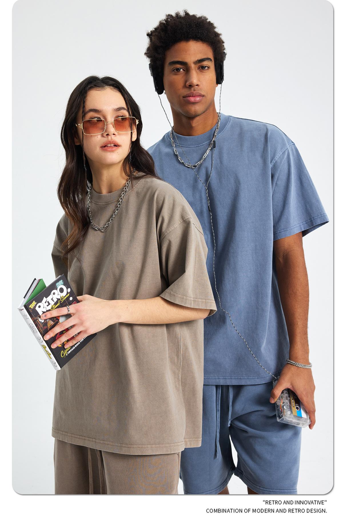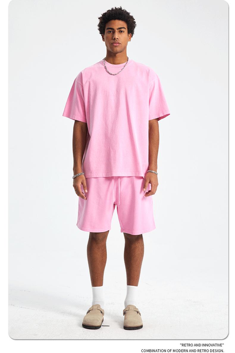 Ropa de Hombre 2025 Verano Nuevo Producto Lavado al Agua Teñido Blanco Manga Corta Shorts Marca de Moda Traje de Hombre y Mujer
