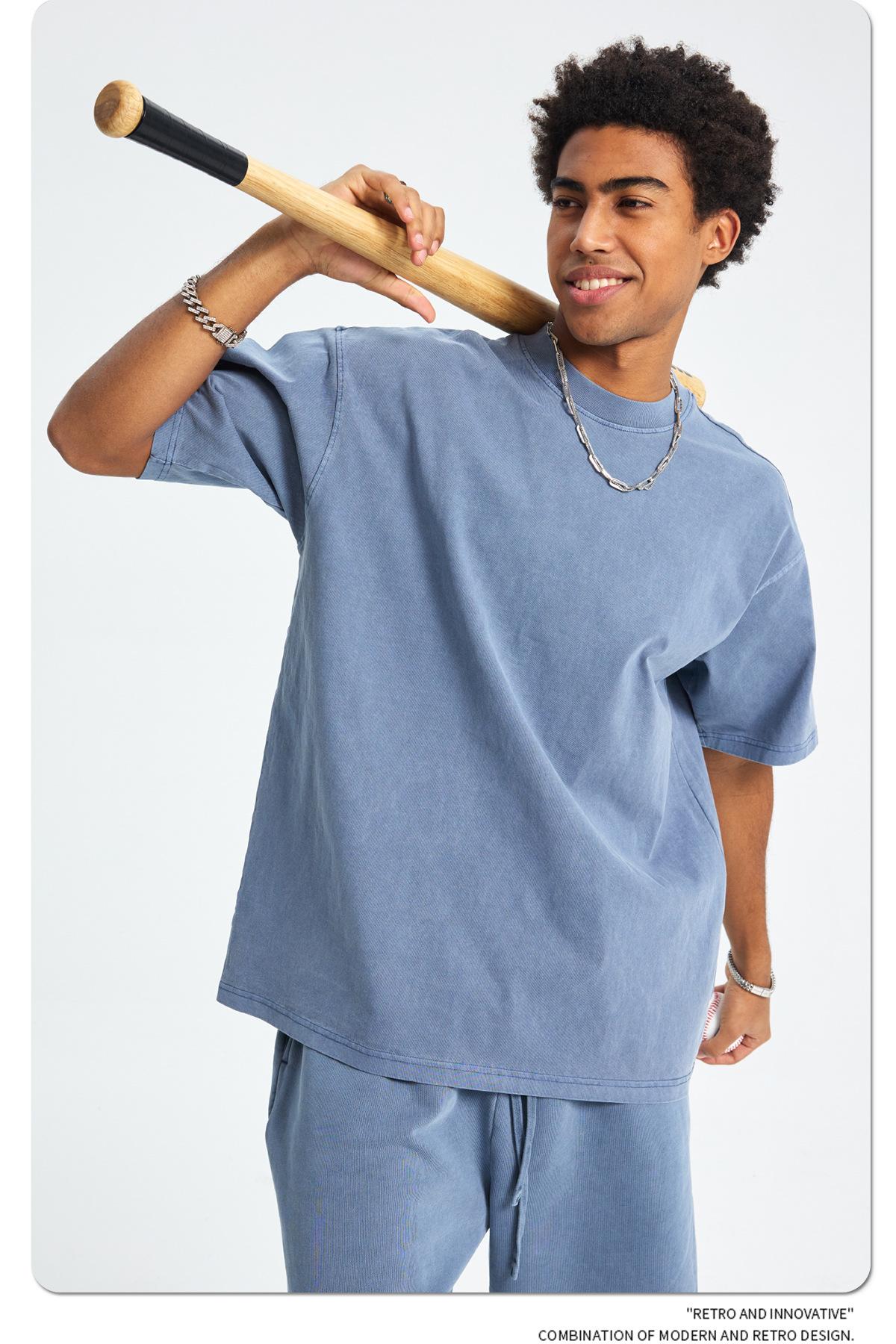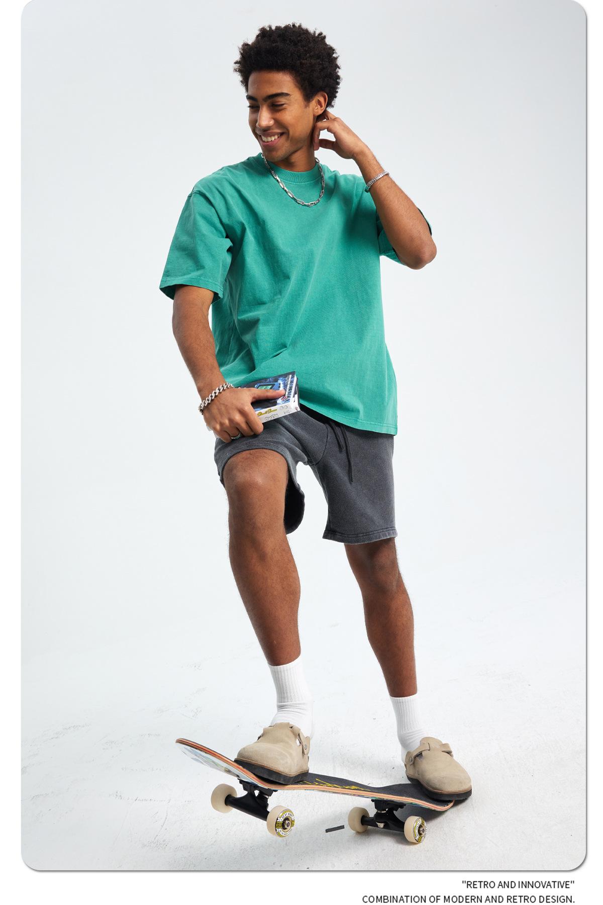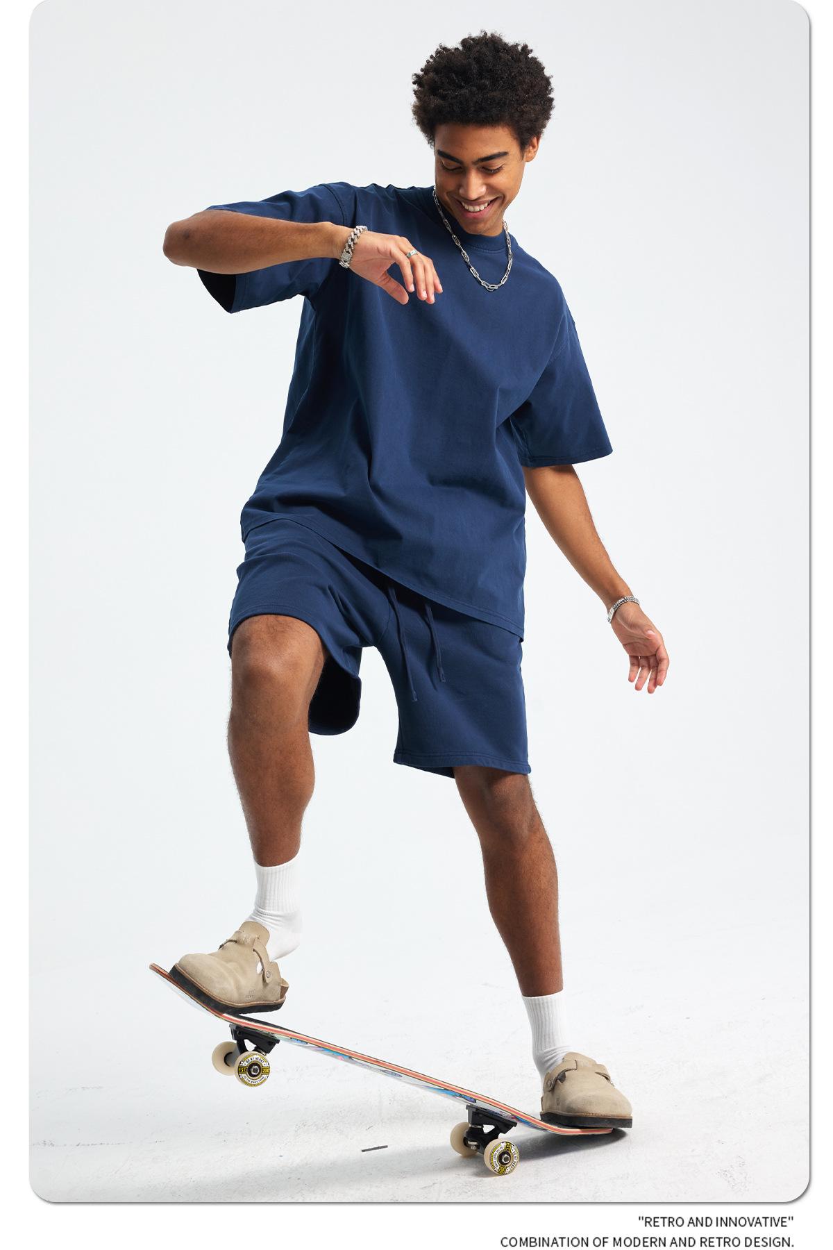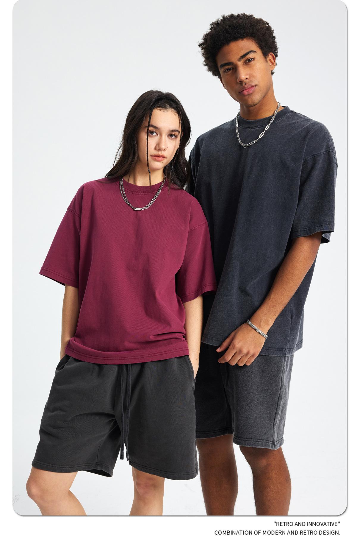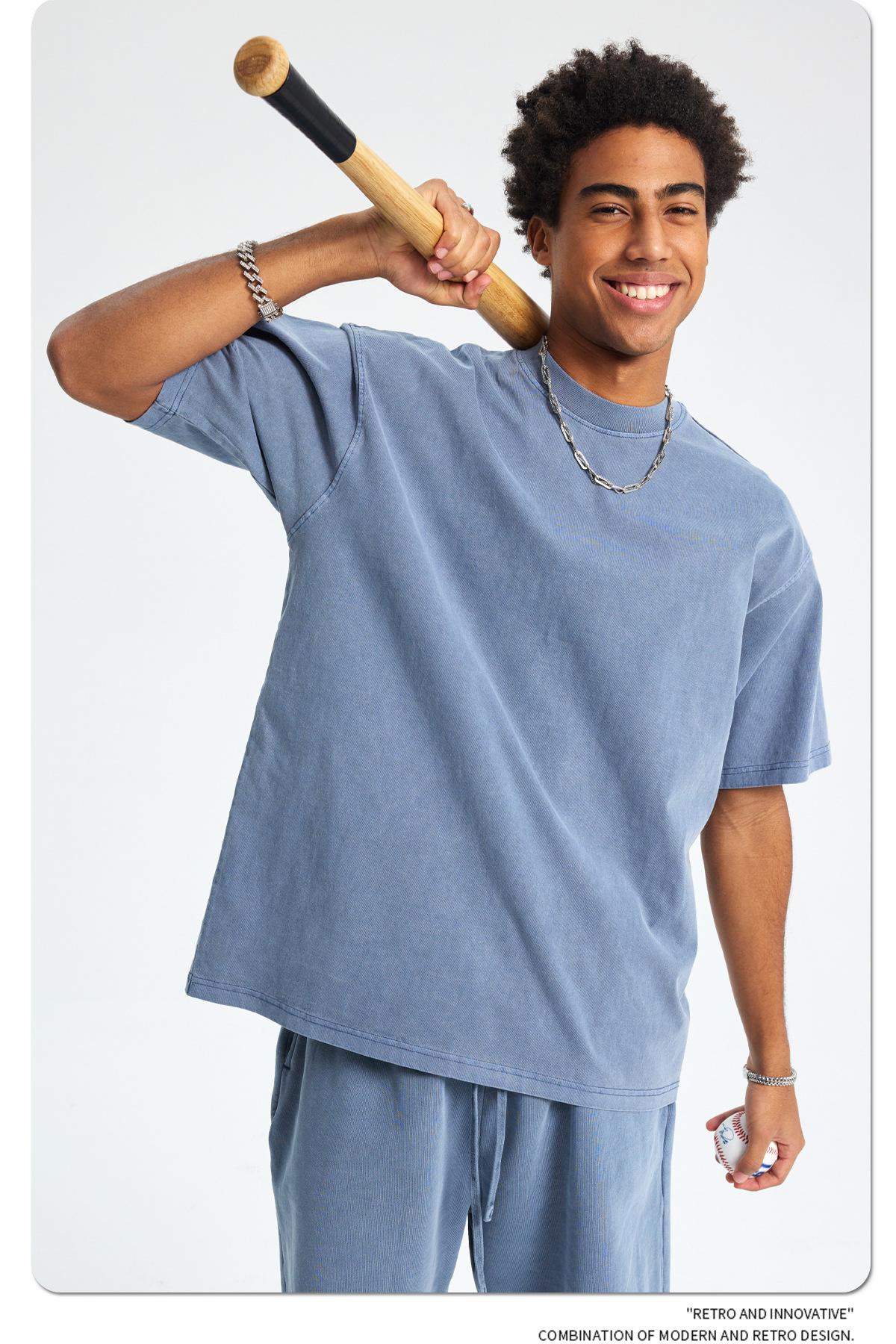 Ropa de Hombre 2025 Verano Nuevo Producto Lavado al Agua Teñido Blanco Manga Corta Shorts Marca de Moda Traje de Hombre y Mujer