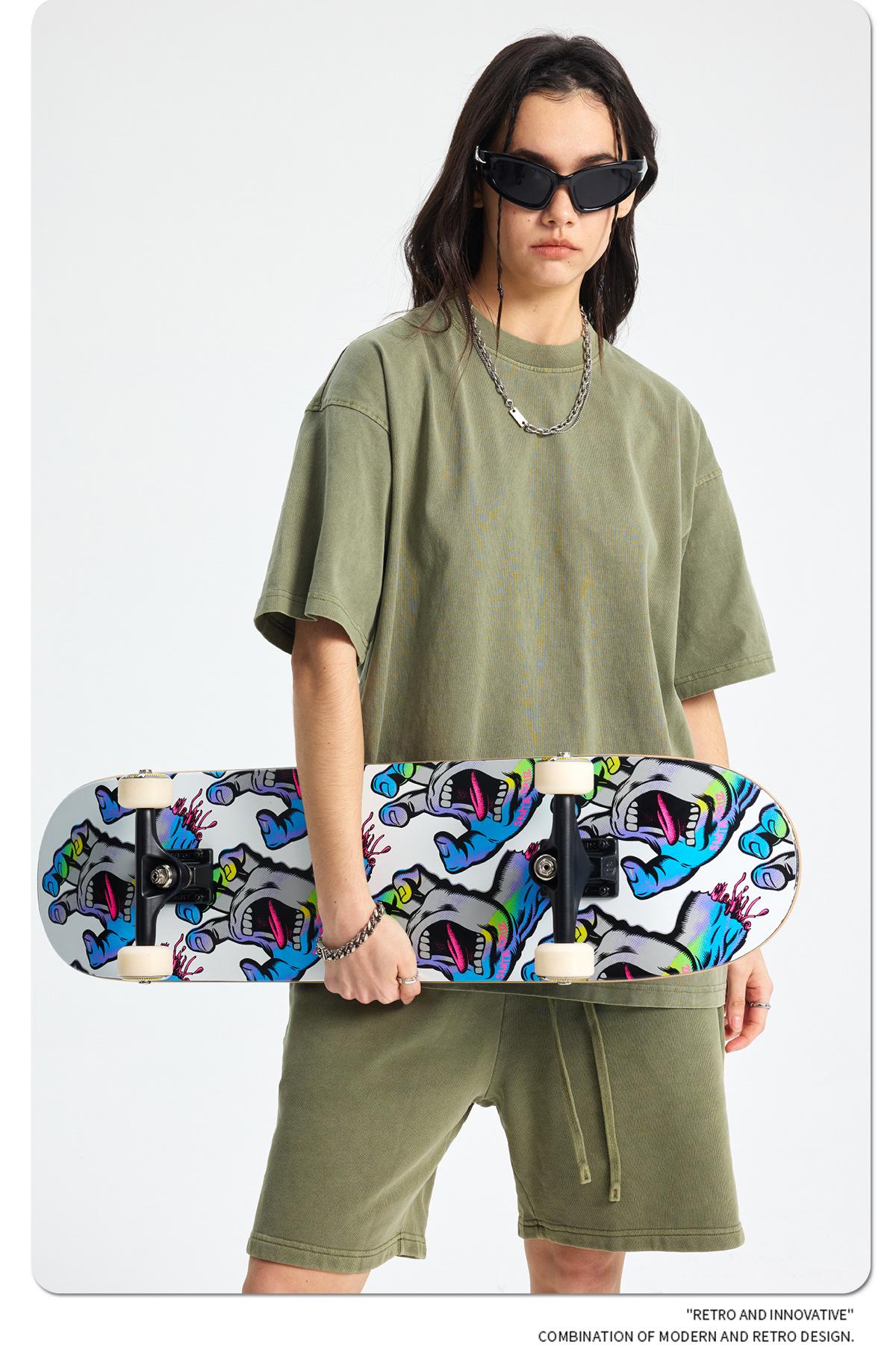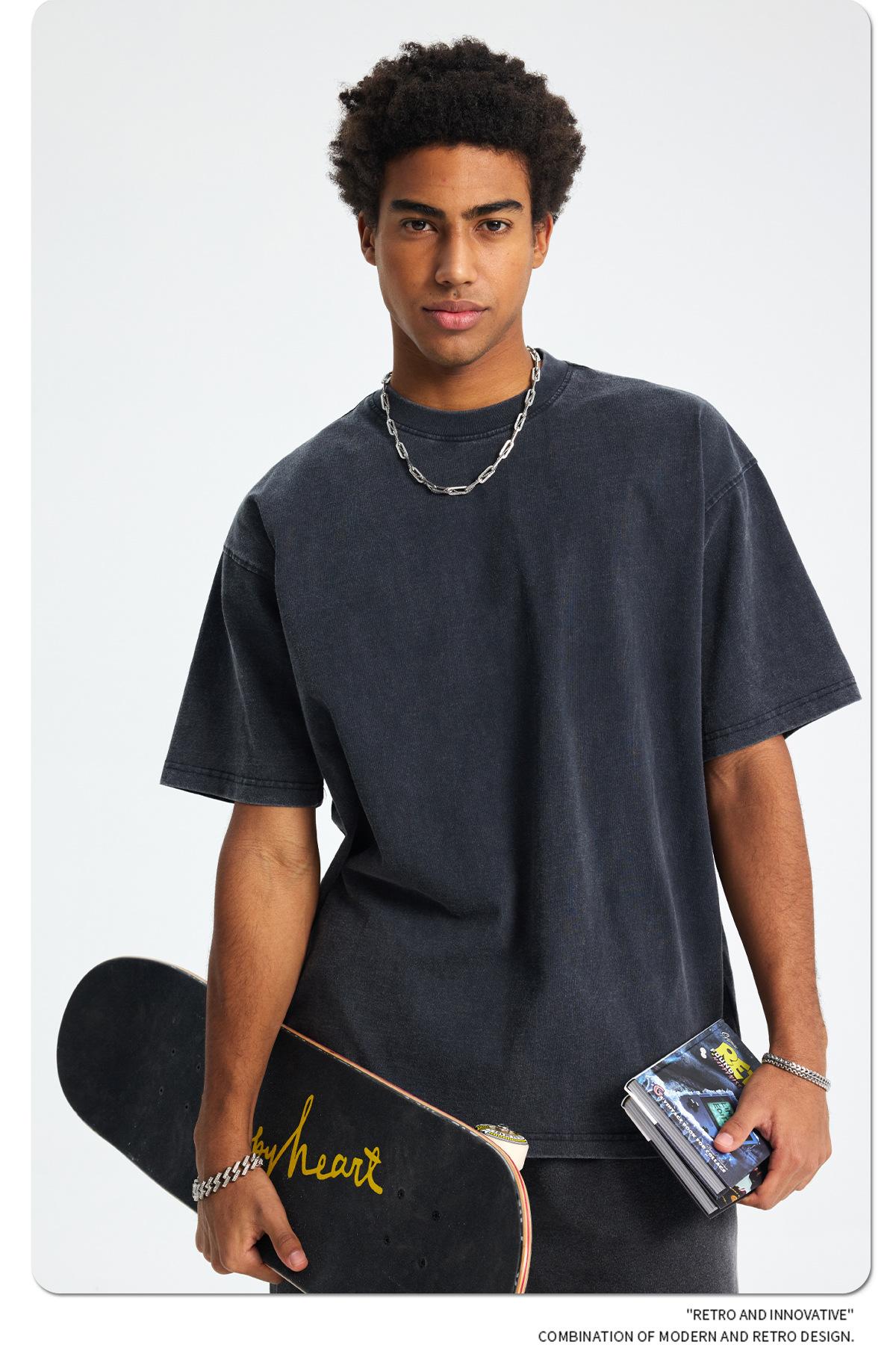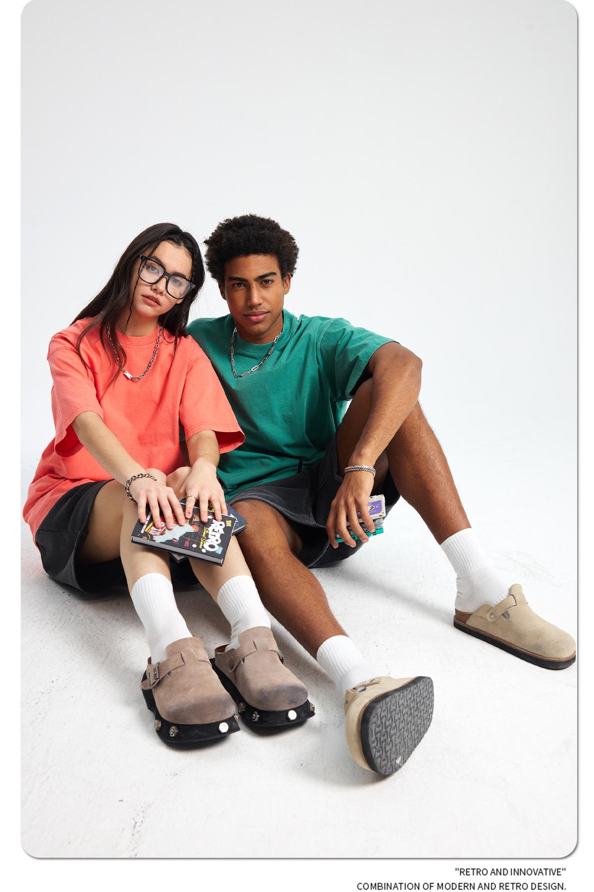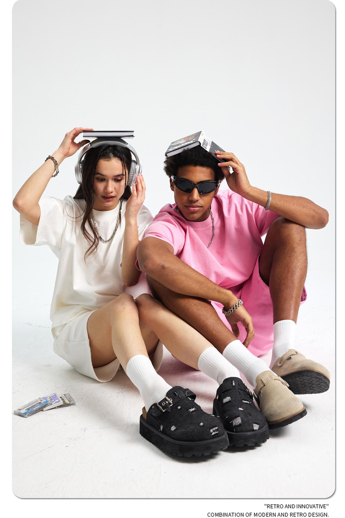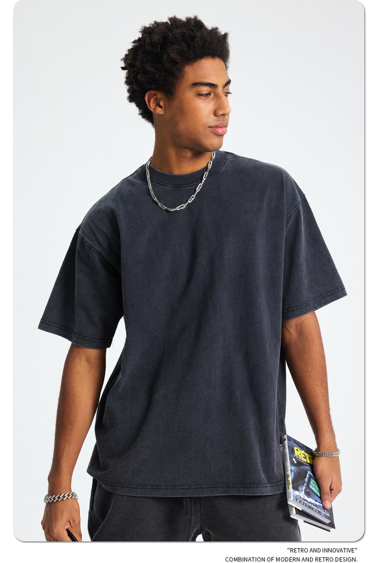 Ropa de Hombre 2025 Verano Nuevo Producto Lavado al Agua Teñido Blanco Manga Corta Shorts Marca de Moda Traje de Hombre y Mujer