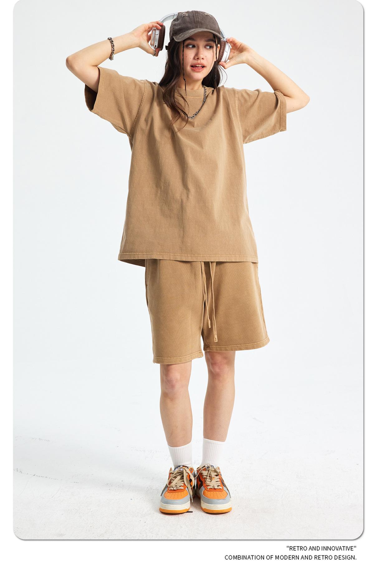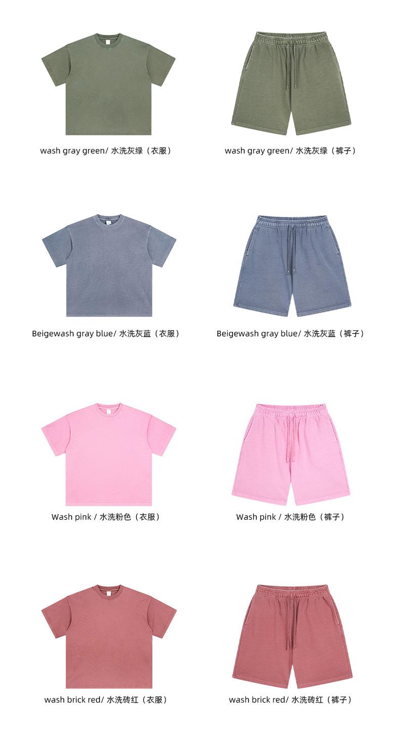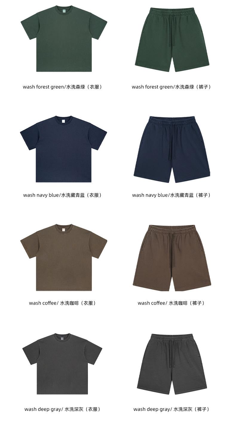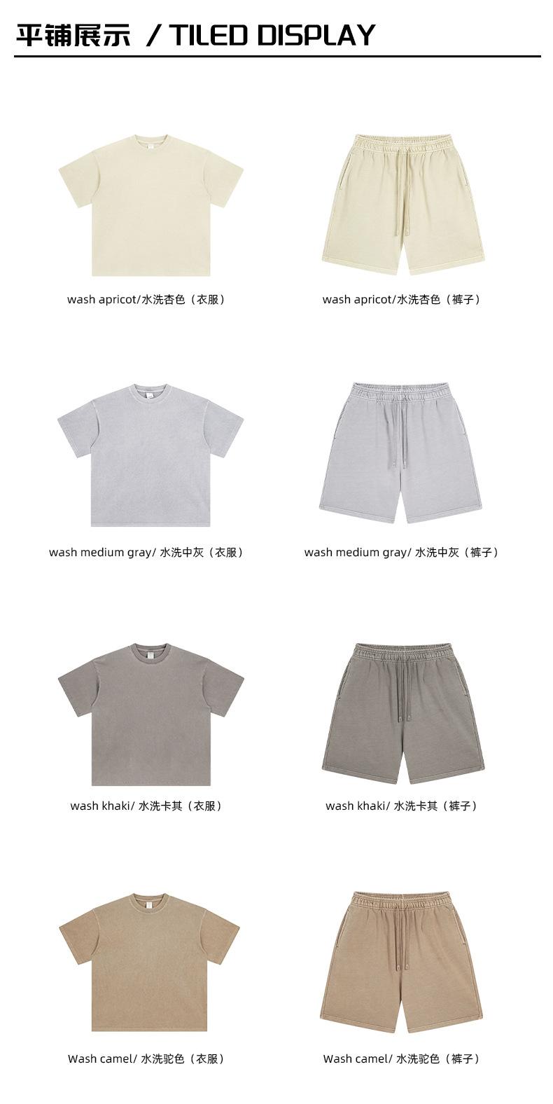 Washed dark gray-Top, Washed dark gray-Shorts, Washed Coffee-Top, Washed Coffee-Shorts, Washed camel-Top, Wash...