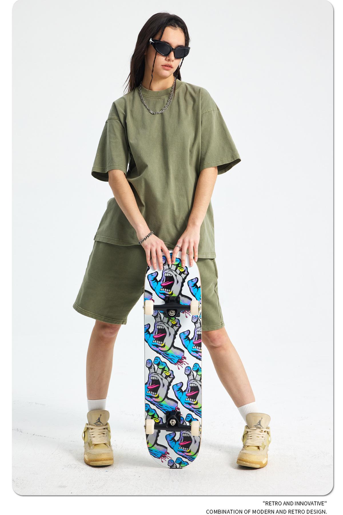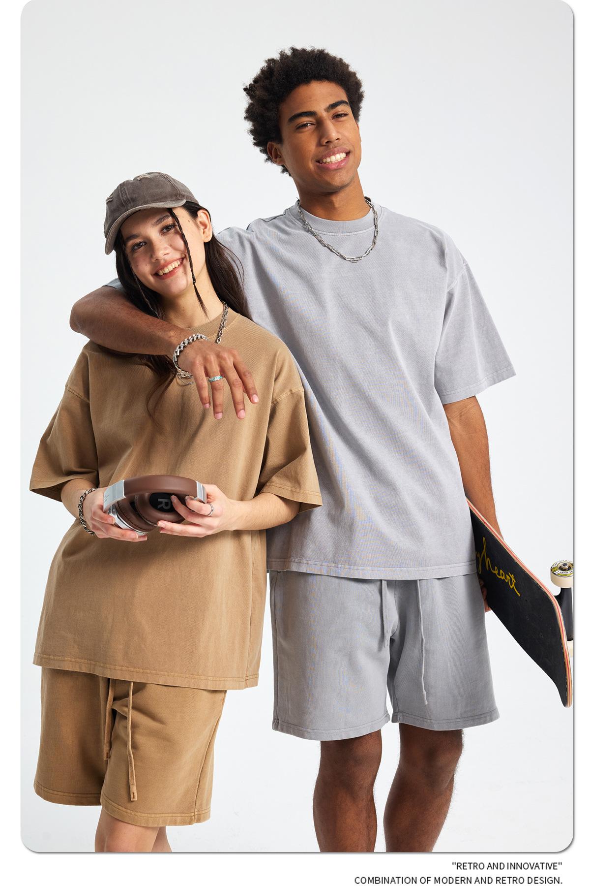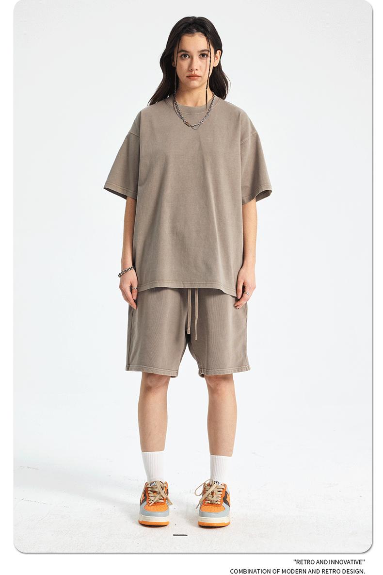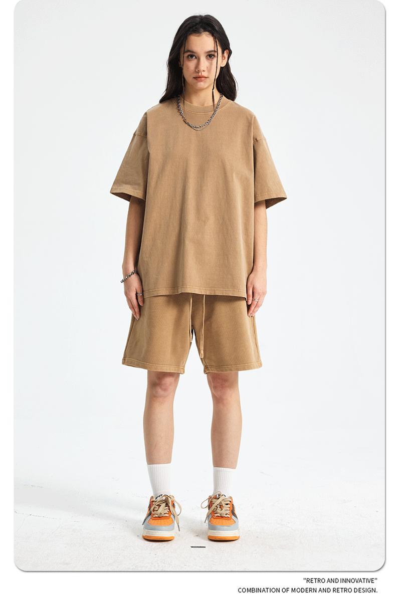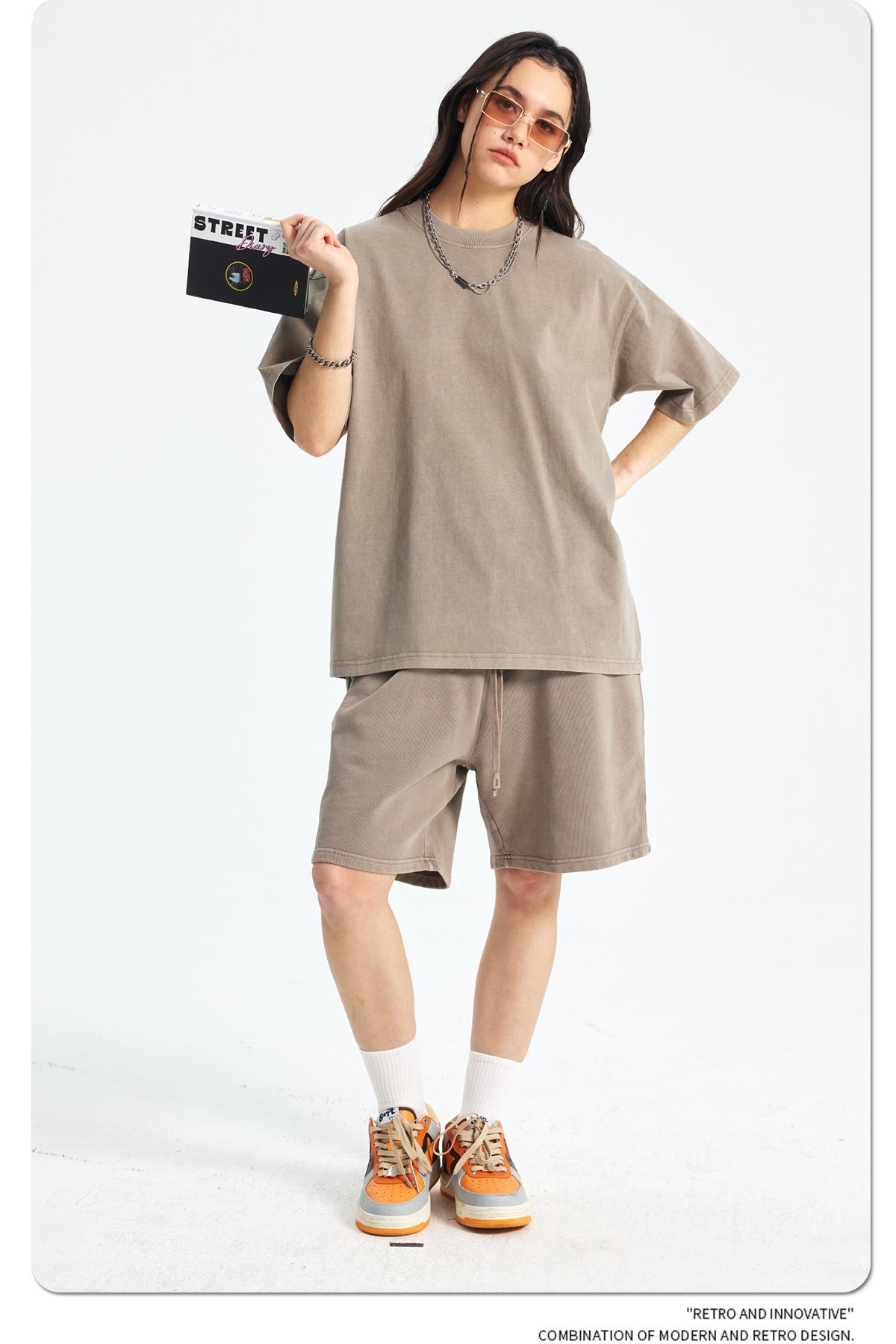 Washed dark gray-Top, Washed dark gray-Shorts, Washed Coffee-Top, Washed Coffee-Shorts, Washed camel-Top, Wash...