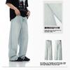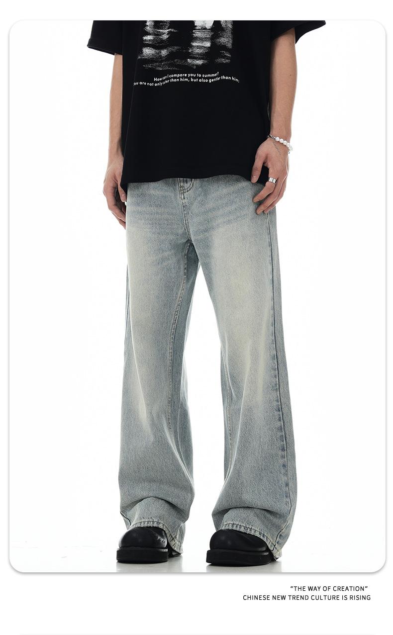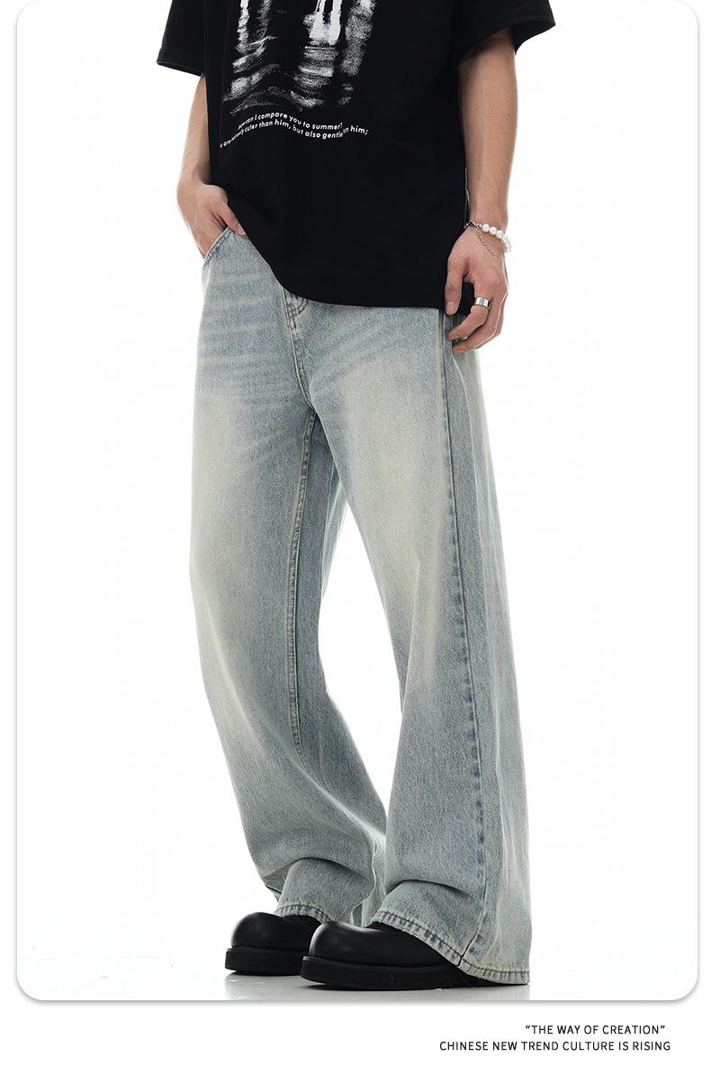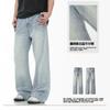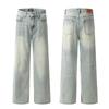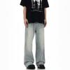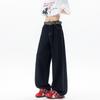 11KN estilo americano clásico detergente para ropa hacer viejo recto pantalones vaqueros de mujer europeo americano calle suelto de alta gama sensación largo pantalón ins