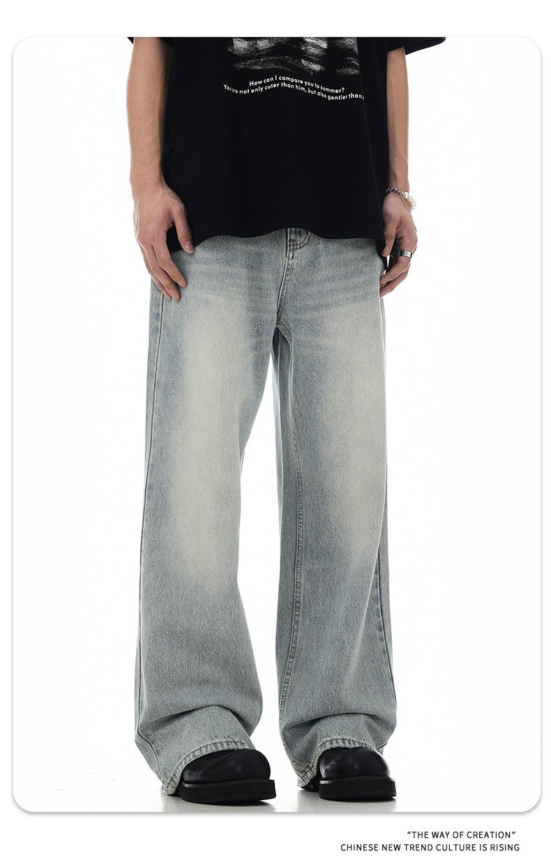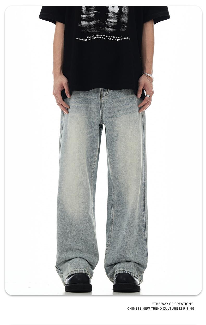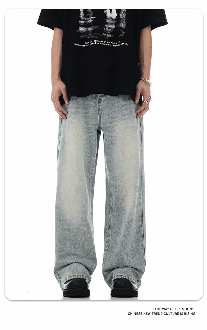 11 KN Lavado retro americano jeans rectos viejos para mujer pantalones largos sueltos de calle europeos y americanos ins