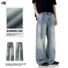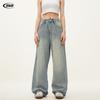 Jeans rectos lavados y desgastados de estilo retro americano de 11KN para mujer en Europa y América, pantalones largos holgados y de alta gama para la calle, ins