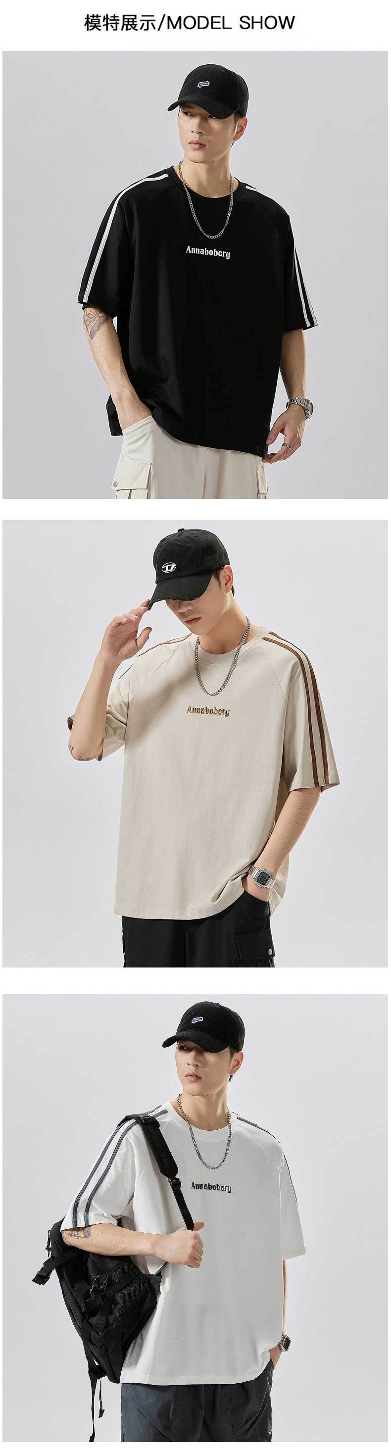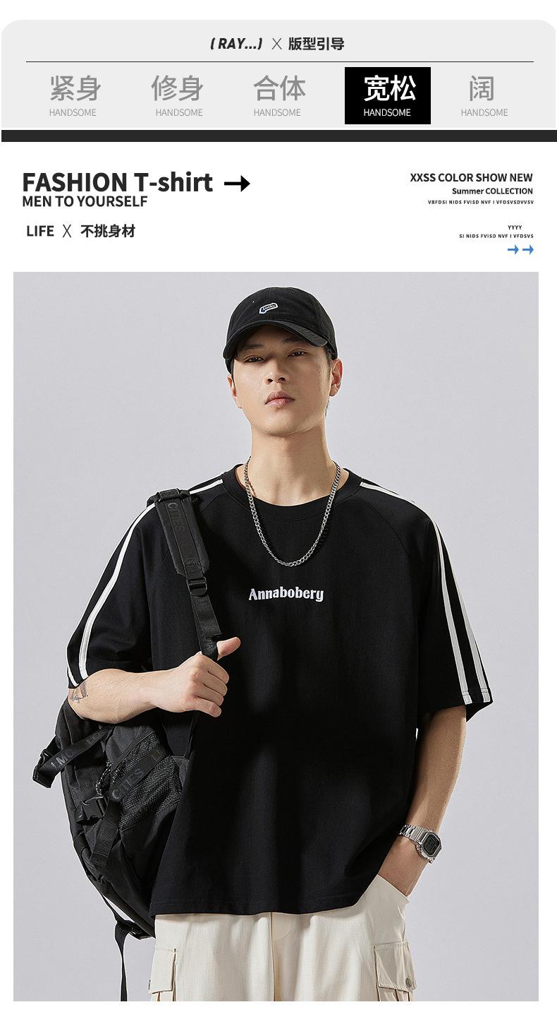 Danborne | 2025 Verano Nuevo Americano Moderno Marca Letra Bordada Camiseta Suelta Moderna Empalme Casual Manga Corta Hombre