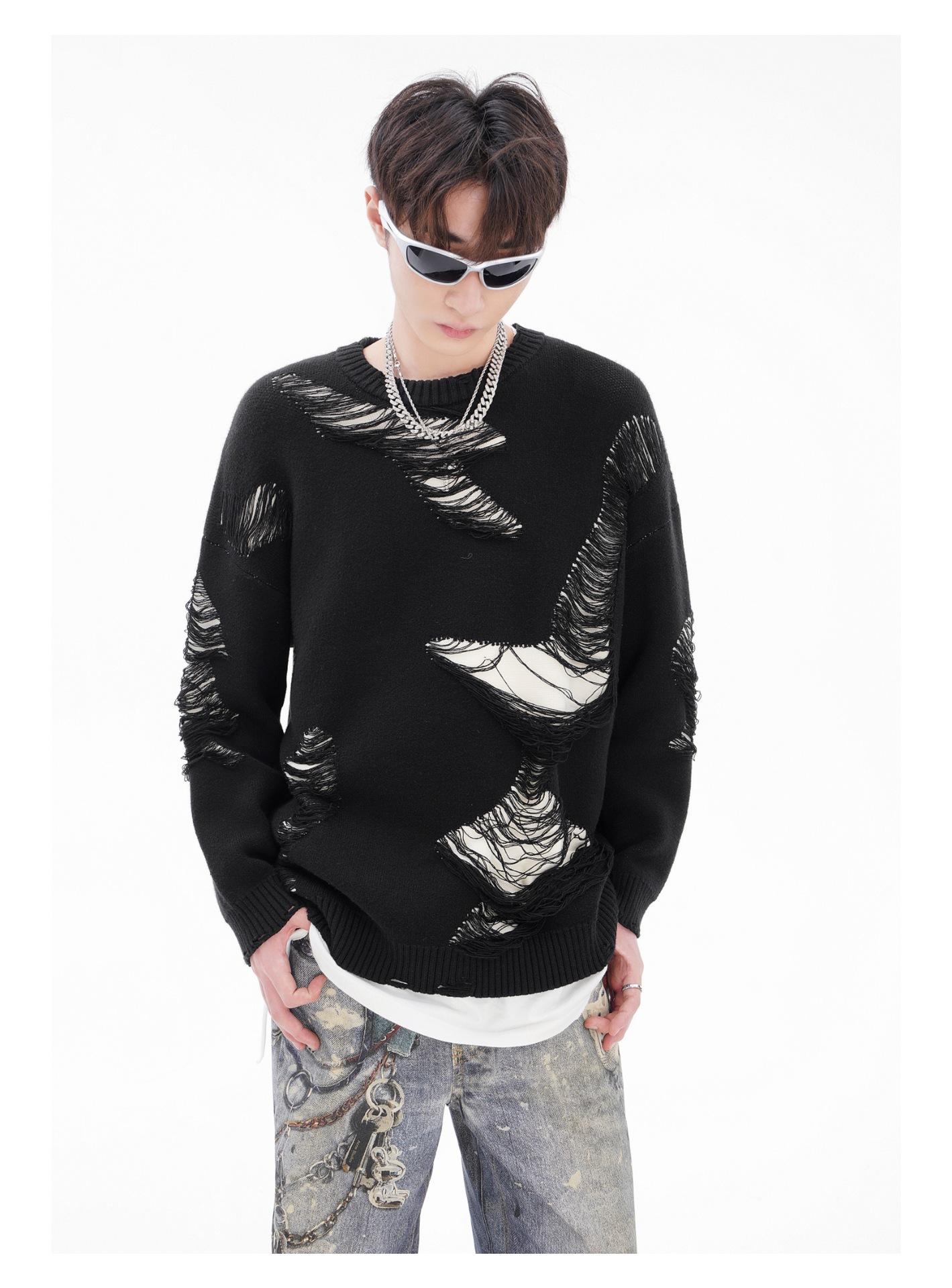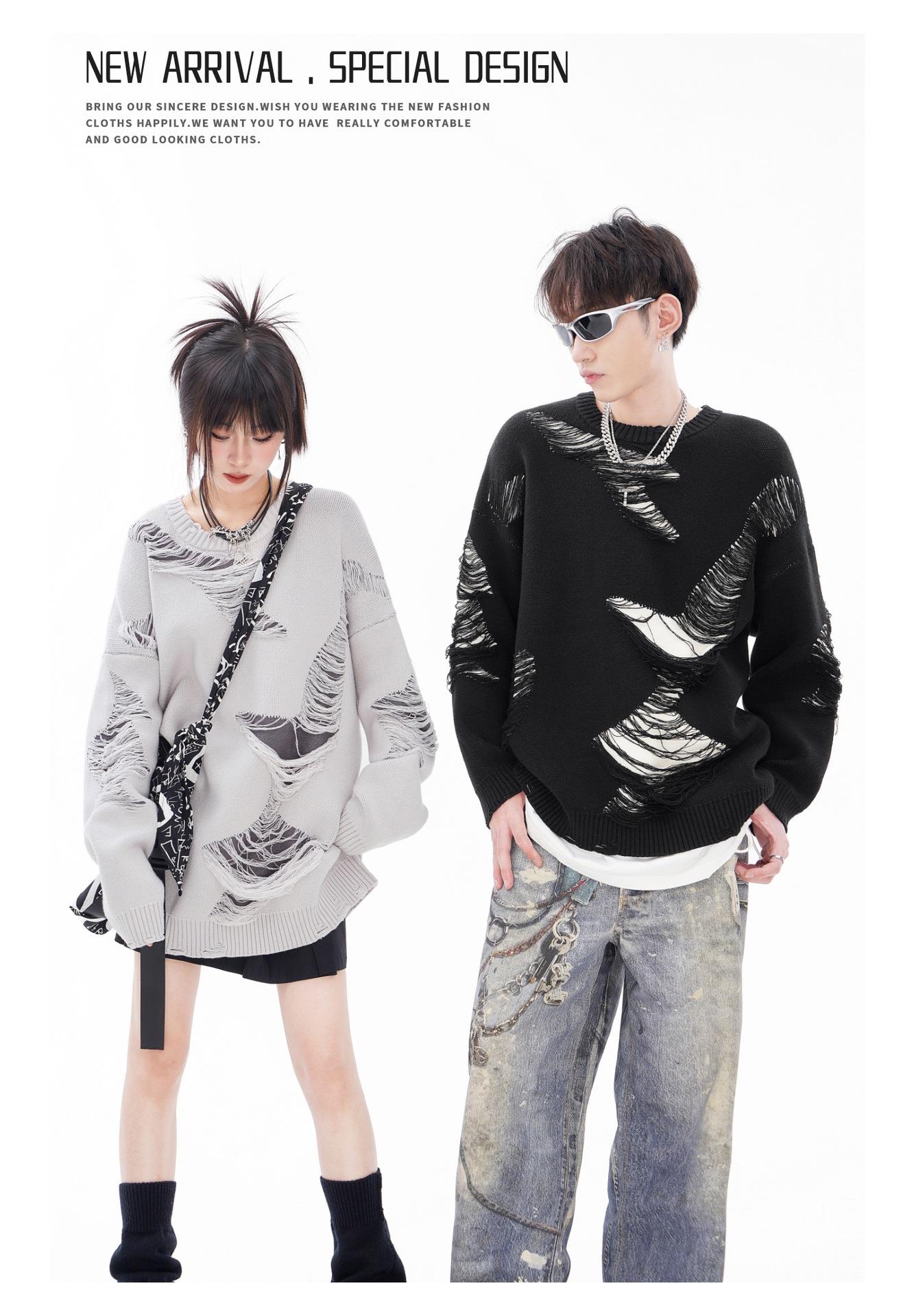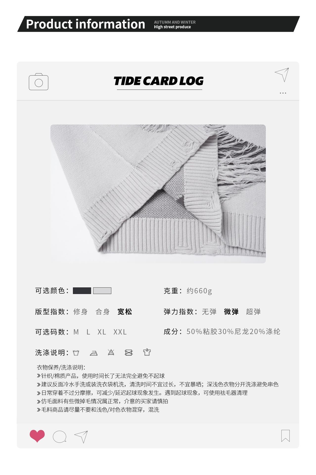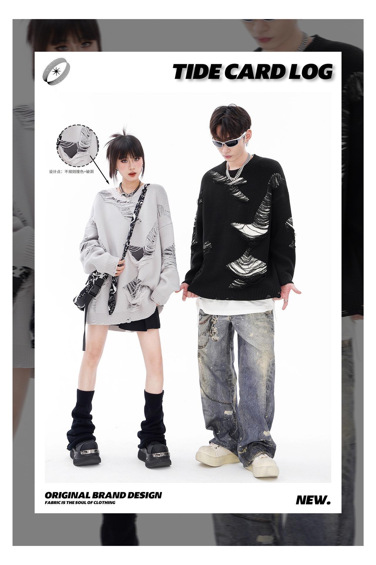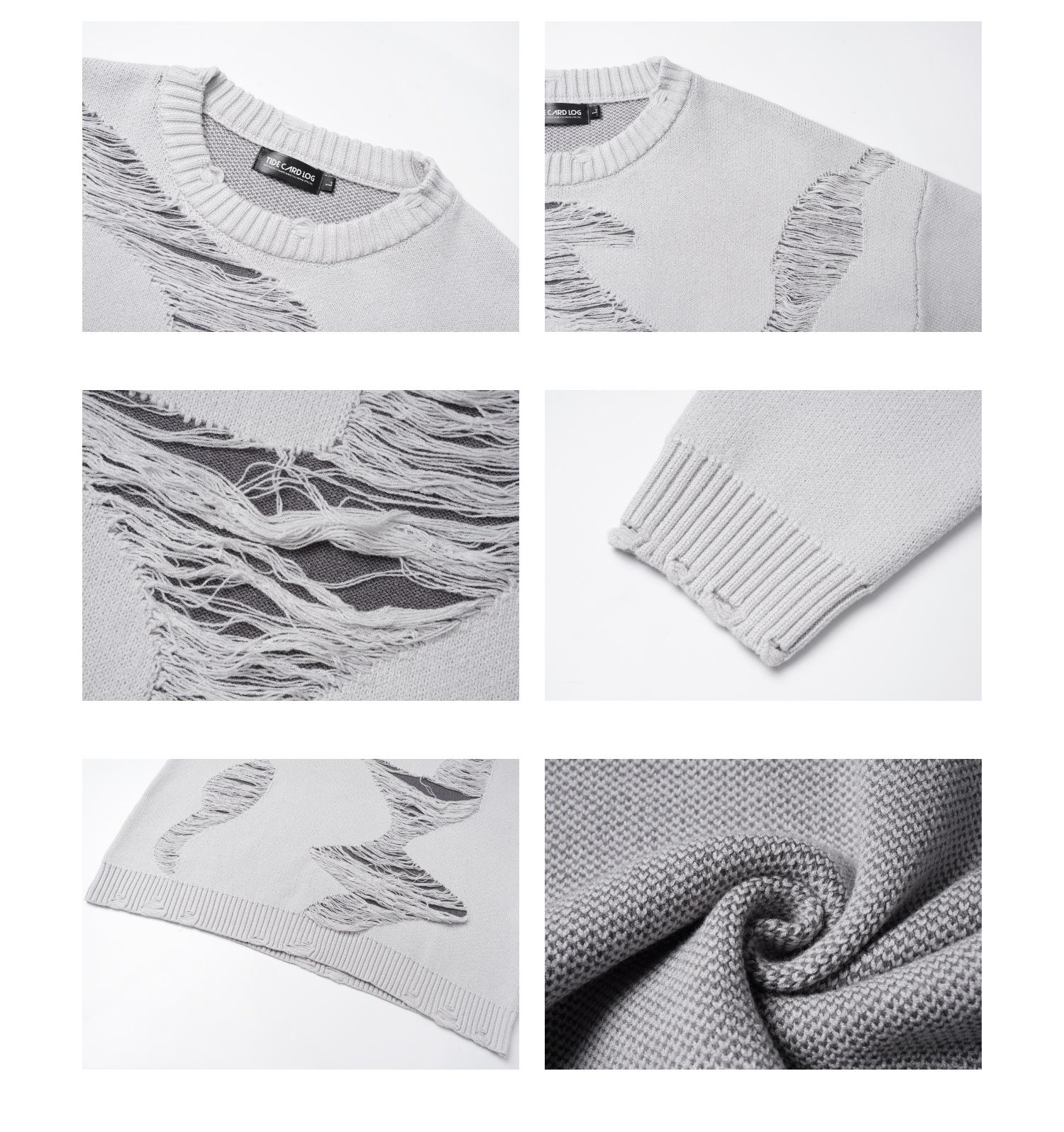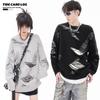 REGISTRO DE TARJETA TIDE | Otoño/Invierno Nuevo Nicho High Street Irregular Contraste Color Agujero Camiseta de Punto Suéter Cuello Redondo Marea