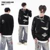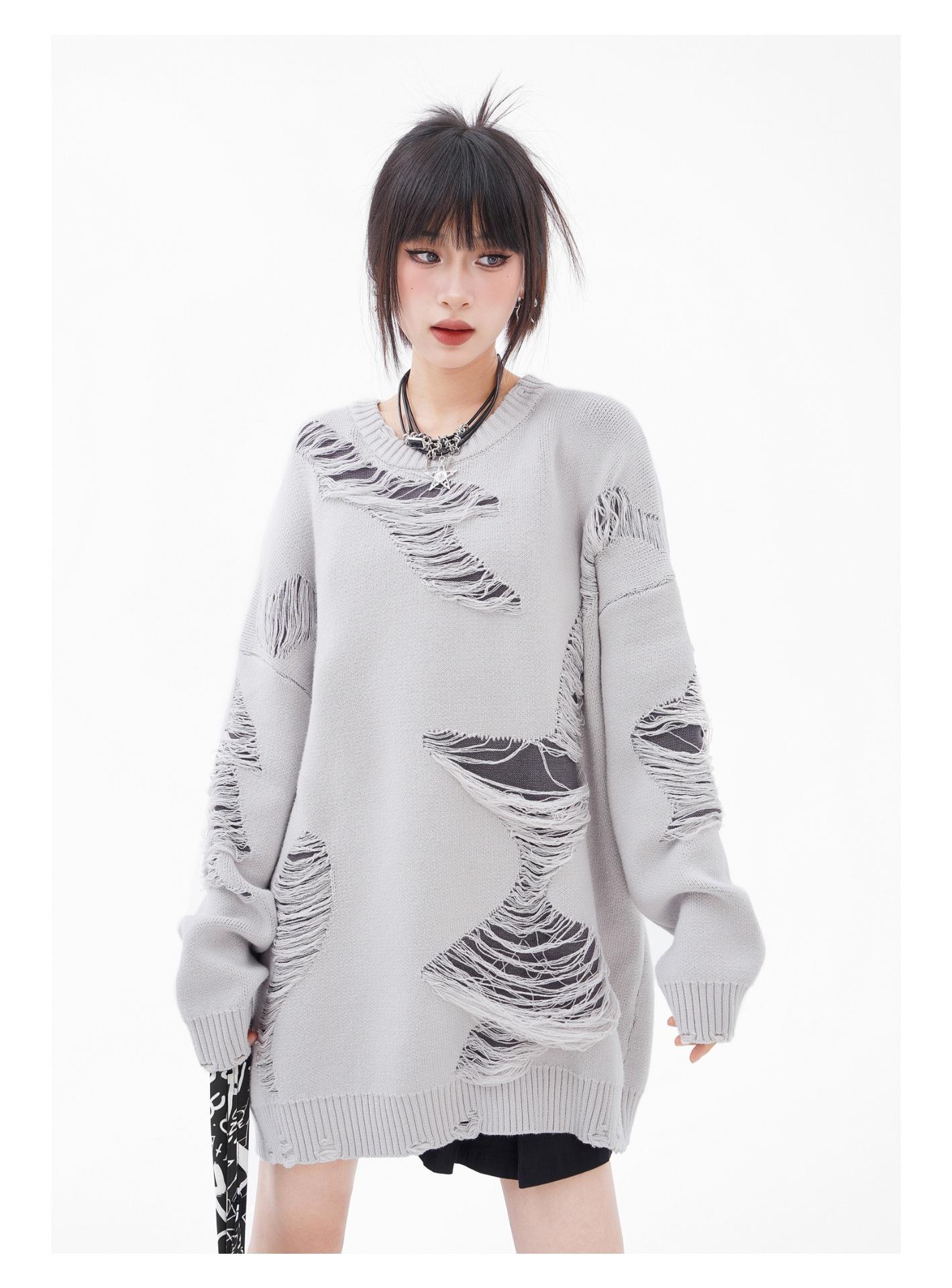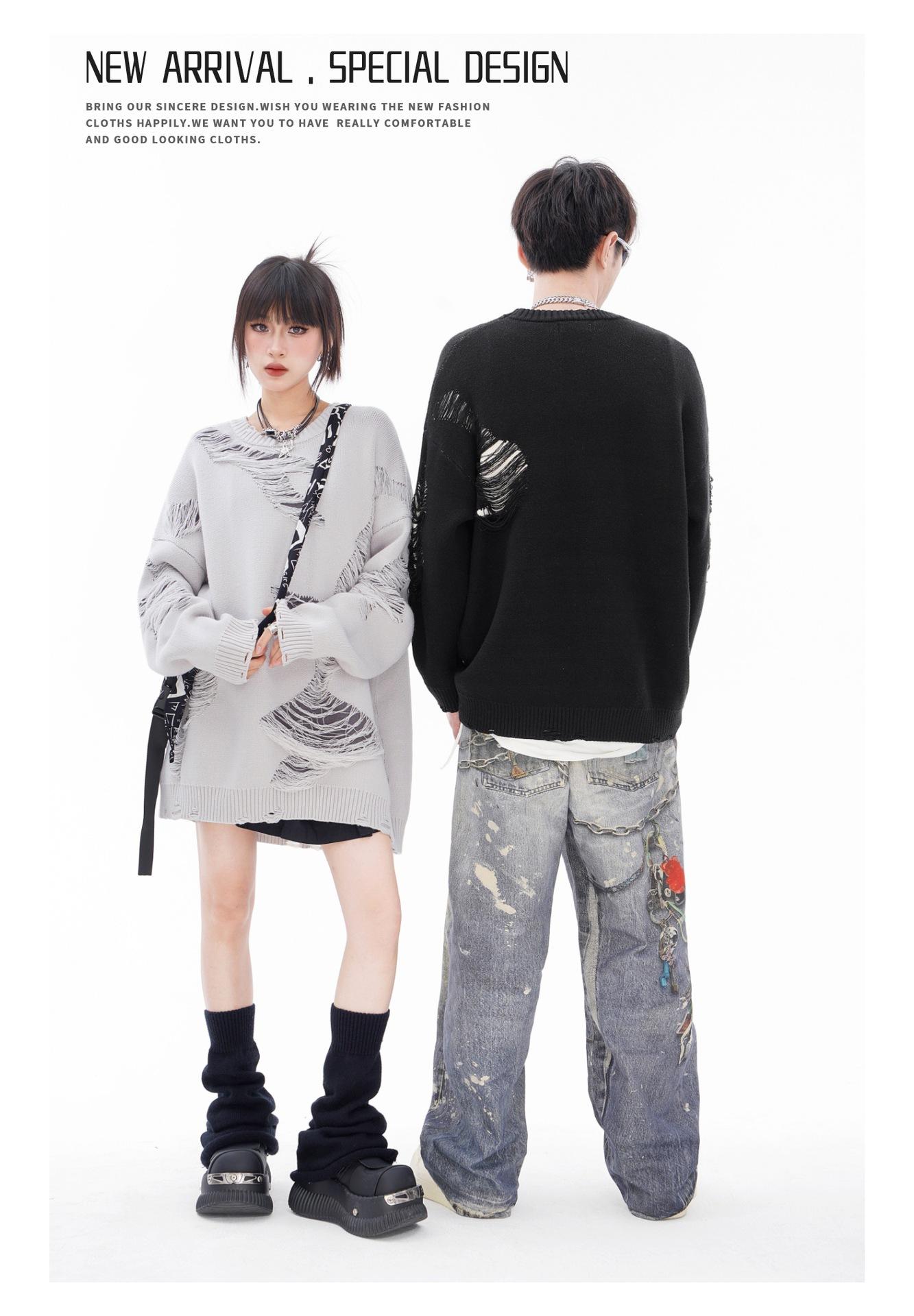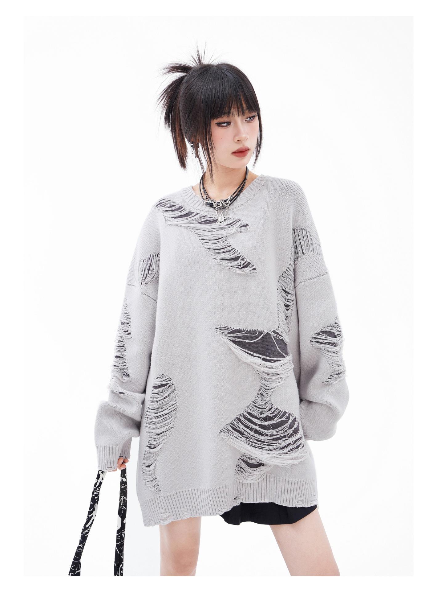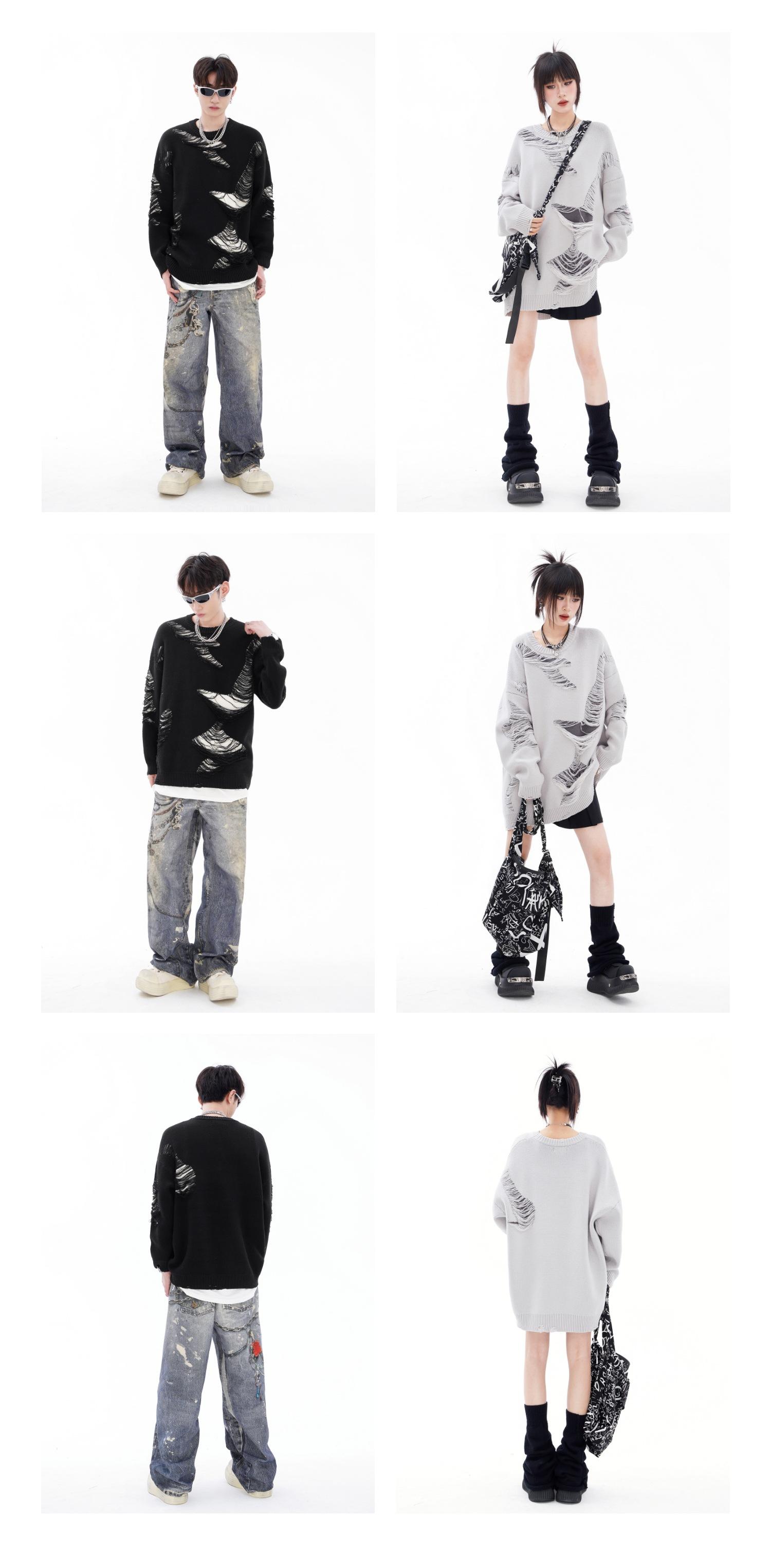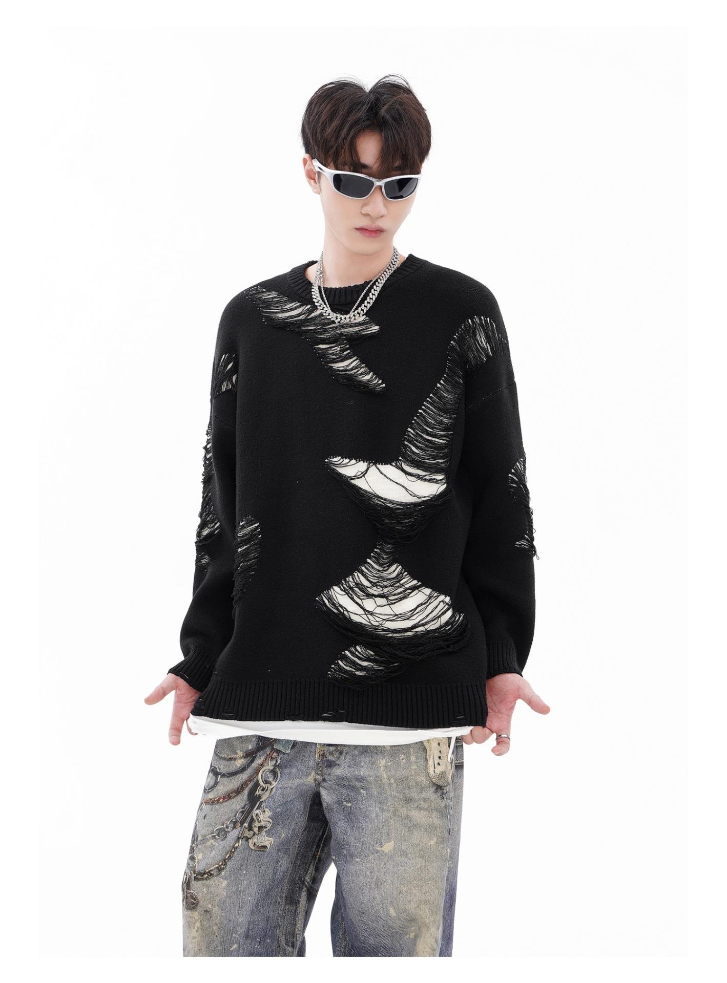REGISTRO DE TARJETA TIDE | Otoño/Invierno Nuevo Nicho High Street Irregular Contraste Color Agujero Camiseta de Punto Suéter Cuello Redondo Marea