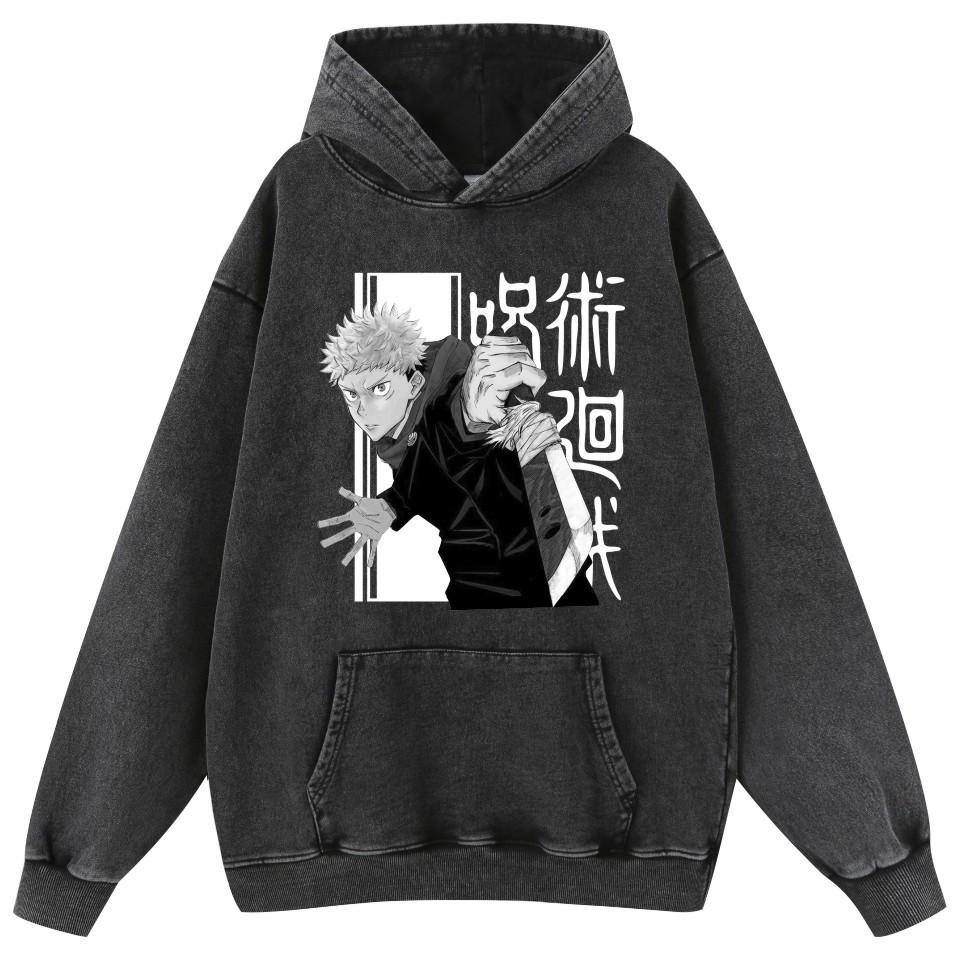 Suéter con capucha vintage lavado de algodón antiguo Jujutsu Kaisen Spell War Cross-border para hombre y mujer