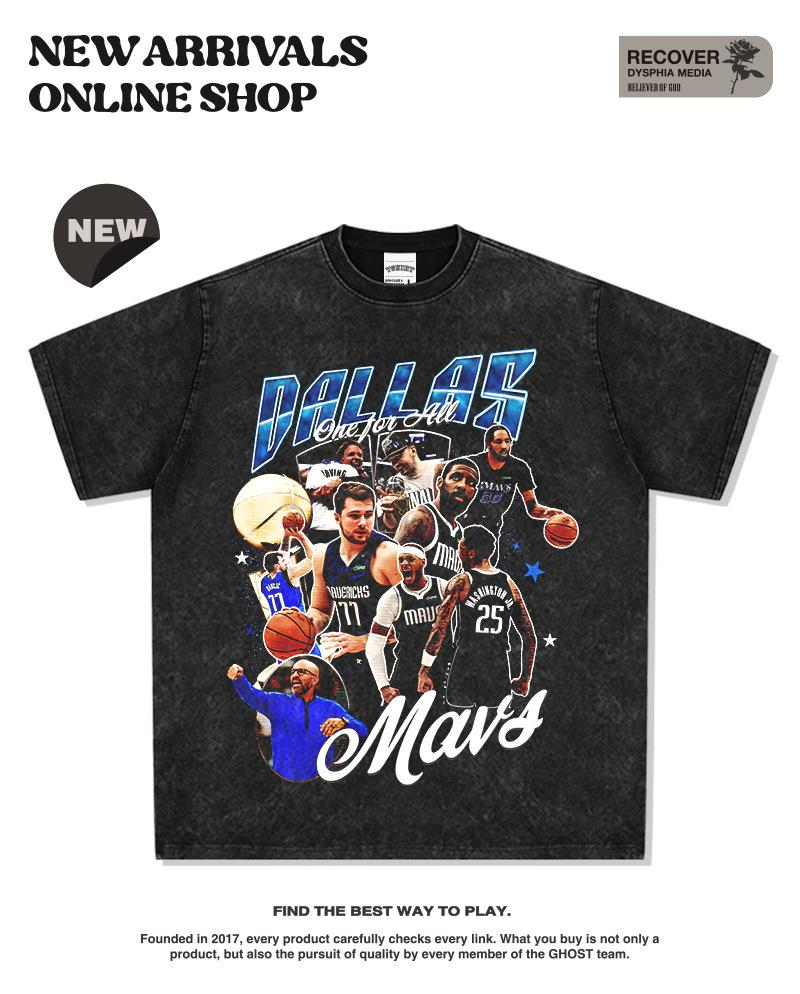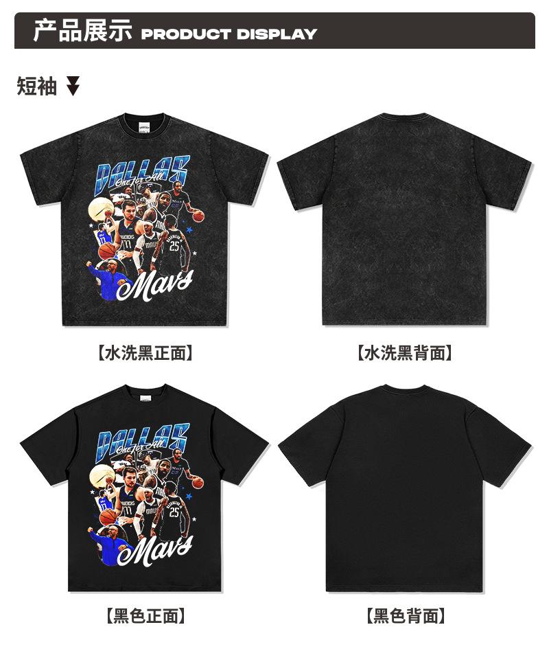 Camiseta con estampado DAL de Lone Ranger vintage lavada transfronteriza, cuello redondo vintage de High Street, algodón pesado, cuello pequeño, camiseta moderna
