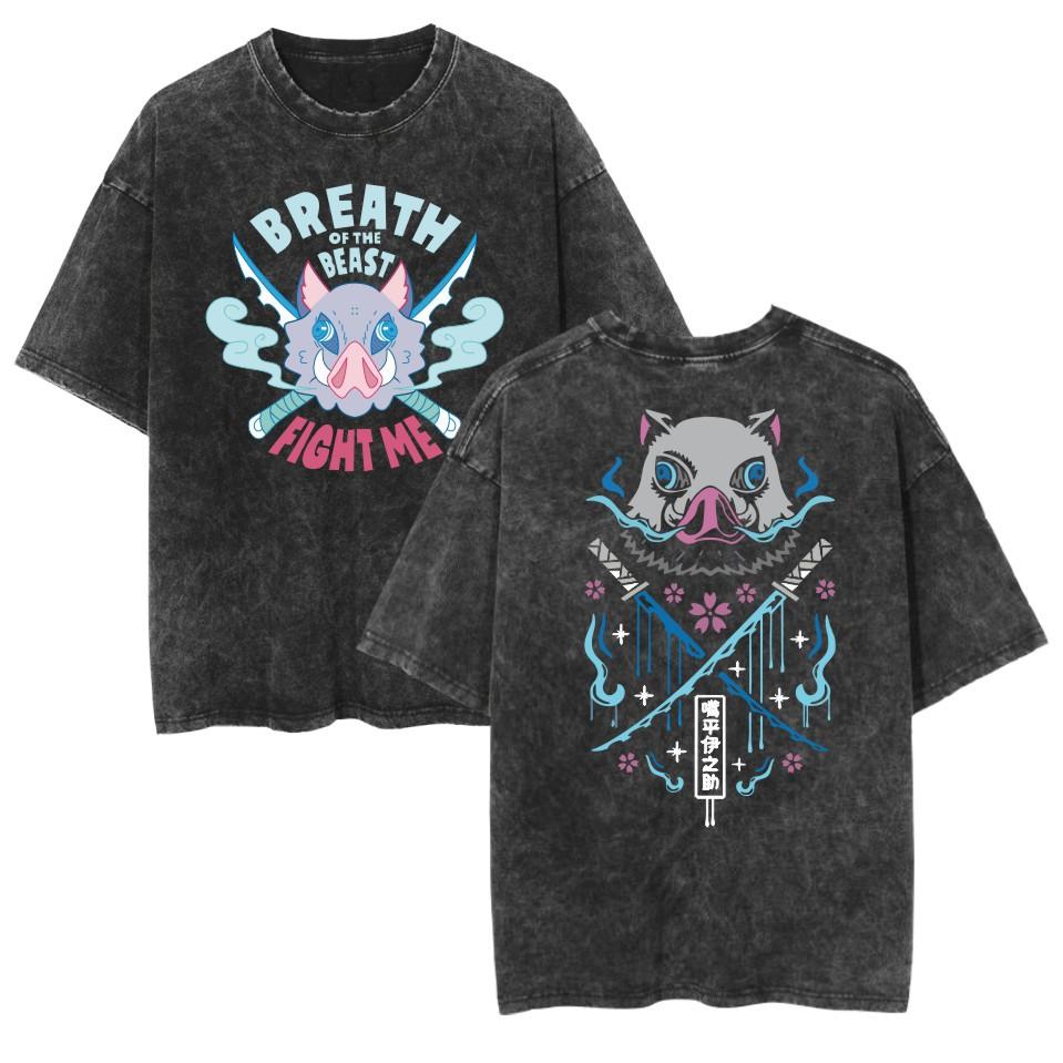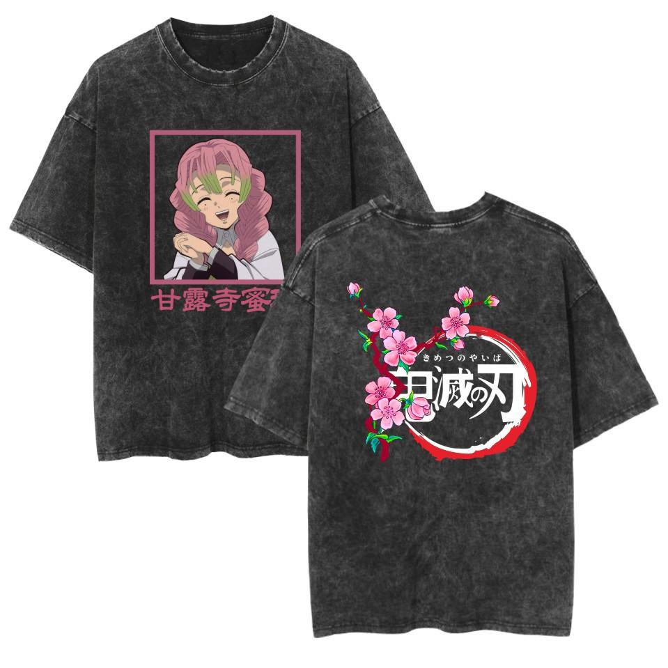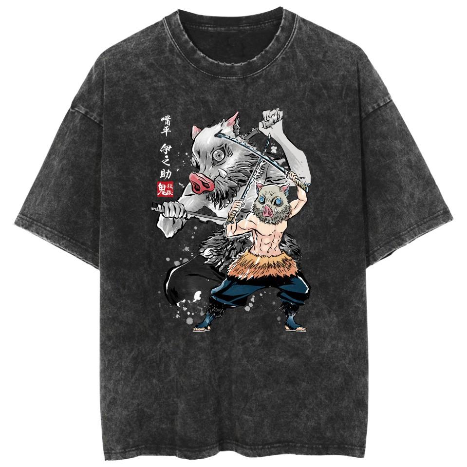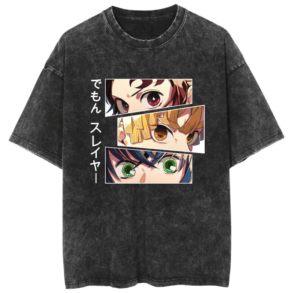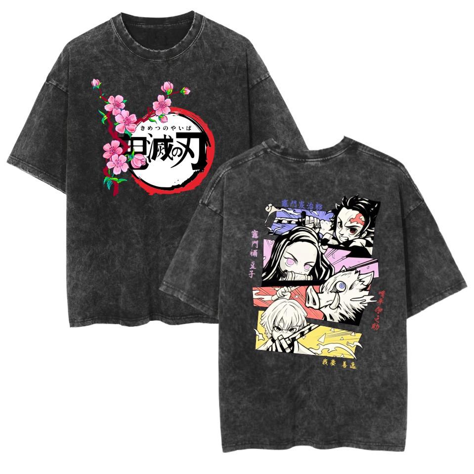Camiseta lavada transfronteriza vestida con la animación de Demon Slayer Ghost Blade Summer Couple de manga corta