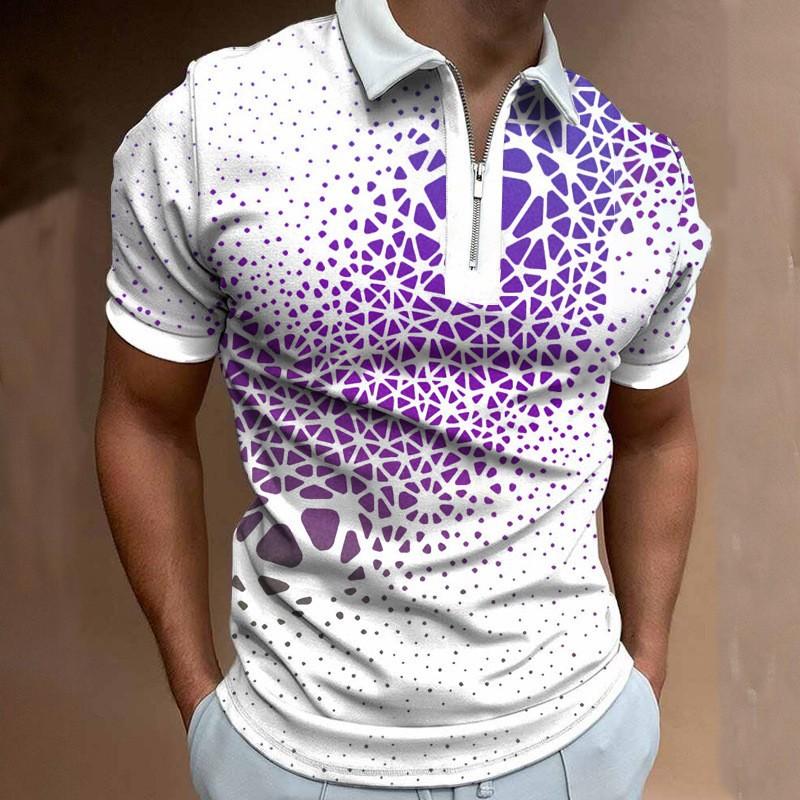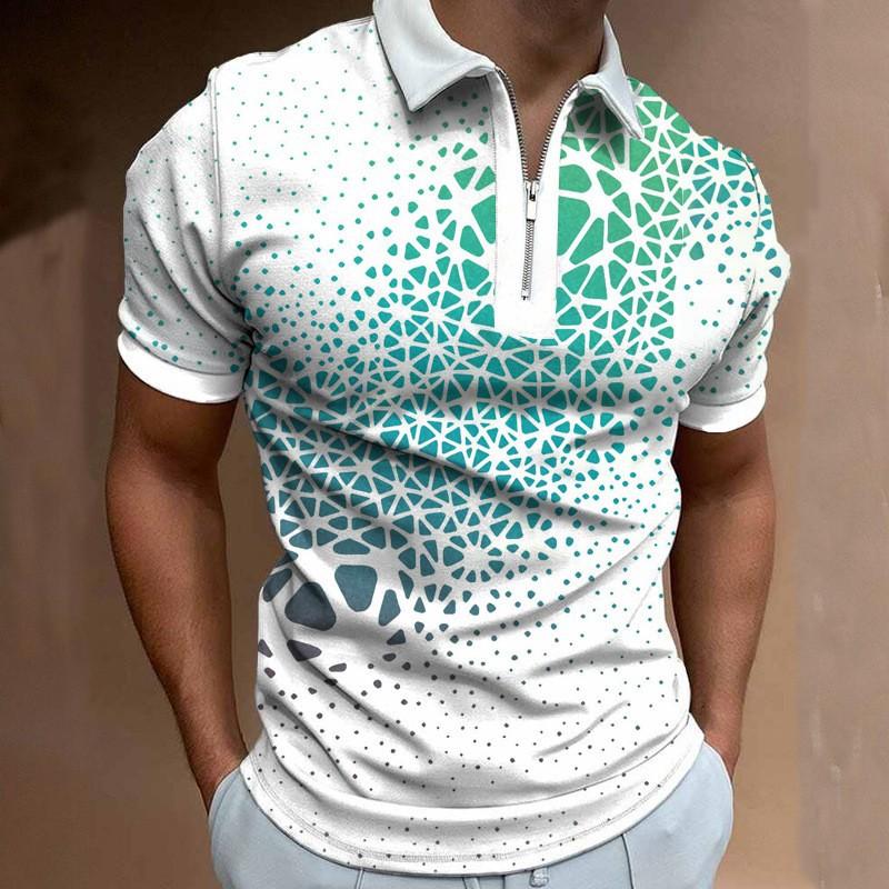 Polo de manga corta con solapa y cremallera informal estampado de moda para hombre, comercio exterior transfronterizo de verano 2023
