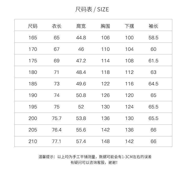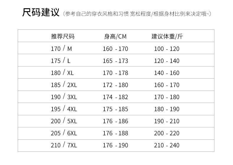 170/M, 175/L, 180/XL, 185/2XL, 190/3XL, 195/4XL