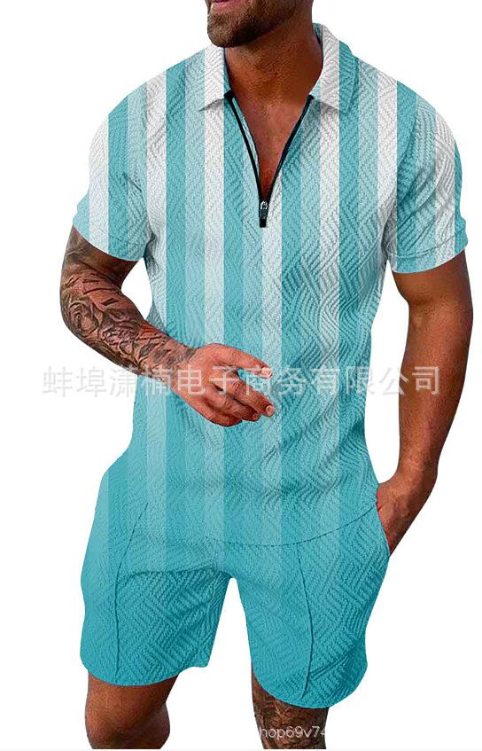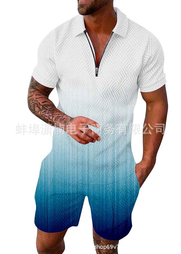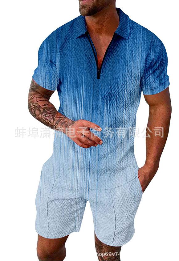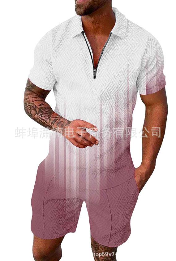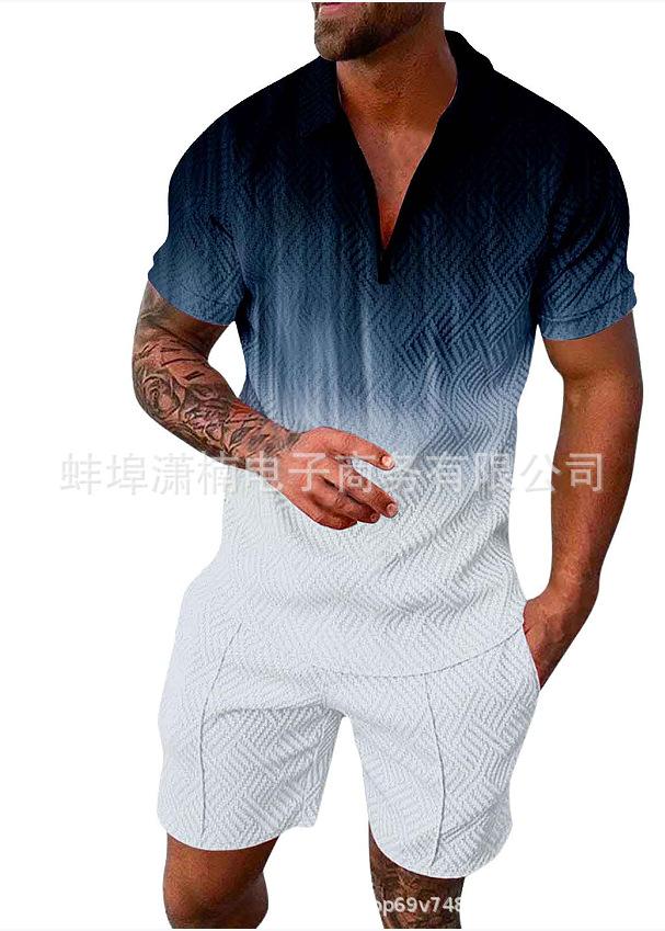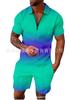 Conjunto de polo 3D para hombre, jersey de manga corta con solapa y cuello alto, estilo informal, para Europa y América, 2023