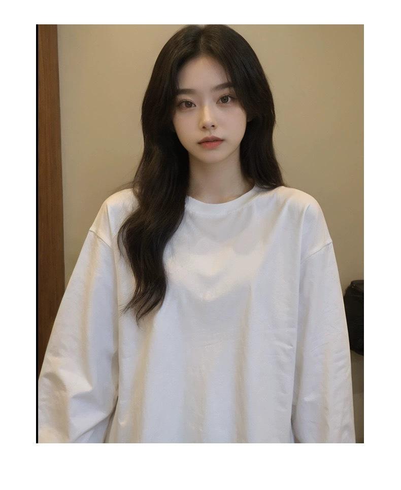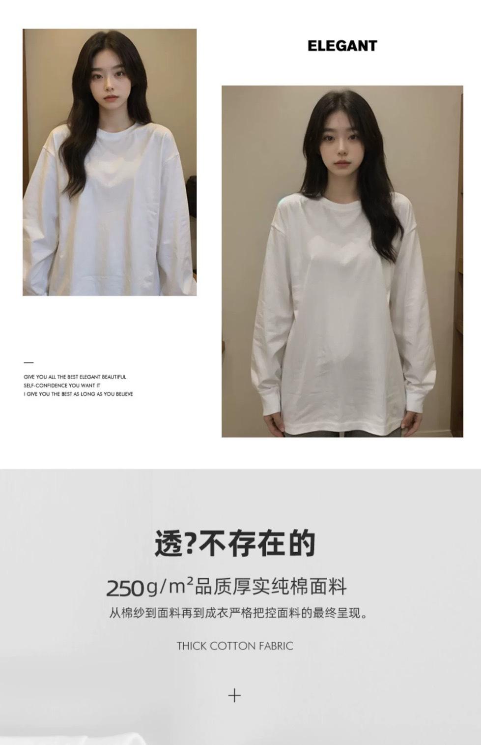 Camiseta de manga larga de algodón pesado de primavera de 250 g de algodón Xinjiang blanco puro, camiseta para pareja, camiseta básica de algodón puro, top interior