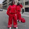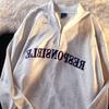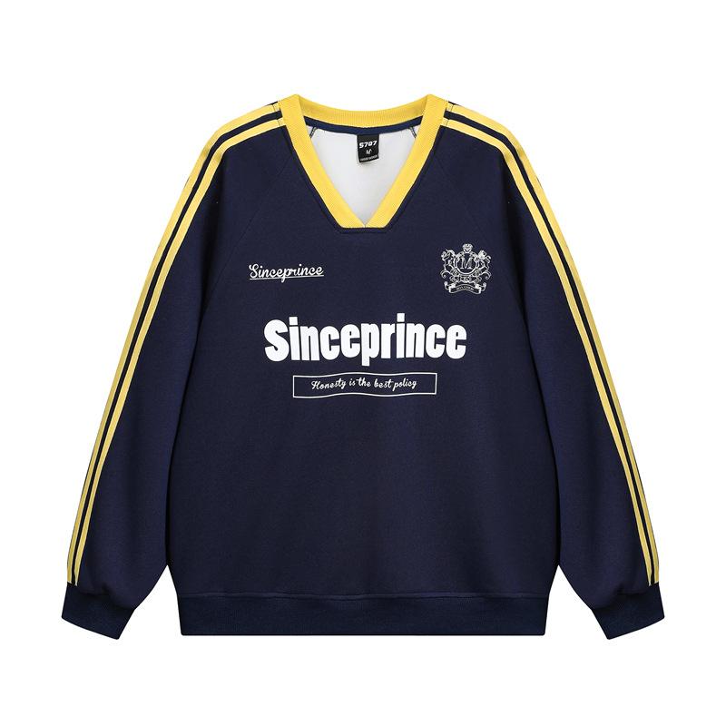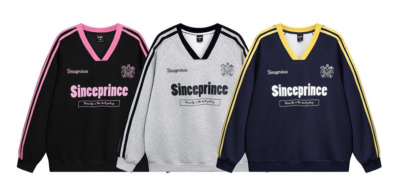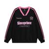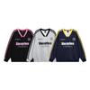 Sudadera con letras y rayas en contraste de estilo americano para hombre y mujer, jersey holgado con lazo para otoño