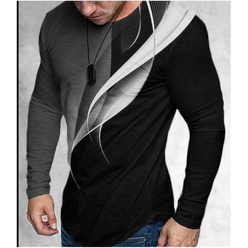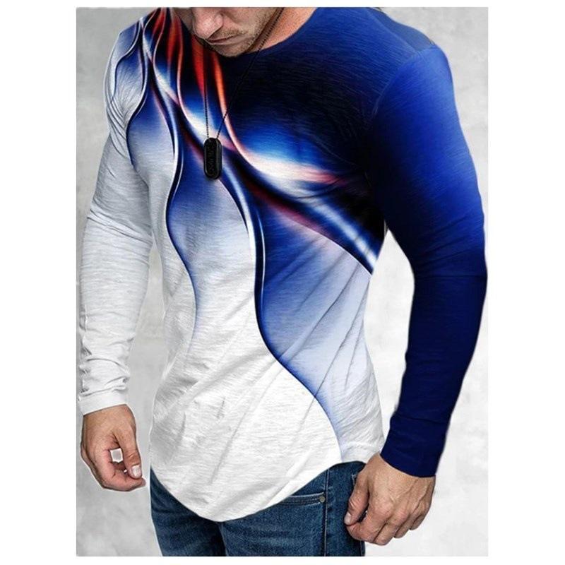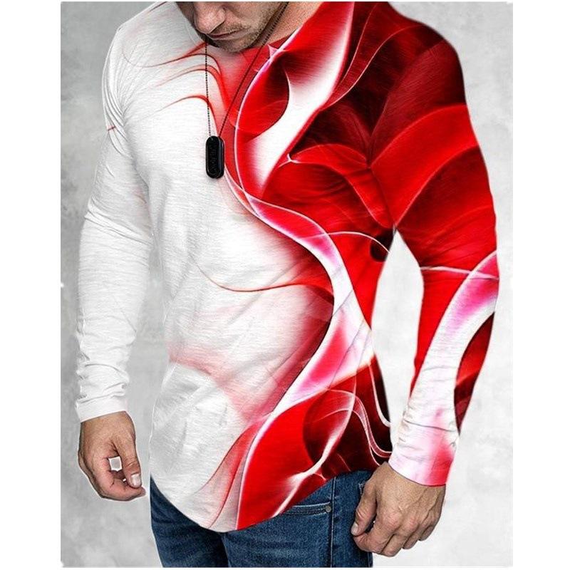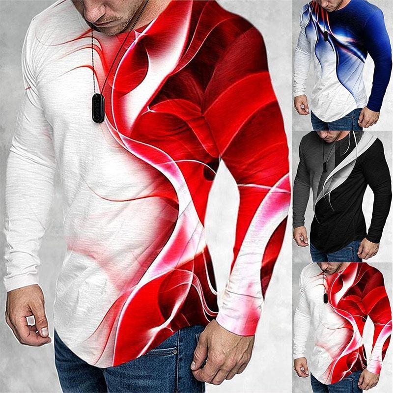 Camiseta de verano 2023 para hombre, con estampado de lunares y llamas multicolores, informal, de manga larga, cuello redondo, lote de fábrica