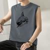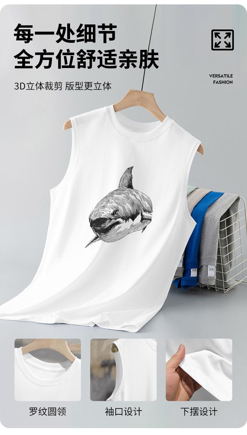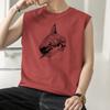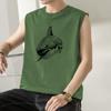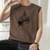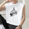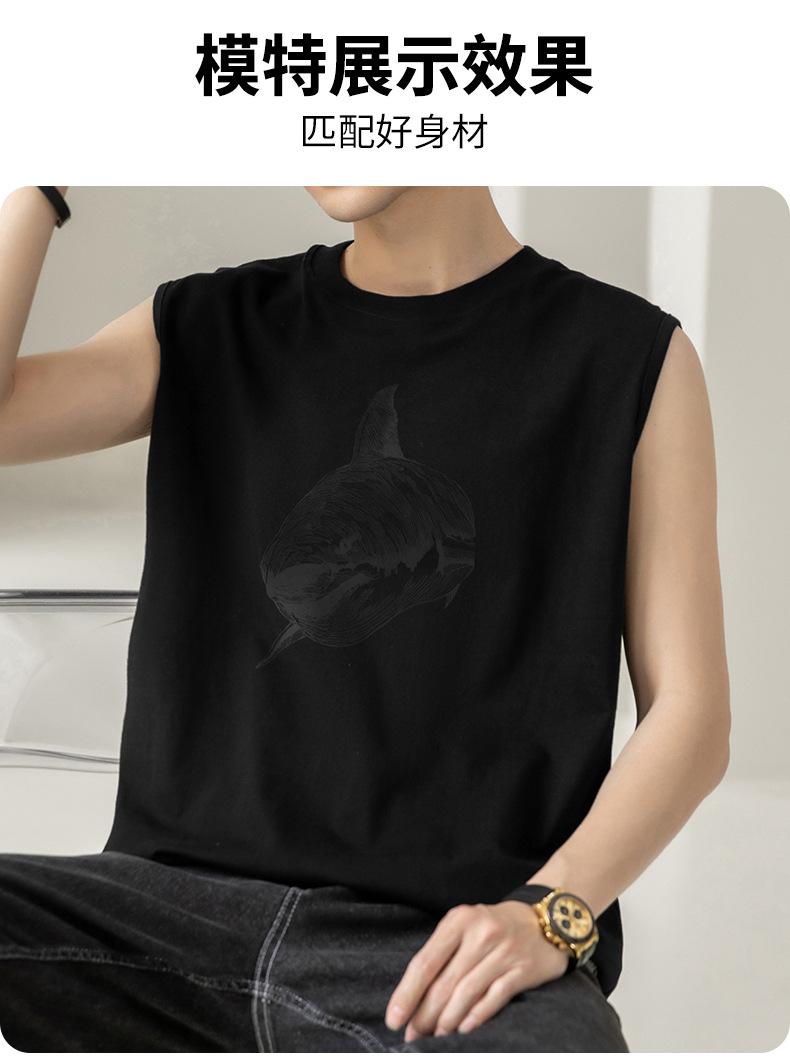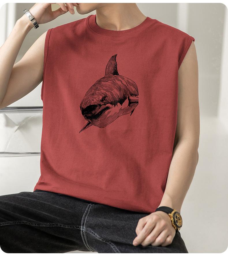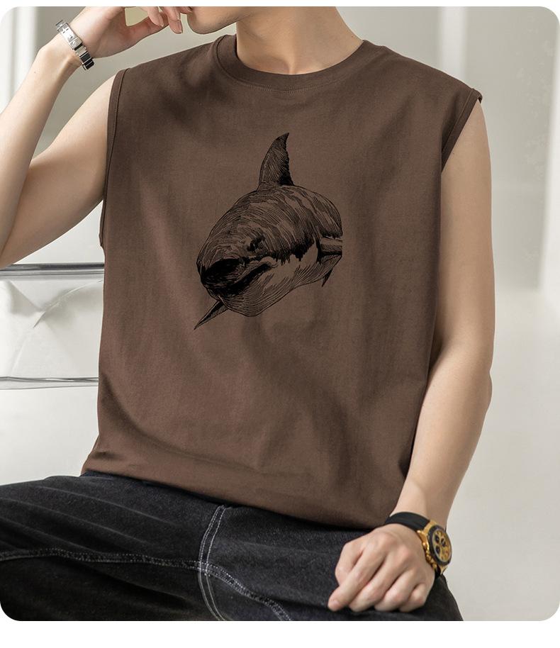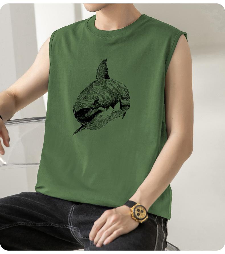 Playera sin mangas de algodón puro Chaleco para hombre 2025 Nuevo Verano Deportes Fitness Tendencia Estampado de Tiburón Blanco Chaleco