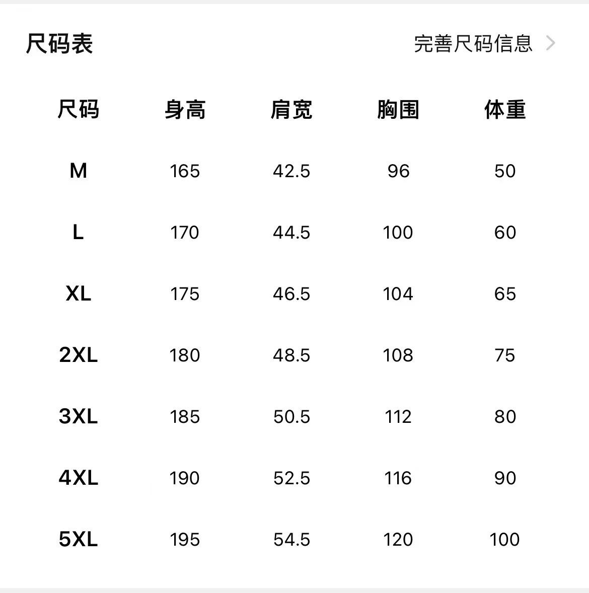 M, L, XL, XXL, 3XL, 4XL, 5XL