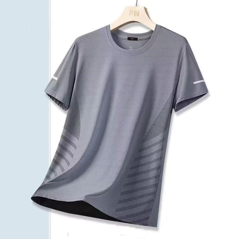Camiseta de seda de hielo de verano para hombre, ropa deportiva de ocio, para correr, fitness, transpirable, de manga corta, de secado rápido para exteriores.