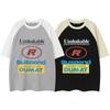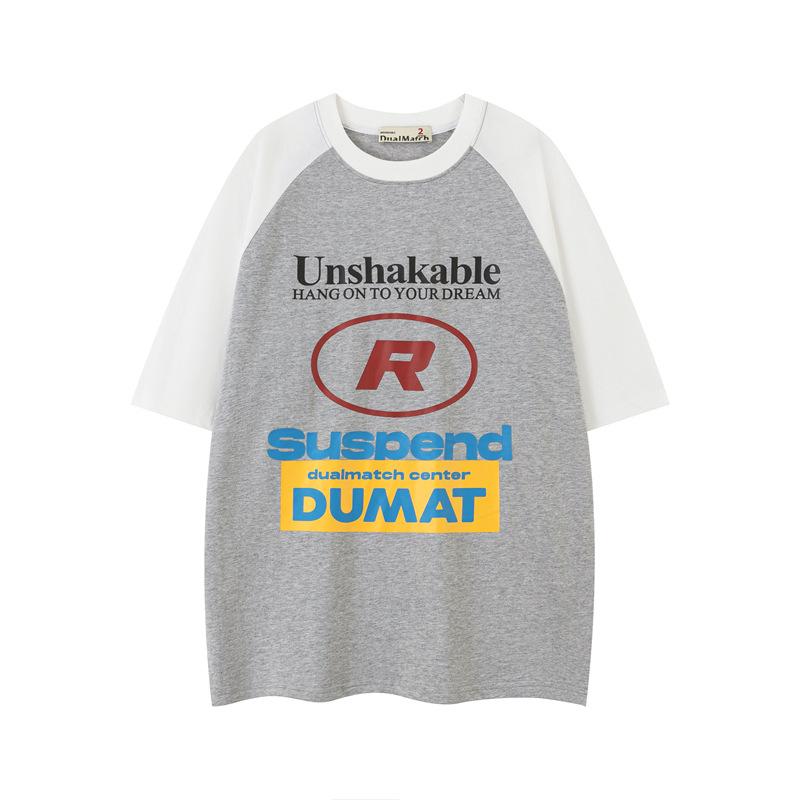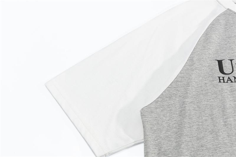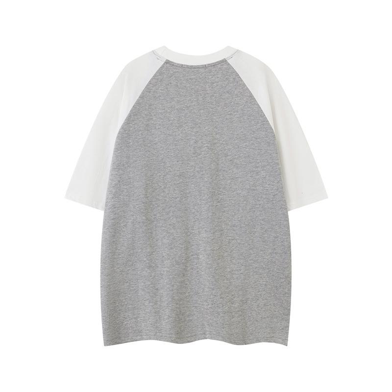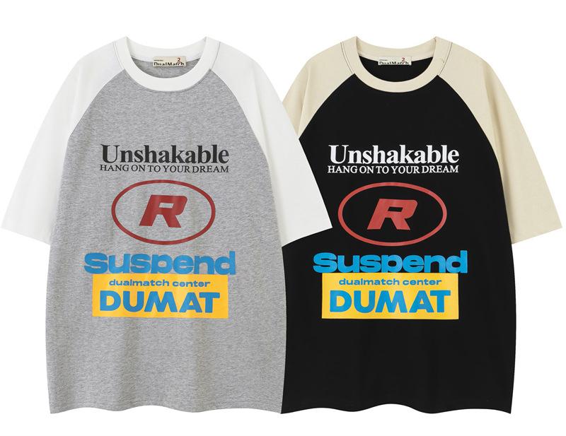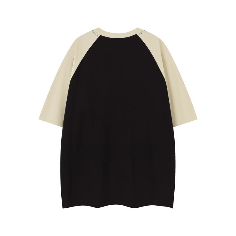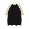 Camiseta de manga corta raglán con costuras de color en contraste retro estilo americano para hombre y mujer, nueva camiseta informal holgada de verano para parejas, combinable con todo.