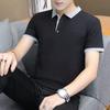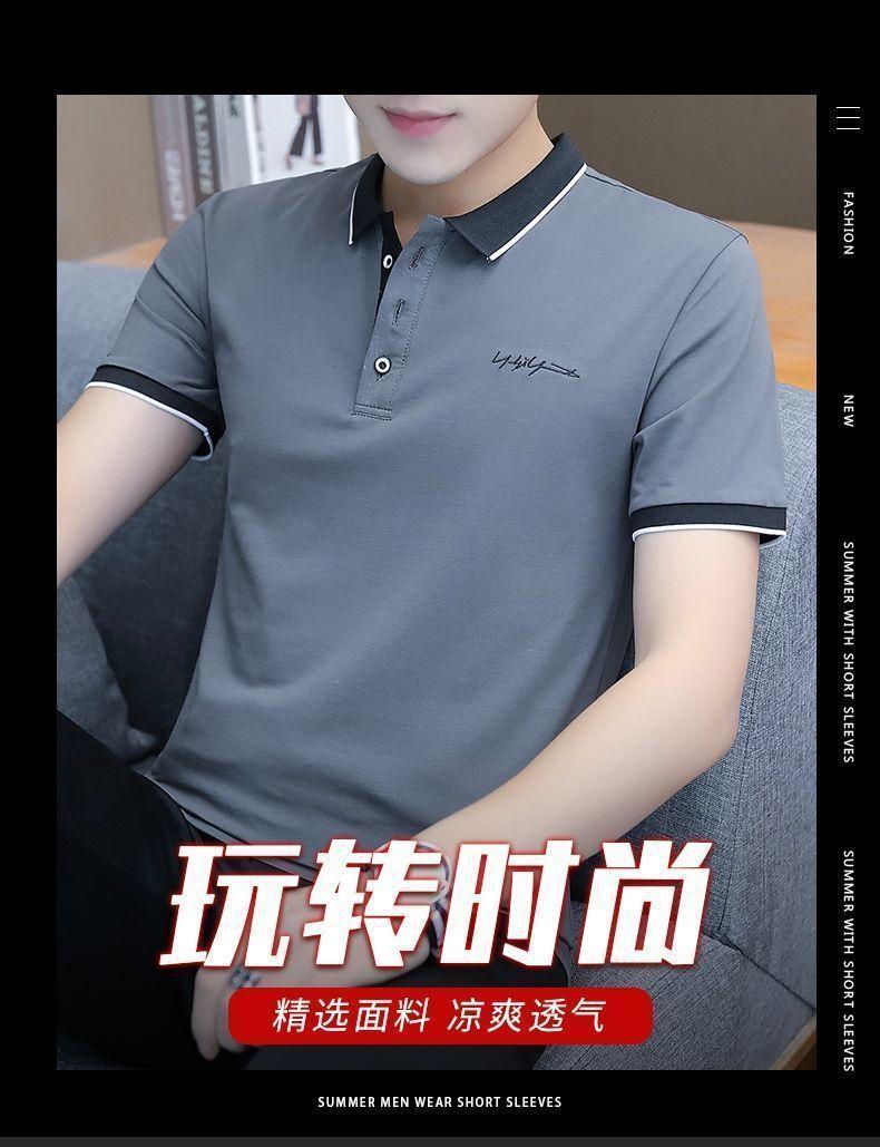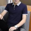 Camisa polo de seda de hielo para el trabajo, manga corta, corte entallado, transpirable, de verano, con solapa, informal, de media manga para hombre, con borde cruzado