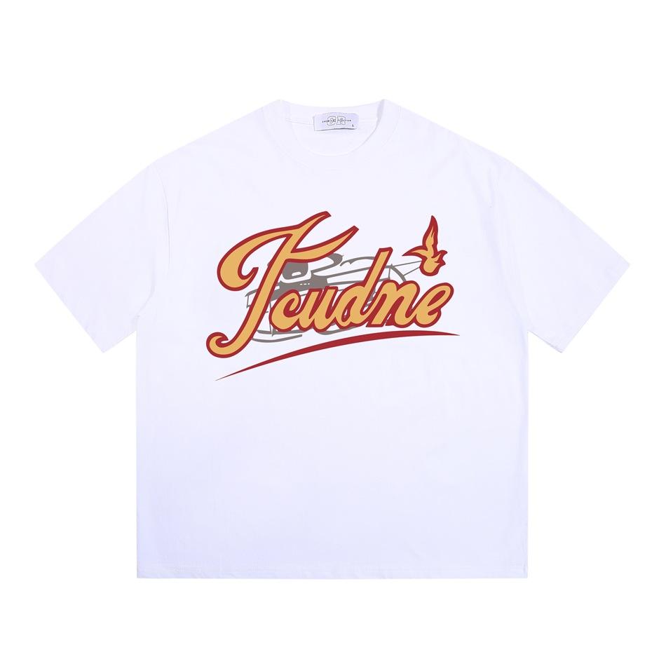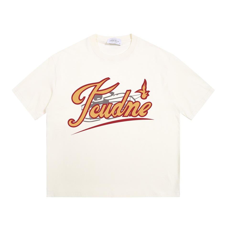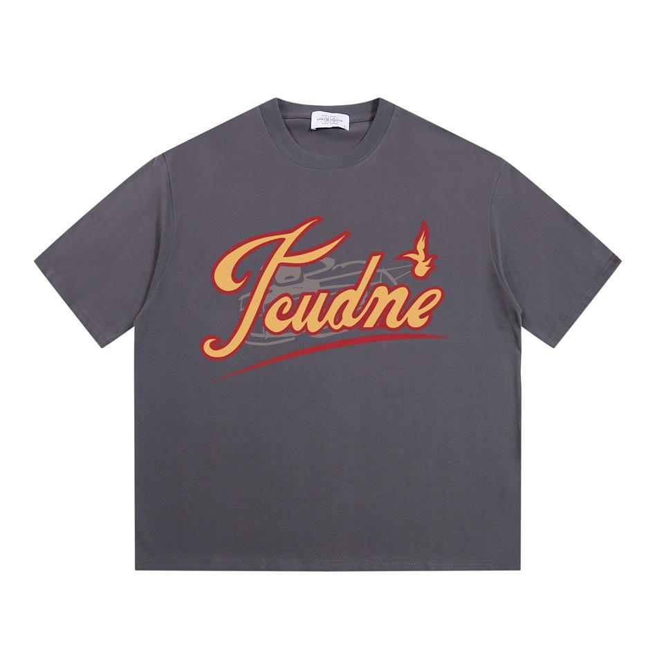 Camiseta de algodón de 230 g con cuello redondo, estilo juvenil retro americano CJSD, para hombre, holgada, de manga corta, de verano, 24103