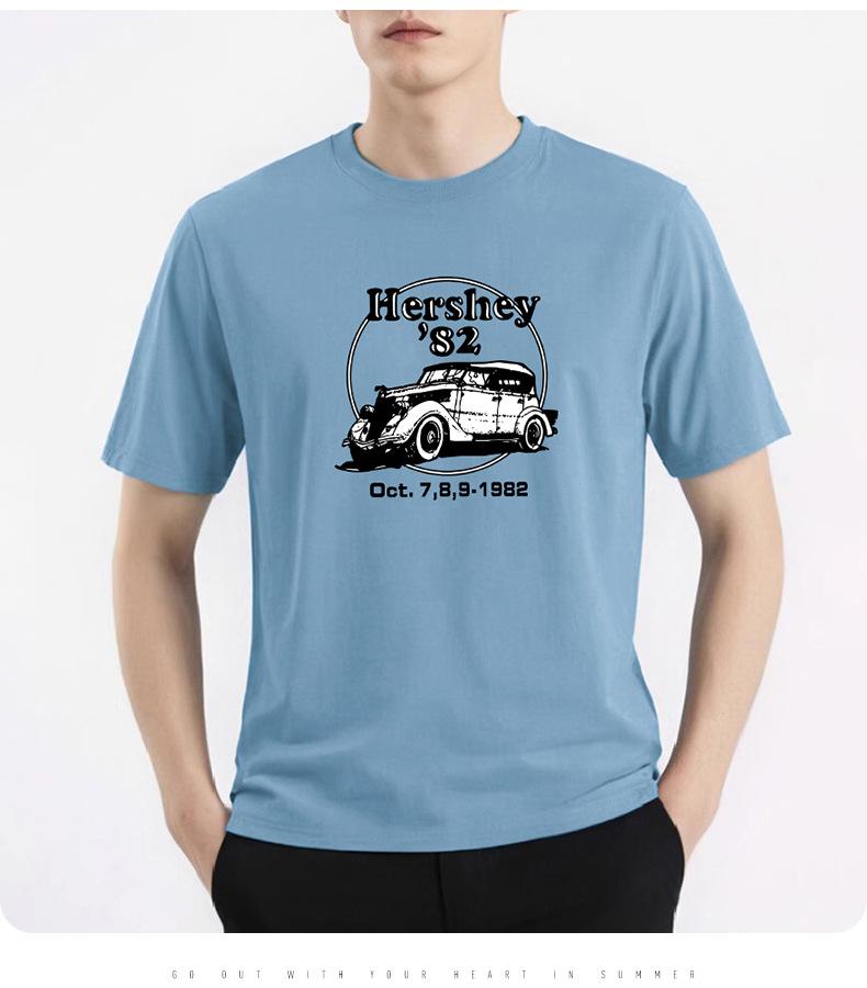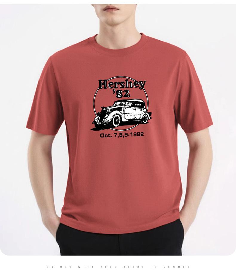 Camiseta de algodón para hombre, de verano, de manga corta, fina, con cuello redondo, estampada a la moda, holgada, de algodón, de media manga, estilo americano.