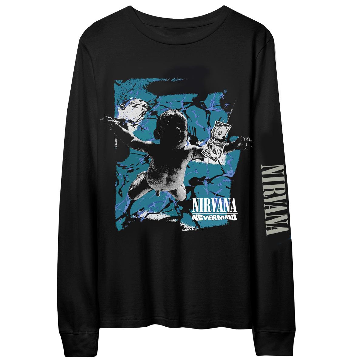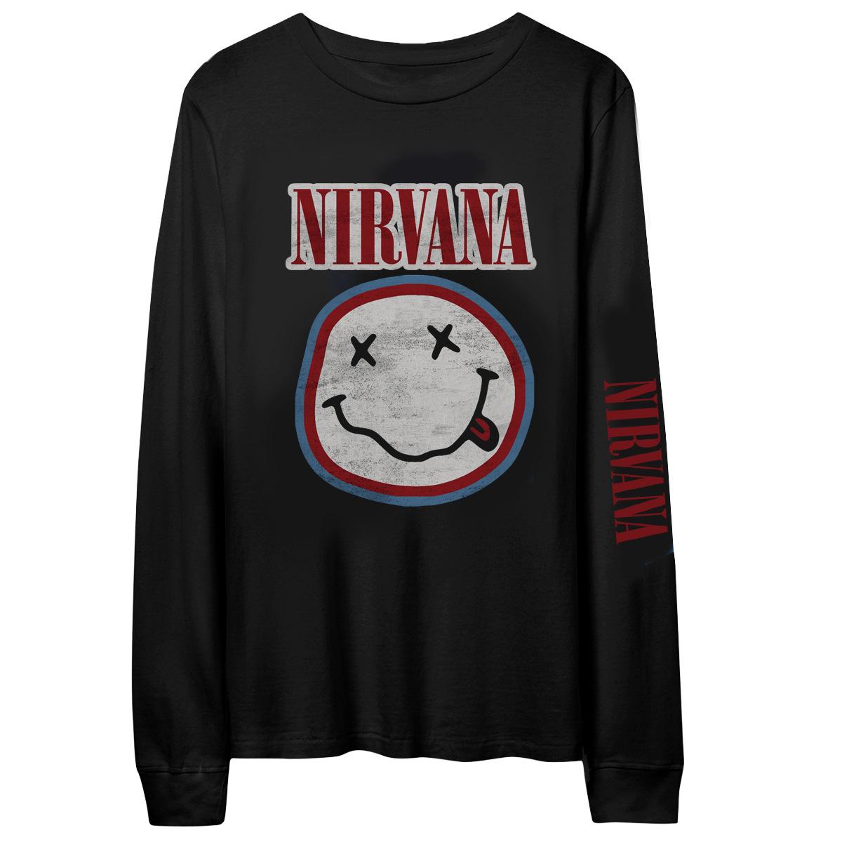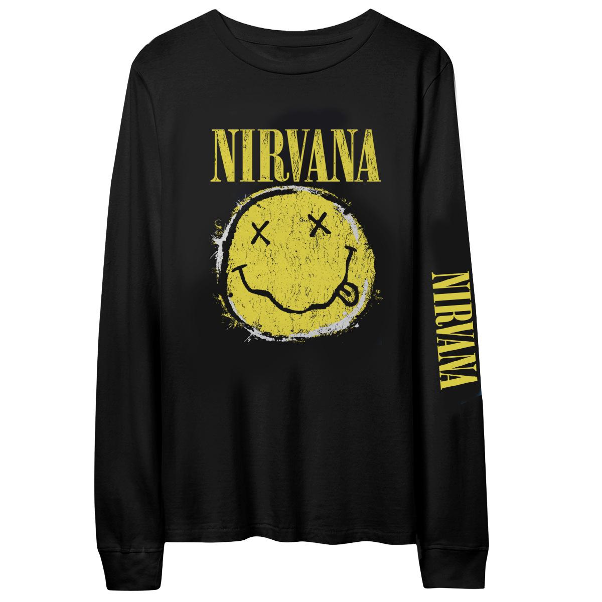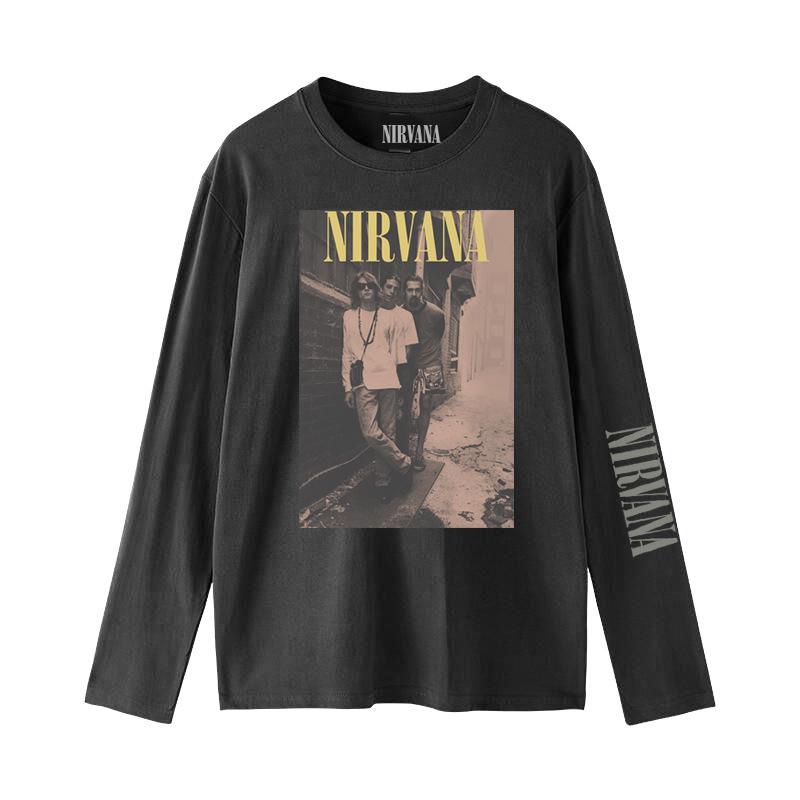 Camiseta de manga larga de gran tamaño de la marca de moda americana Nirvana Nirvana Band Rock Loose Punk para hombre Otoño e Invierno