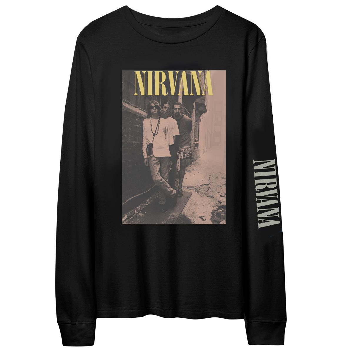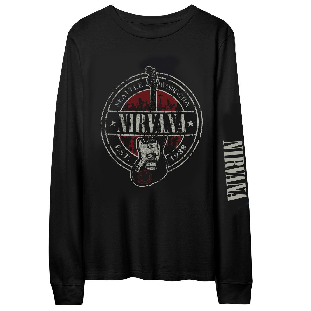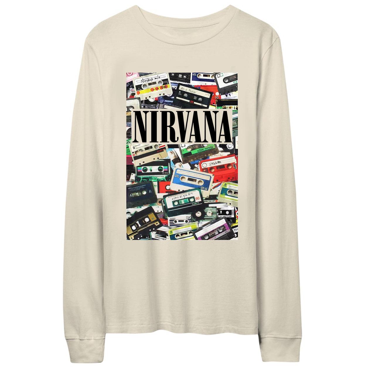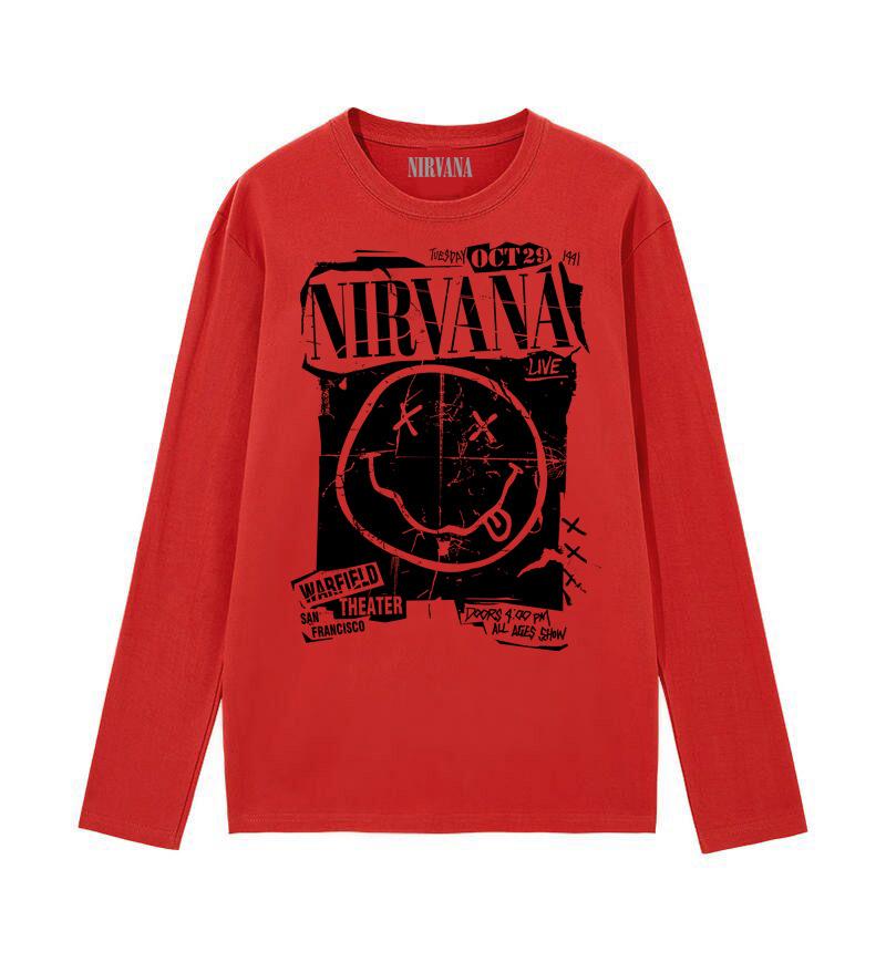 Camiseta de manga larga de gran tamaño de la marca de moda americana Nirvana Nirvana Band Rock Loose Punk para hombre Otoño e Invierno