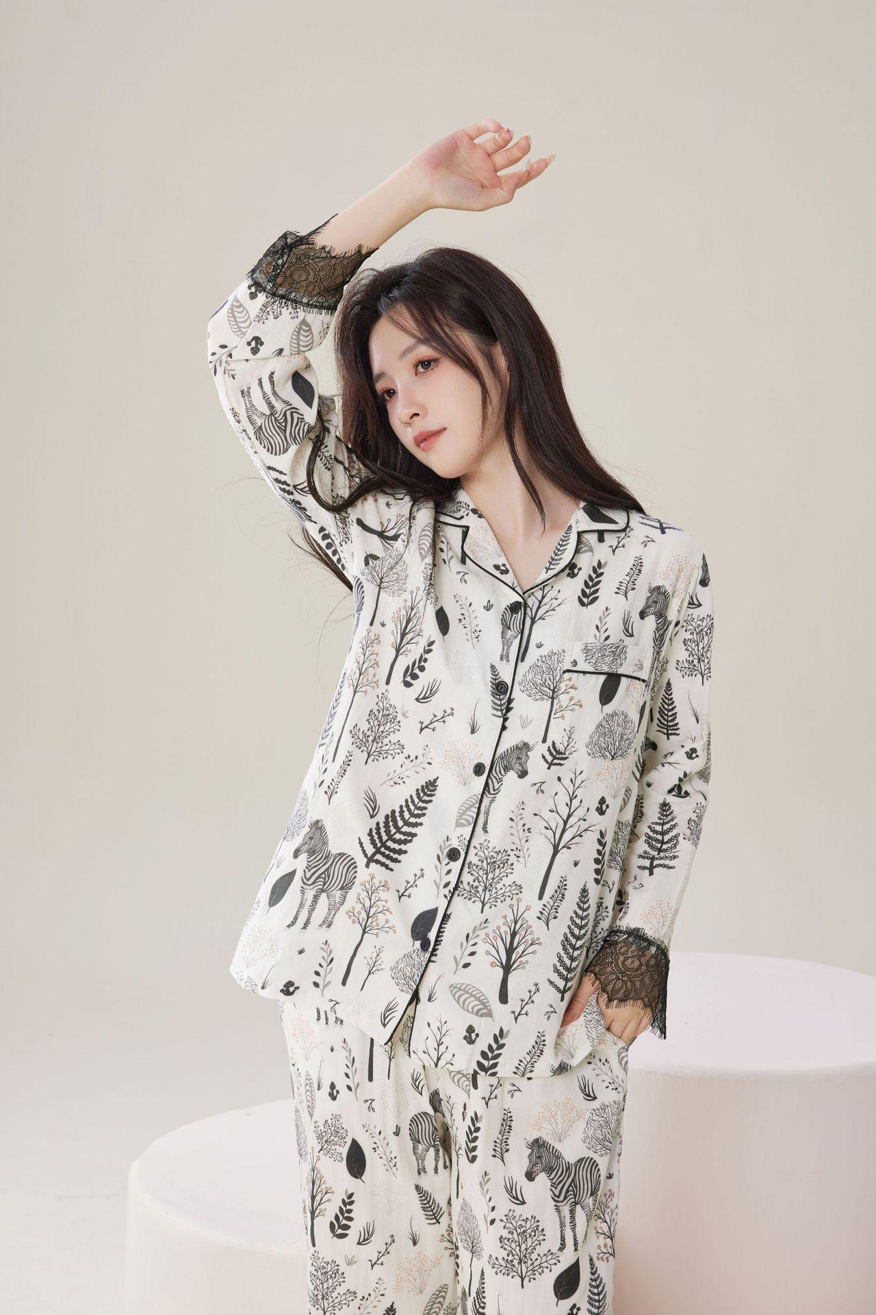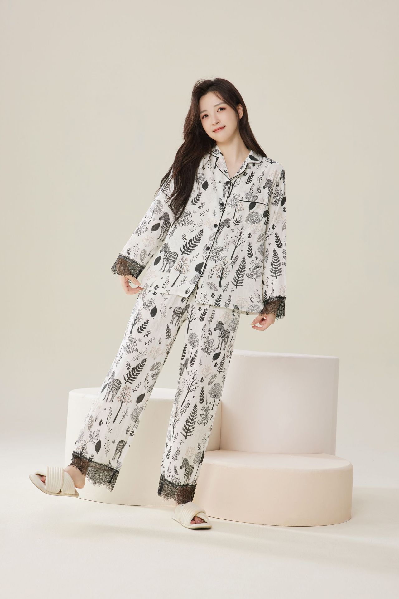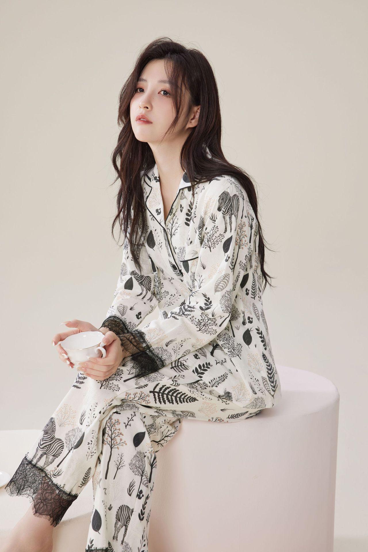 Pijamas de mujer de gasa de doble capa de algodón simple de alta gama, nuevos, de primavera y otoño, de verano, finos, de manga larga, sueltos, para el hogar