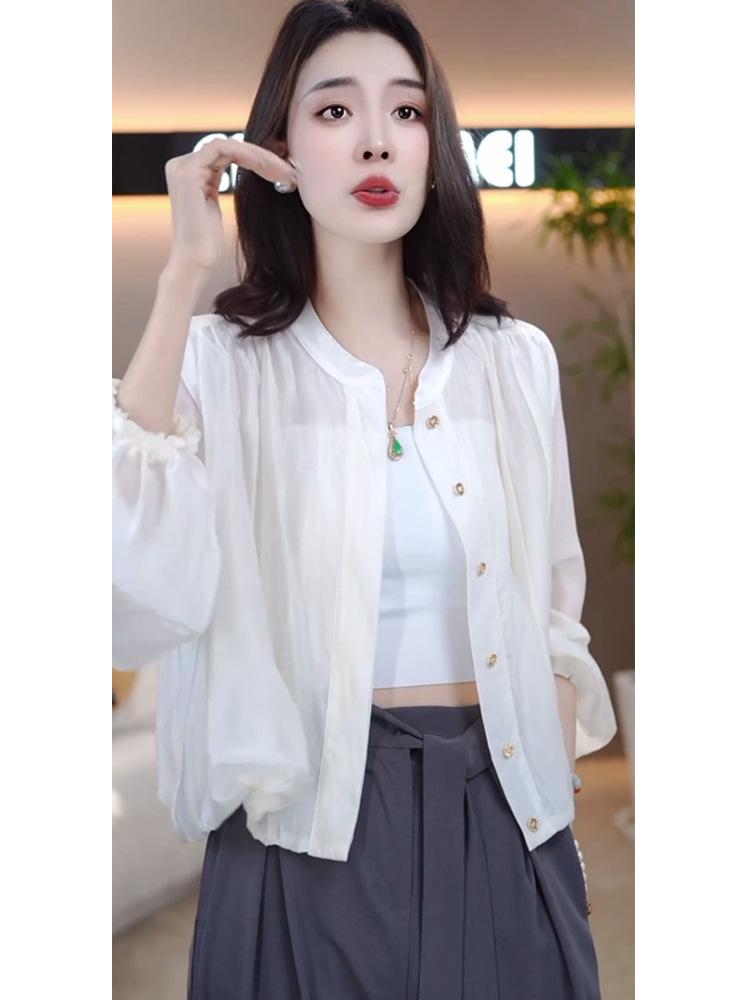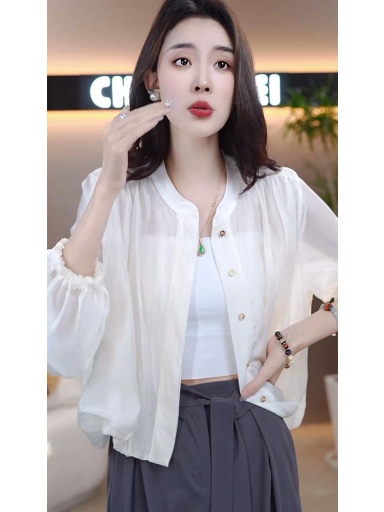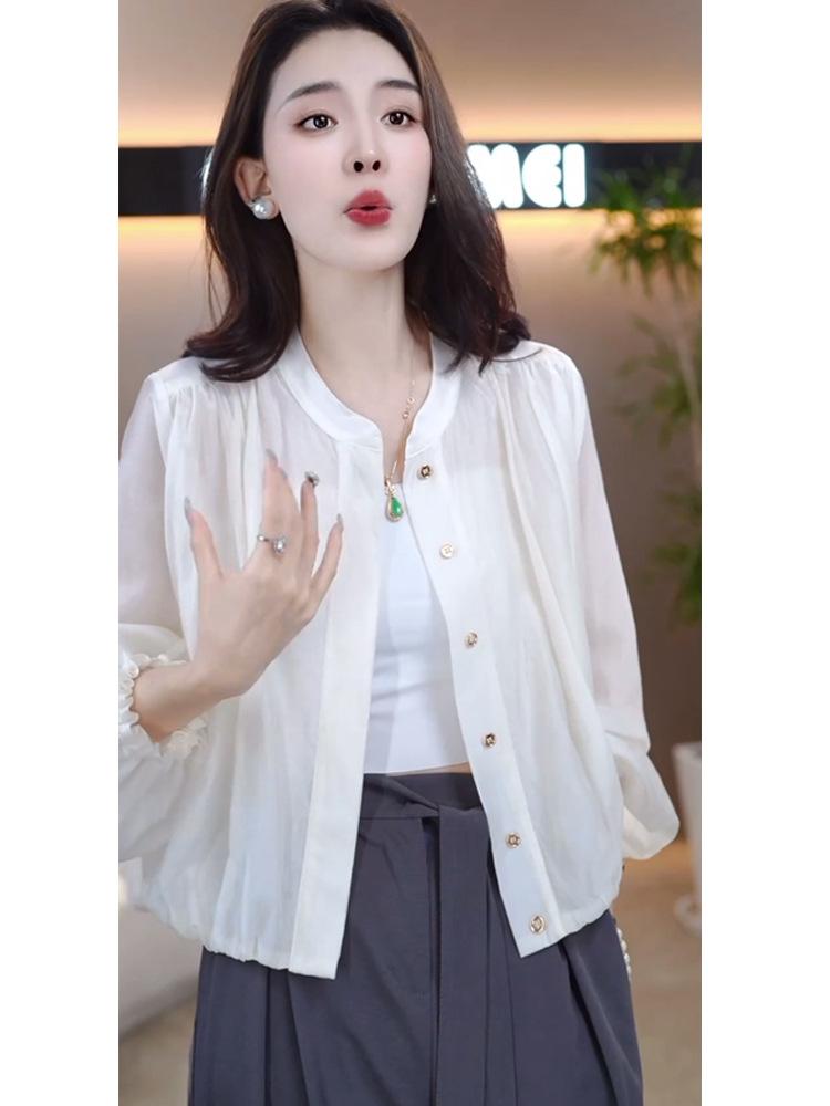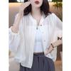 Chaqueta Fina Blanca de Protección Solar para Mujer 2024 Verano Nuevo Estilo Diseño Moderno Top de Manga Larga para Ropa Exterior