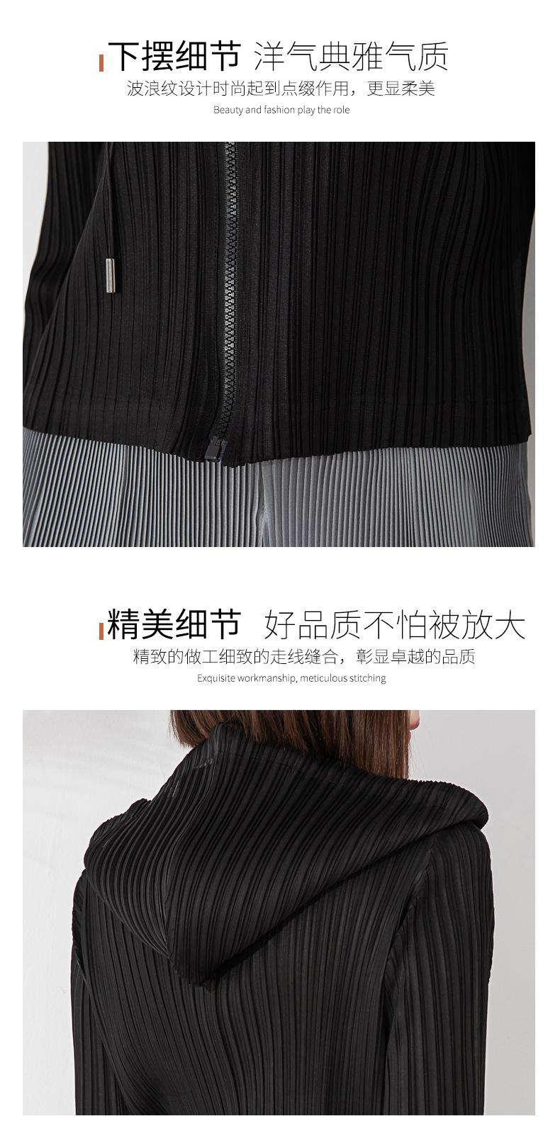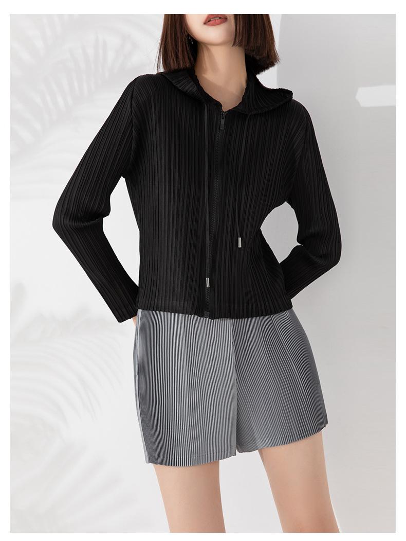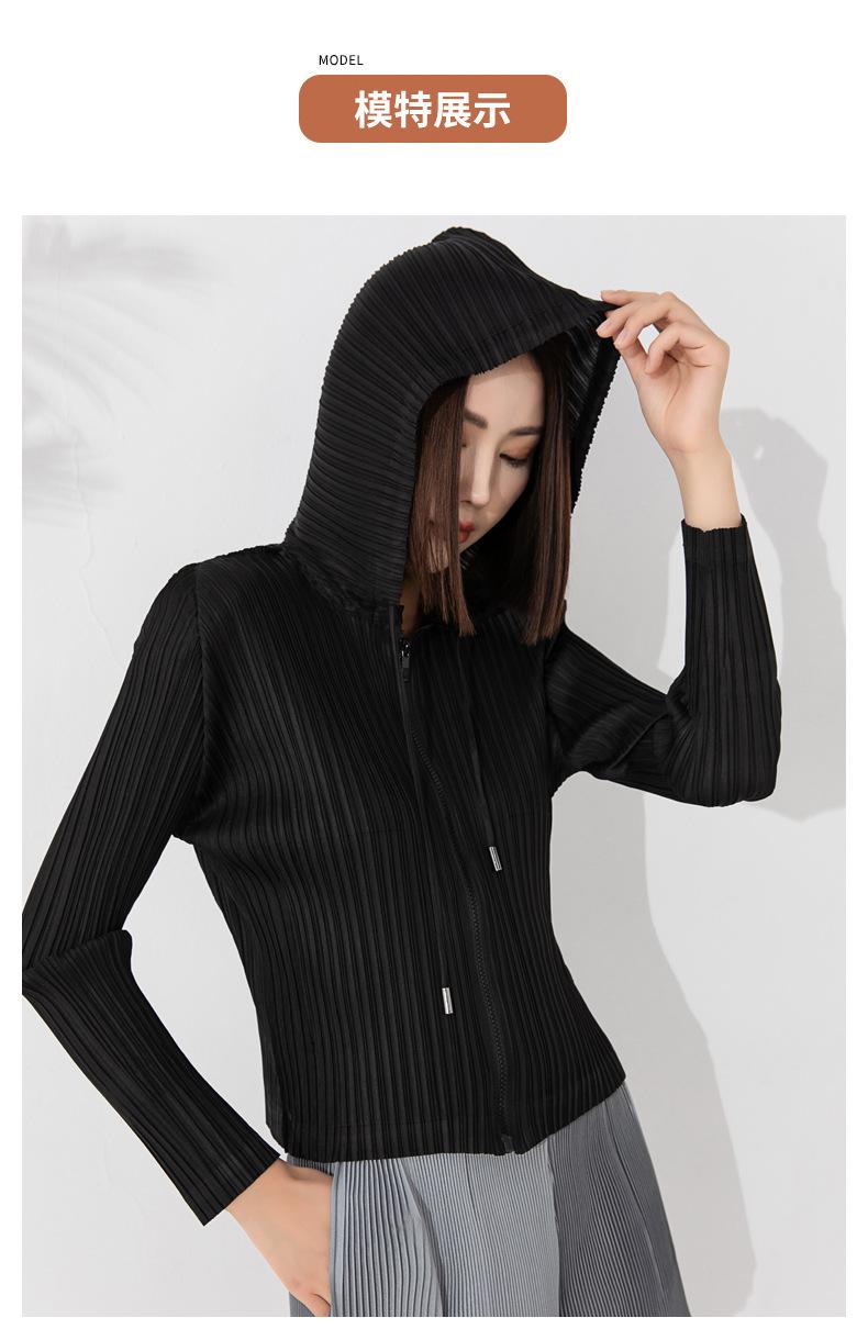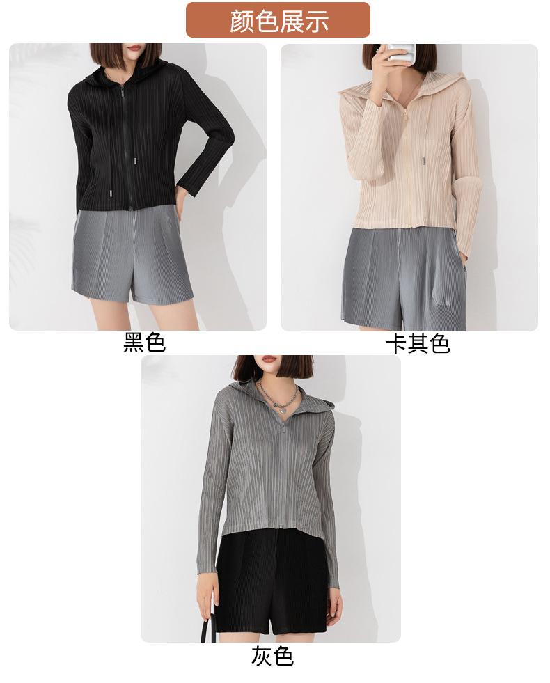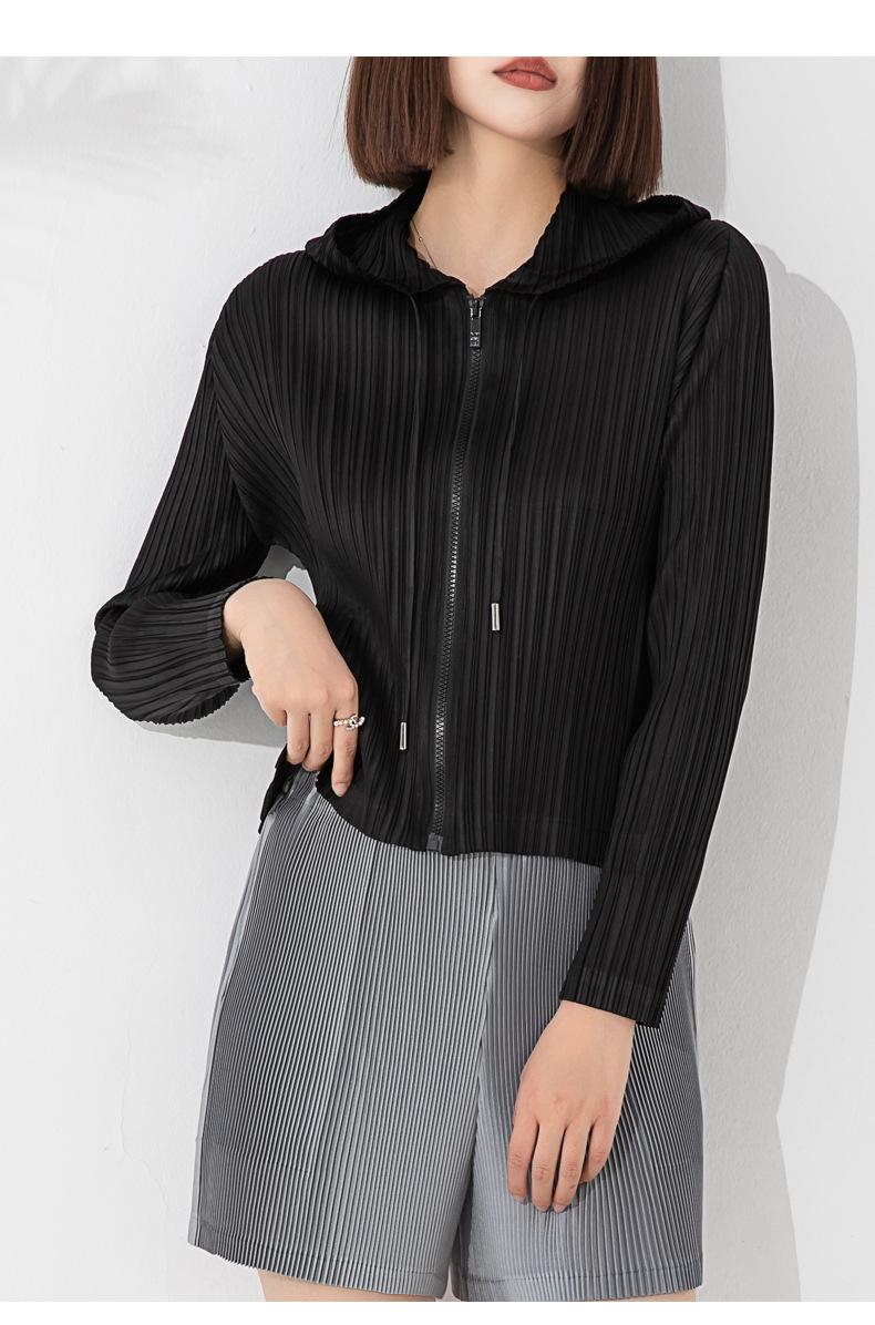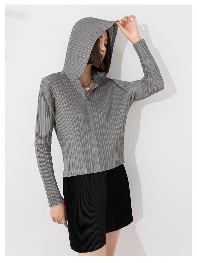 Chaqueta tipo cárdigan de manga larga con capucha y color liso de alta calidad, plisada, con cremallera y protector solar para mujer, primavera y verano 2024