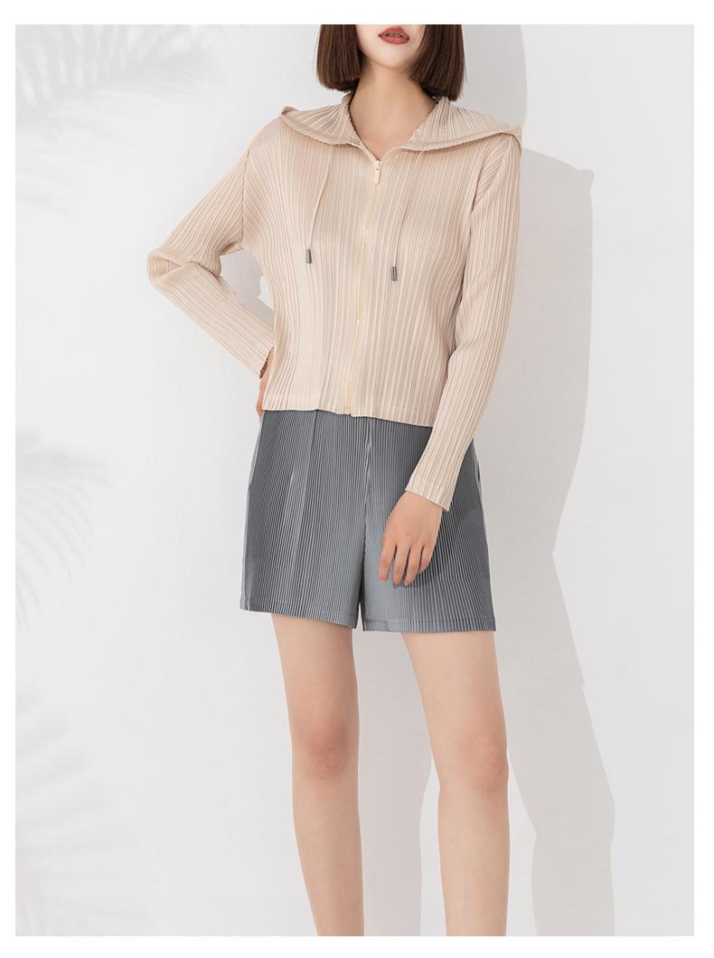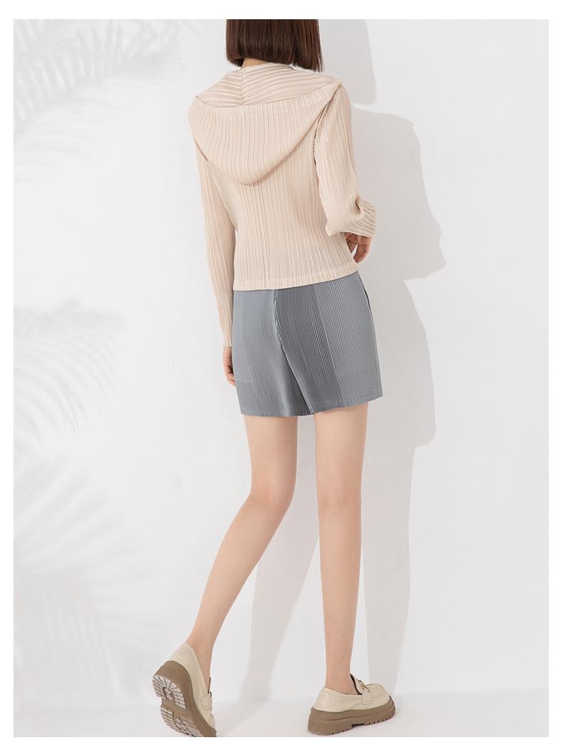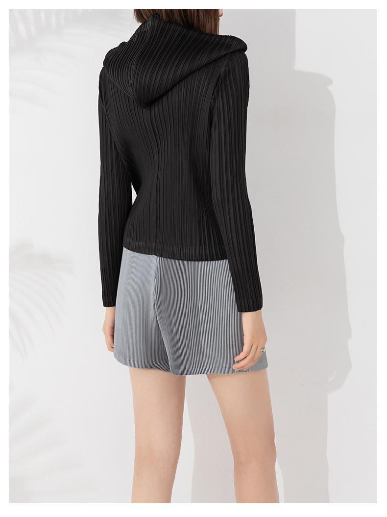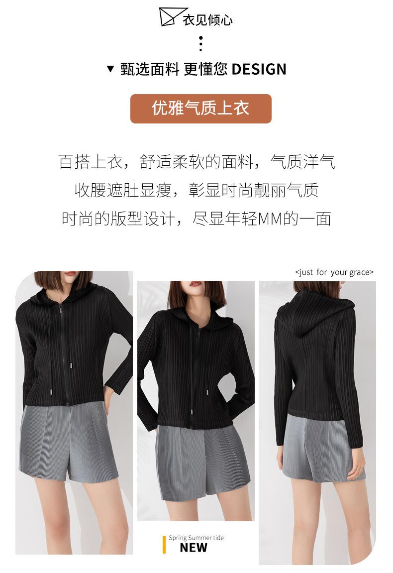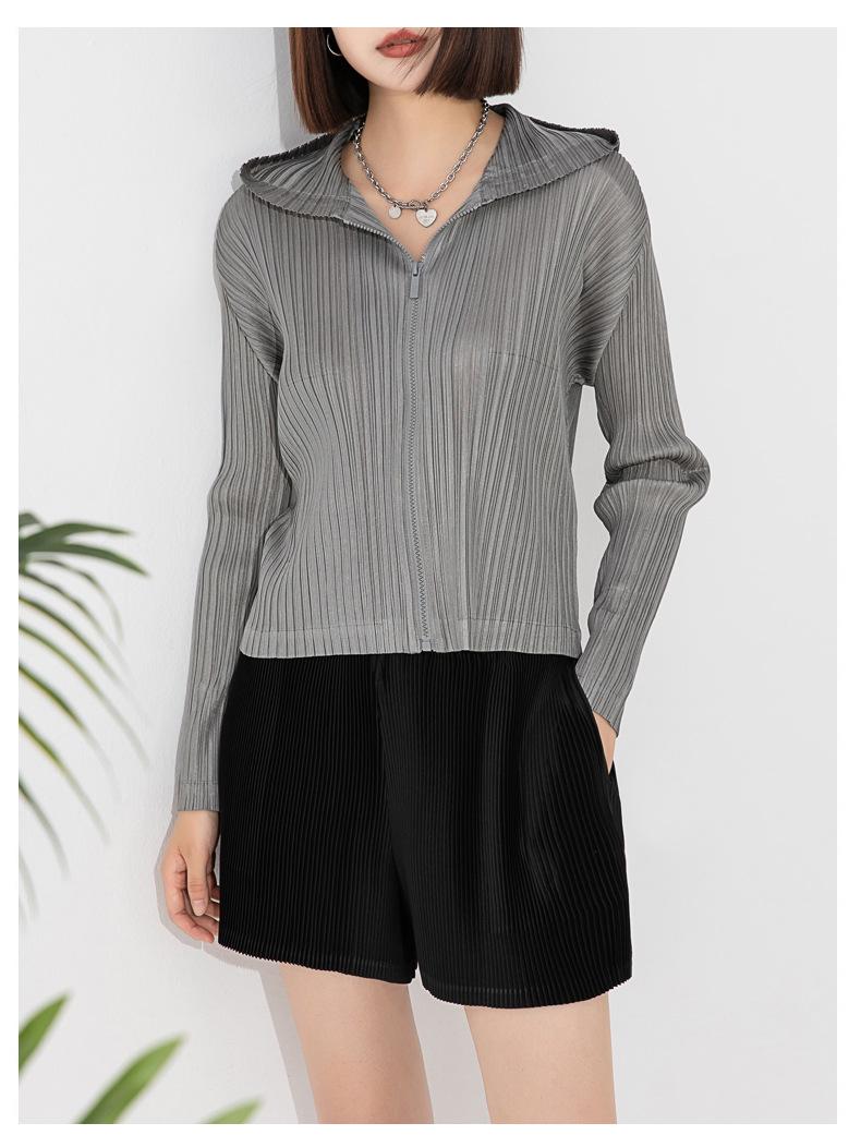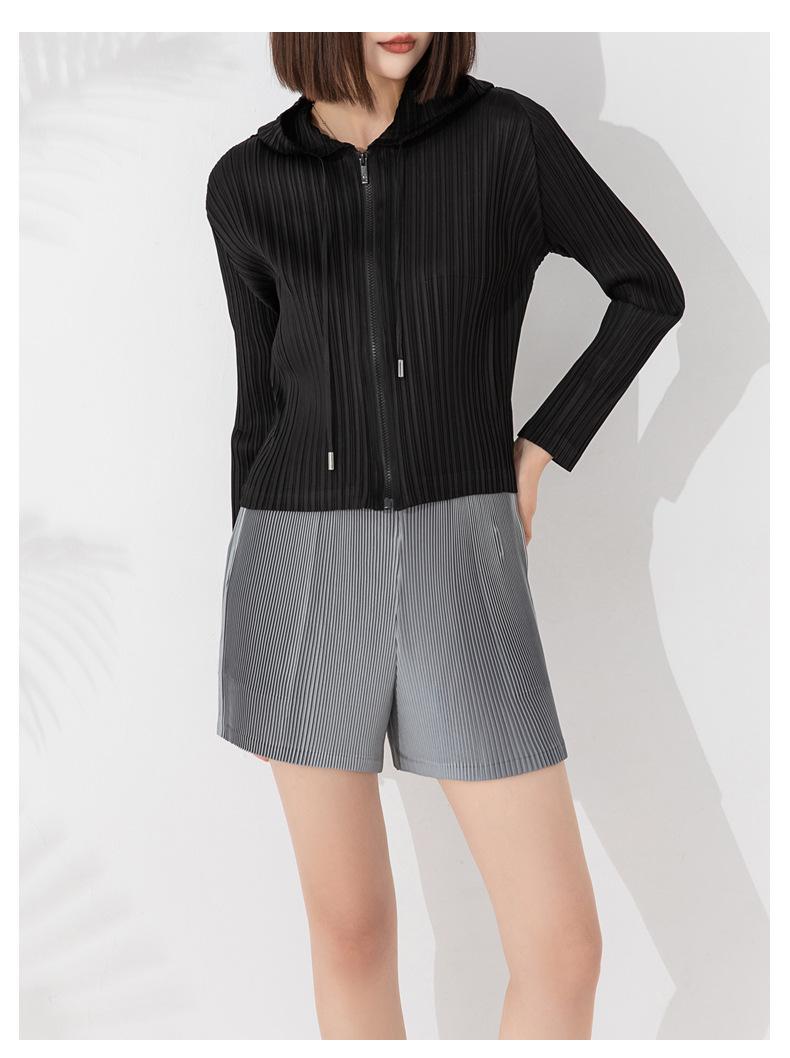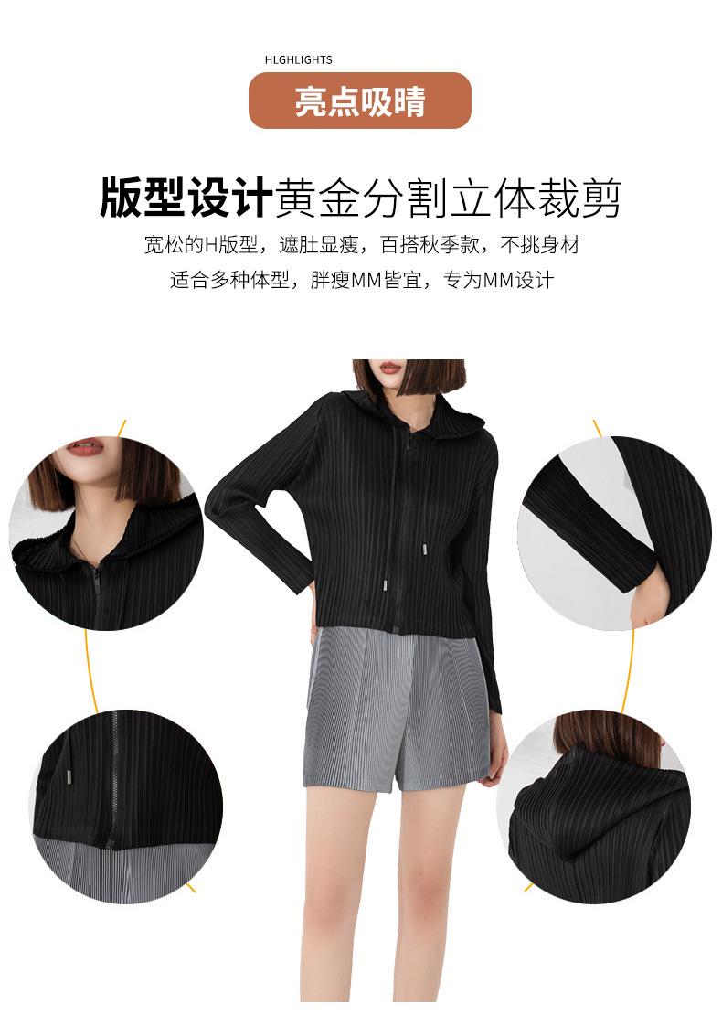 Chaqueta tipo cárdigan de manga larga con capucha y color liso de alta calidad, plisada, con cremallera y protector solar para mujer, primavera y verano 2024