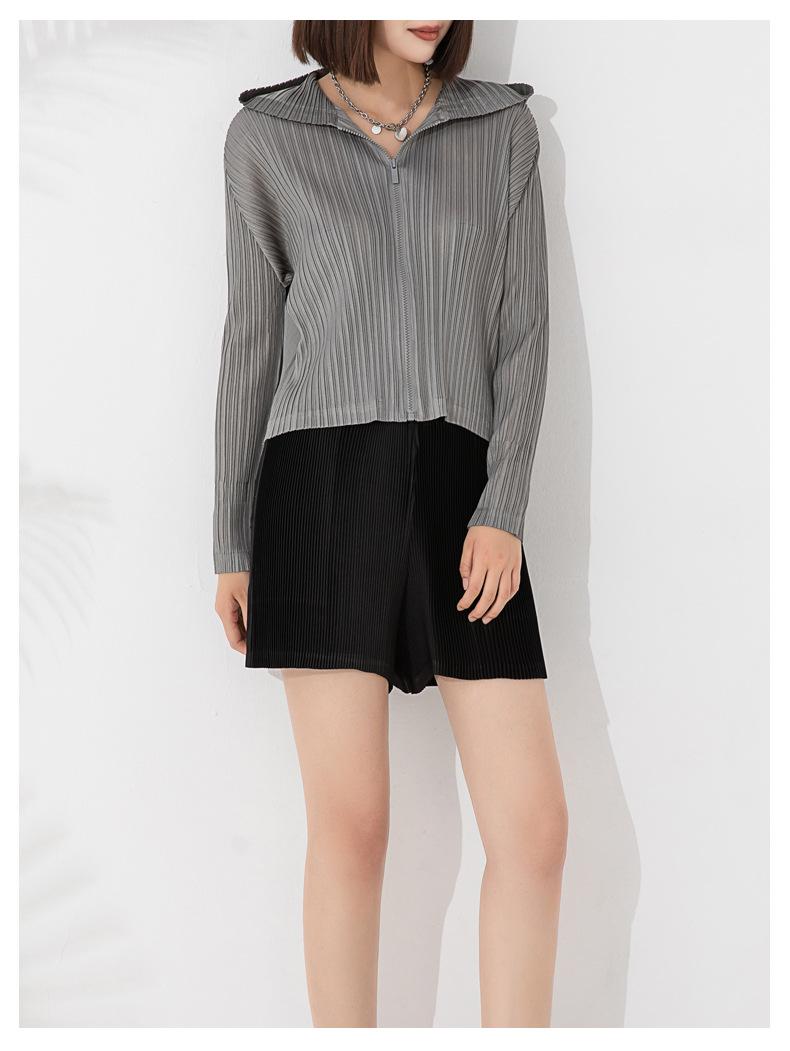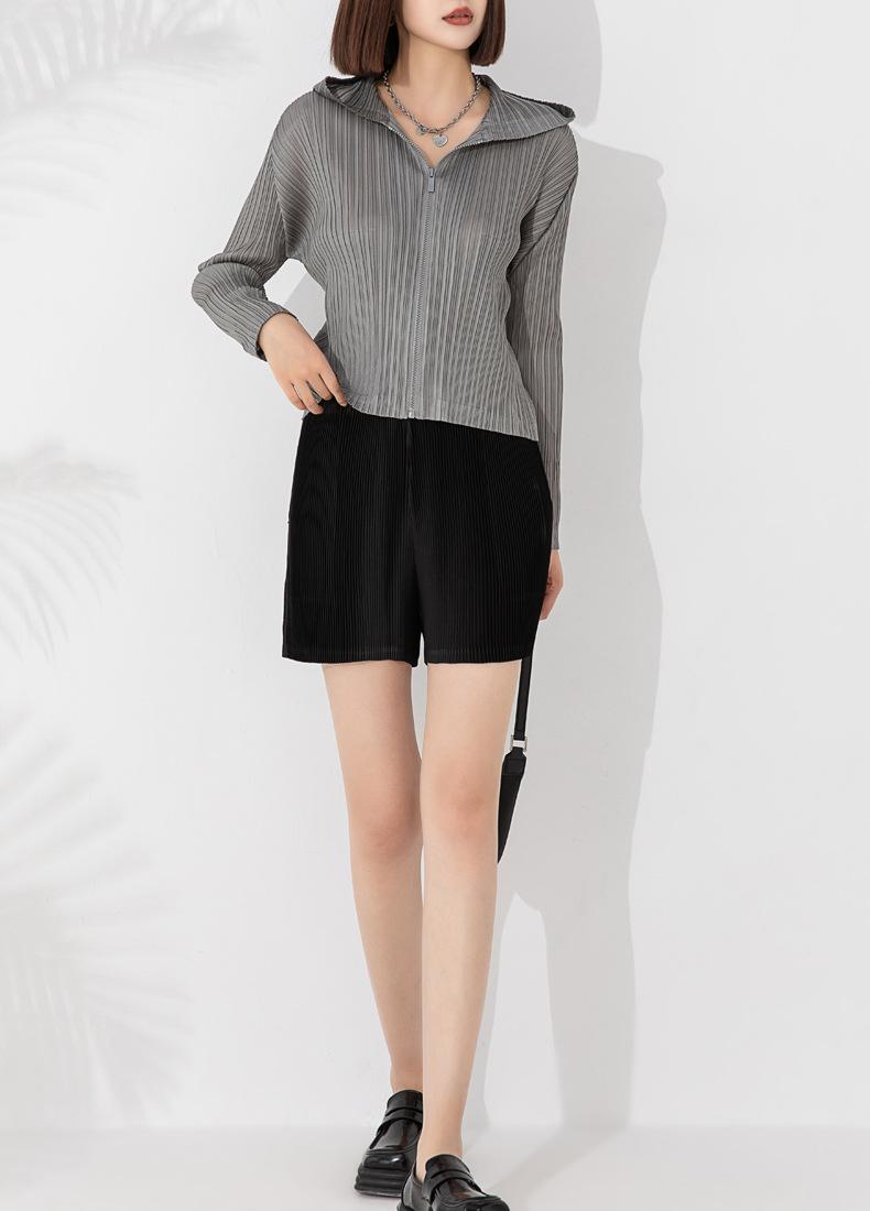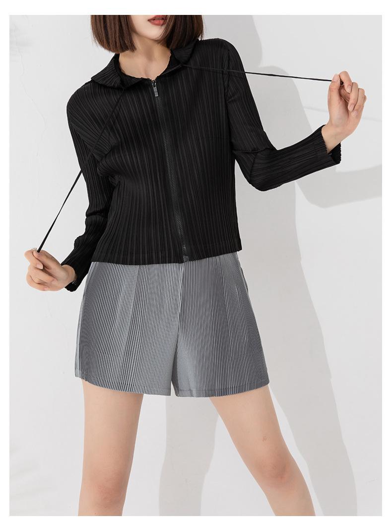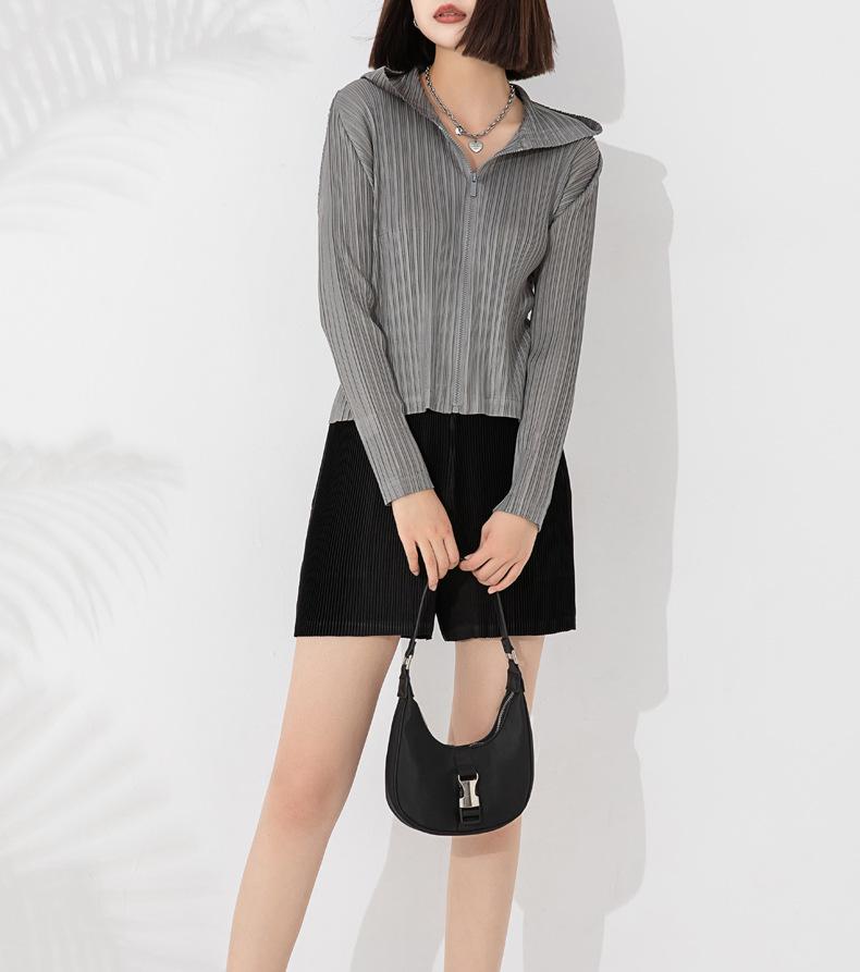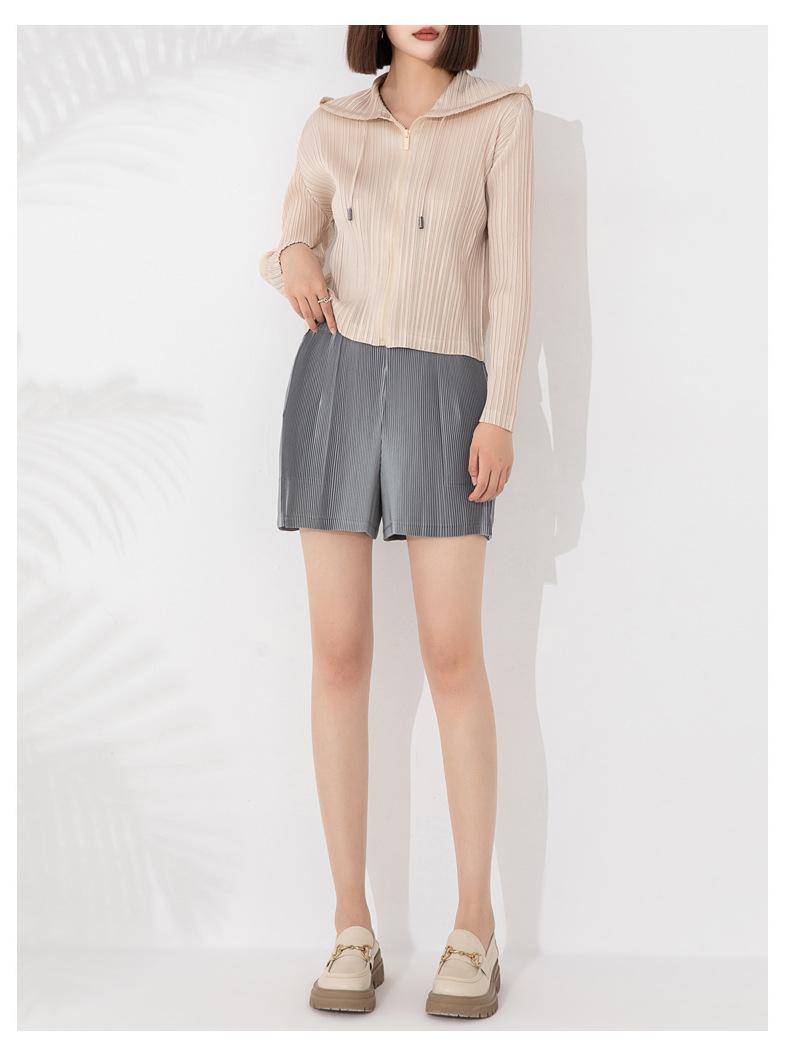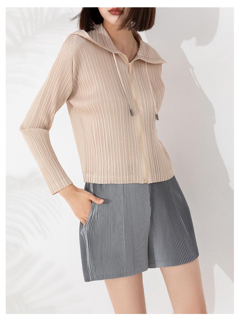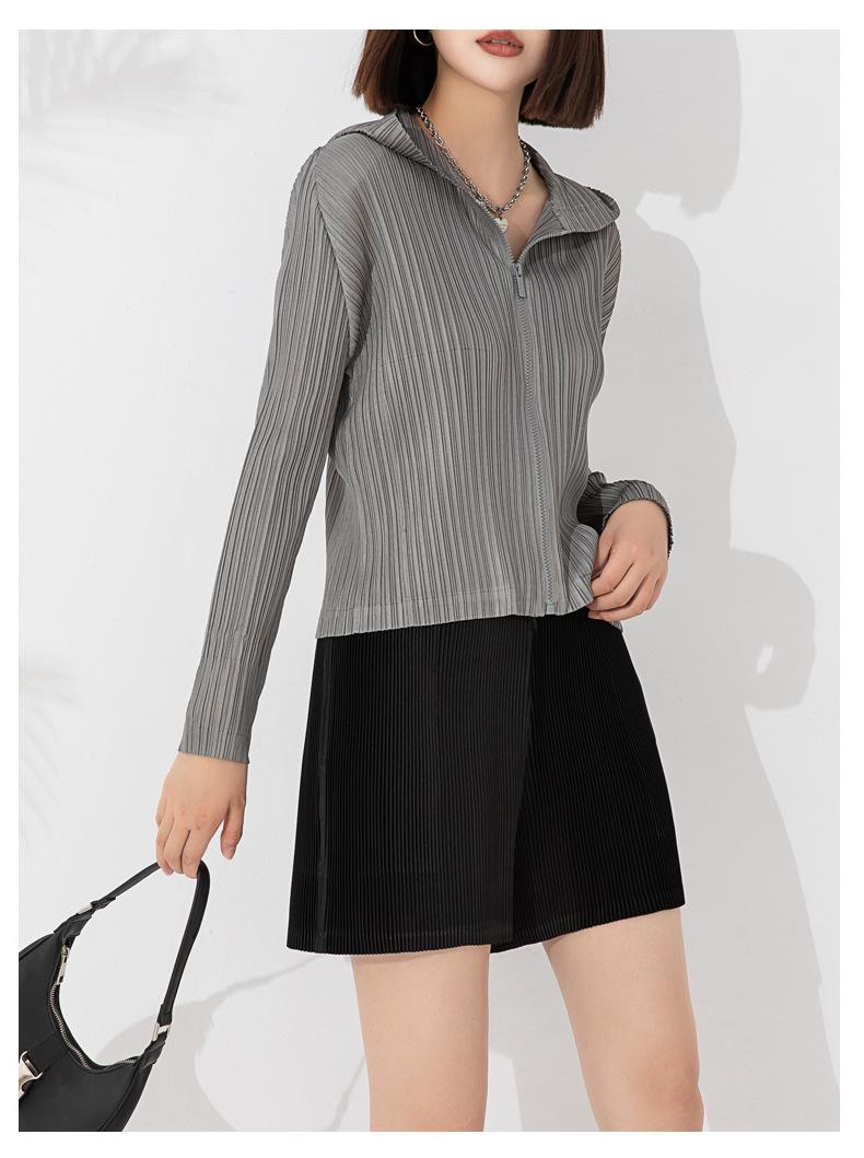 Chaqueta tipo cárdigan de manga larga con capucha y color liso de alta calidad, plisada, con cremallera y protector solar para mujer, primavera y verano 2024