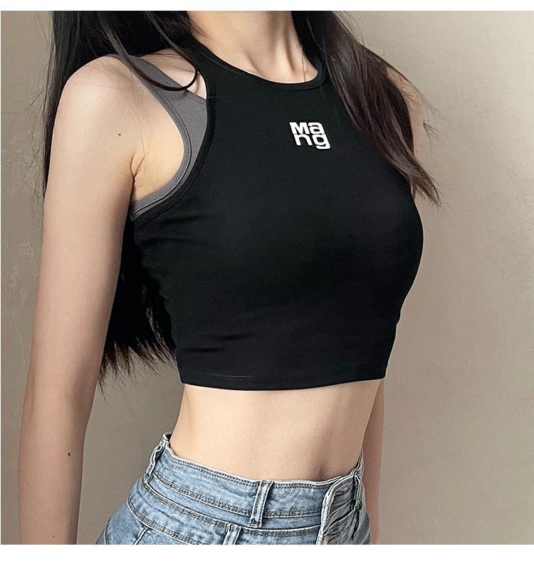 Chaleco de mujer 2024, informal, combinable con todo, sin mangas, con logo bordado, estilo moderno, con tirantes para mujer