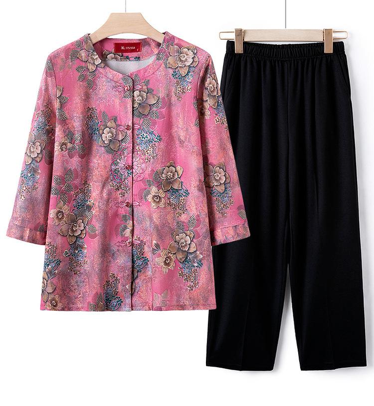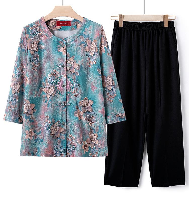 Vestido de verano para señora mayor, conjunto de dos piezas para mujer, camisa fina abotonada de verano para abuela, traje de madre para mujer de mediana edad y mayor.