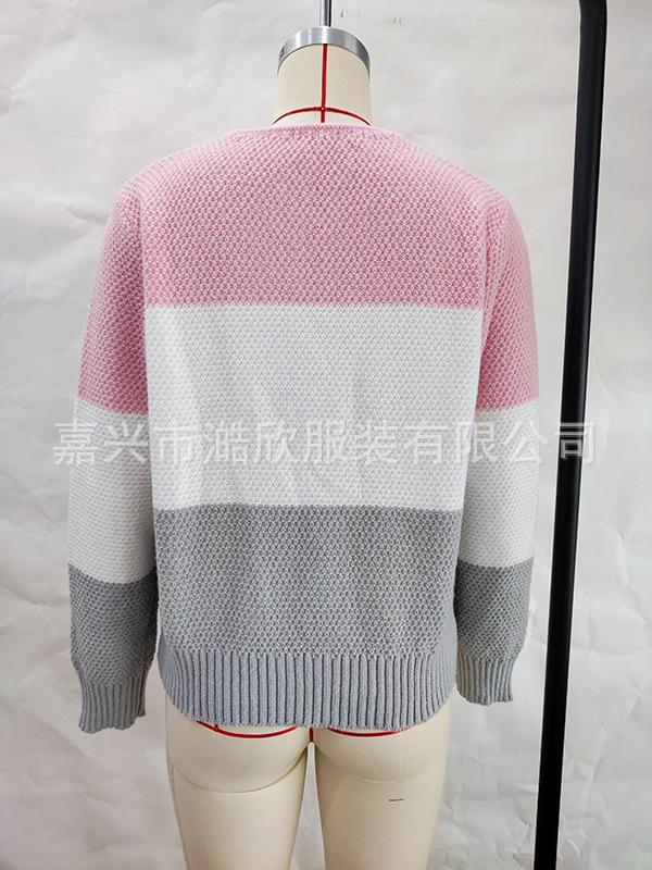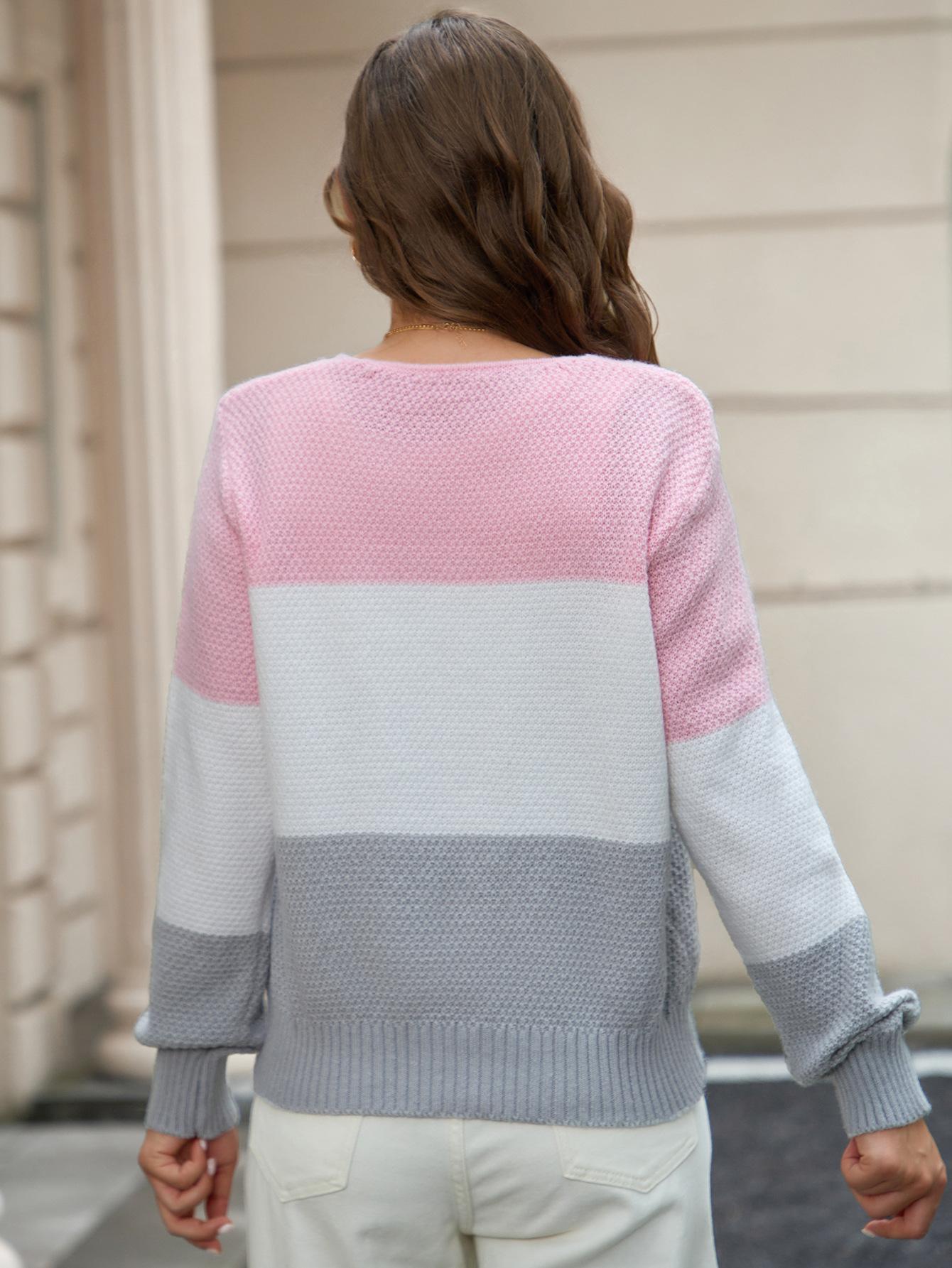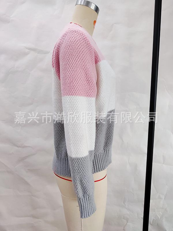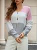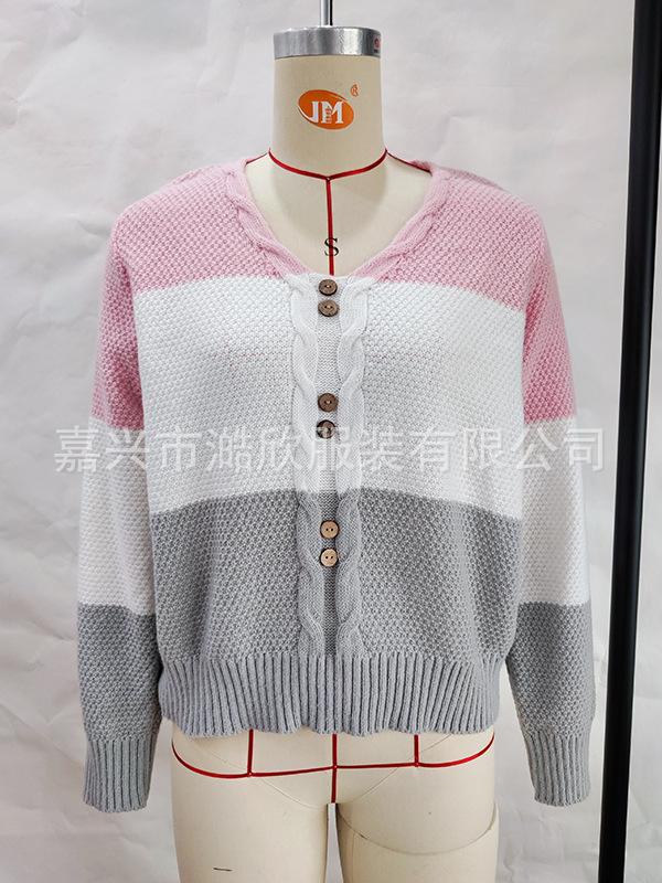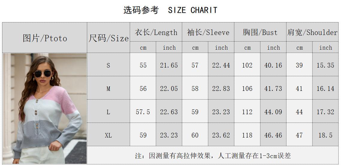 Suéter de mujer de comercio exterior transfronterizo de estilo europeo y americano, suéter de temperamento con cuello en V, suéter de manga larga, top con botones a juego de colores de moda