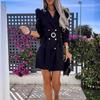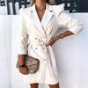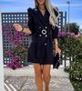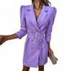 Amazon transfronterizo otoño nuevo para mujer europeo y americano solapa manga larga doble botonadura traje de trabajo vestido