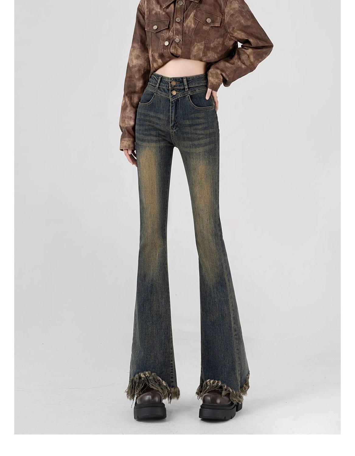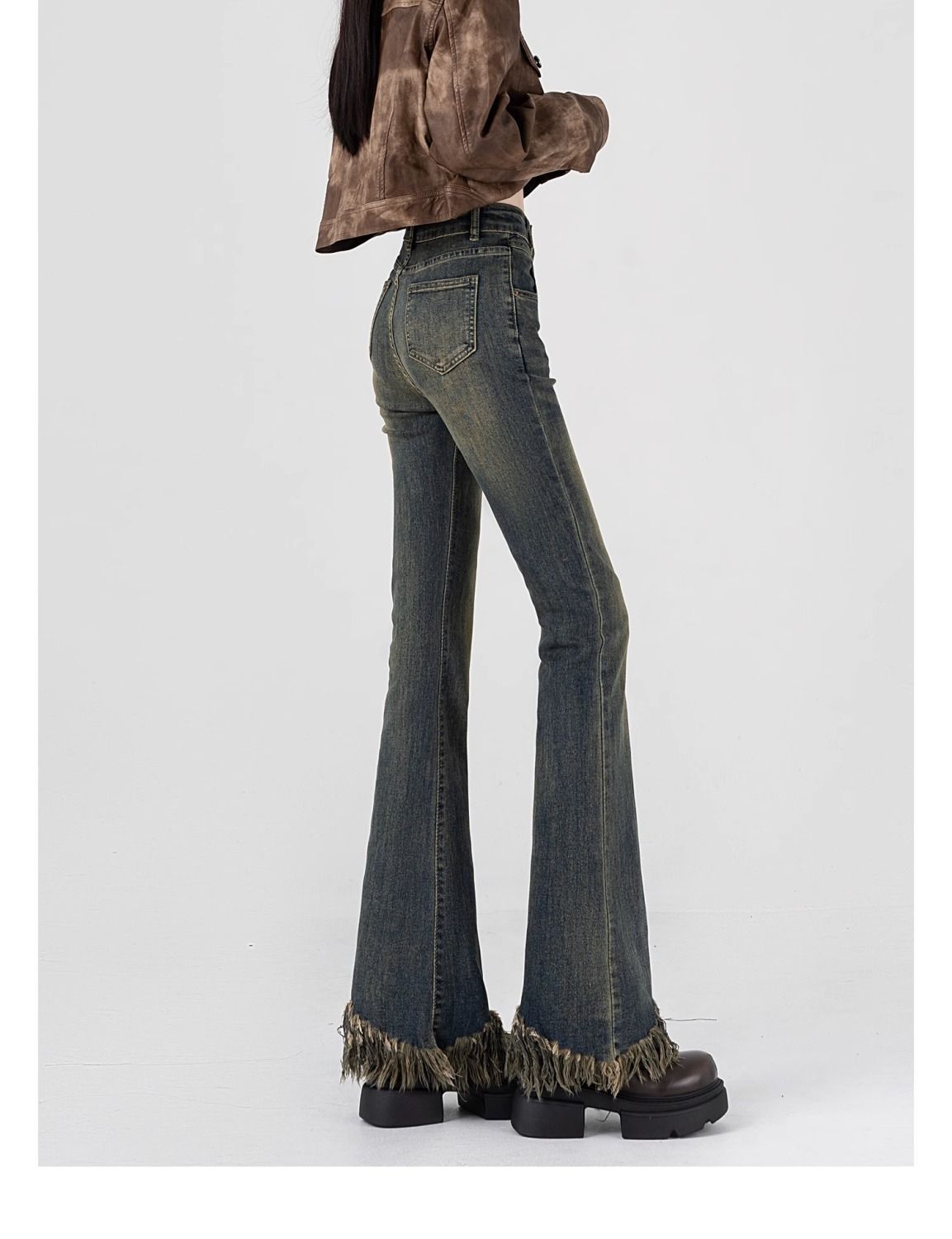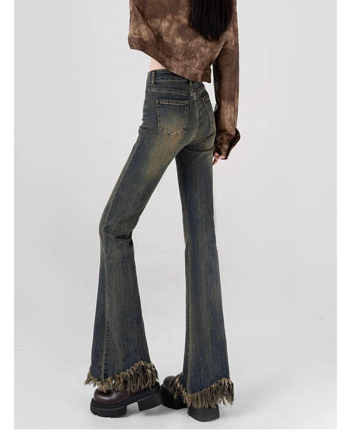 Jeans acampanados micro retro de nicho para mujer 2024 Primavera Nuevo Diseño Cintura alta adelgazantes borlas pantalones de herradura