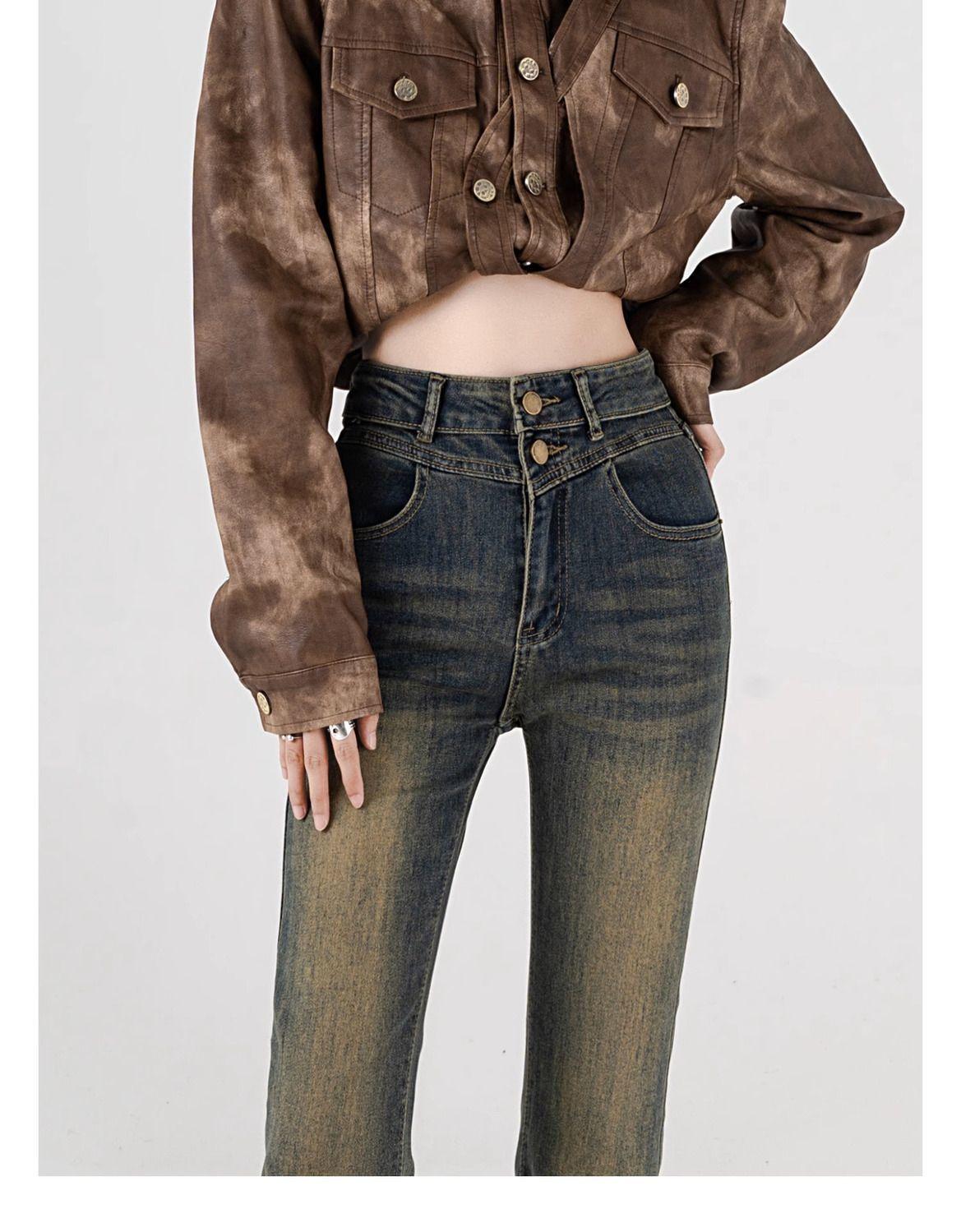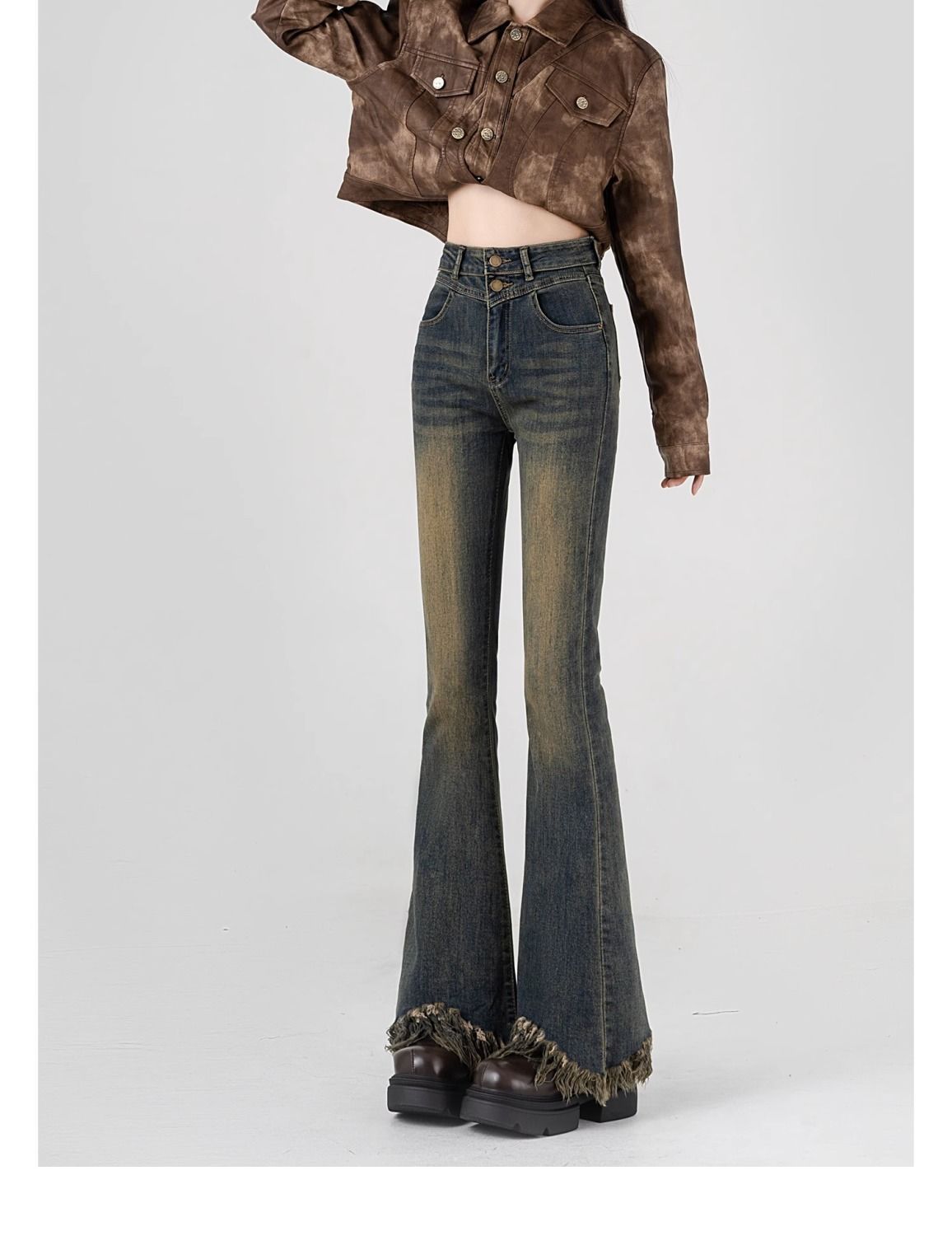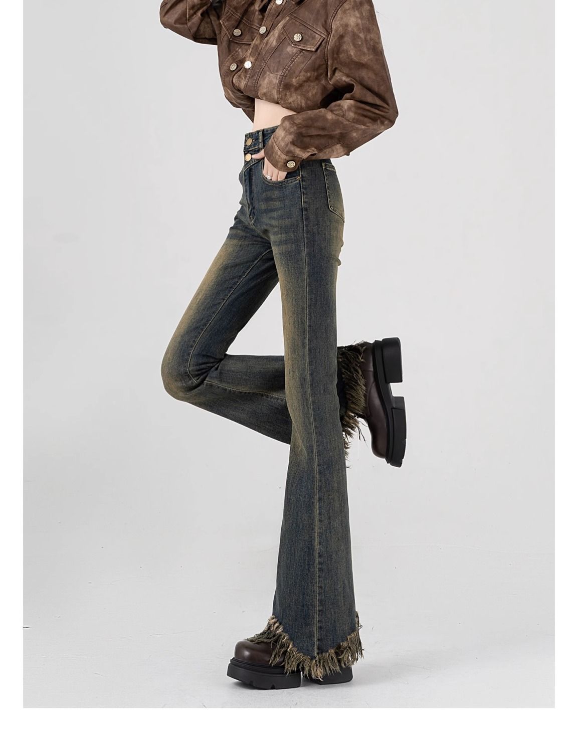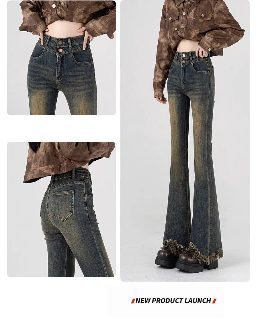 Jeans acampanados micro retro de nicho para mujer 2024 Primavera Nuevo Diseño Cintura alta adelgazantes borlas pantalones de herradura