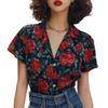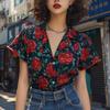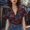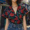 Camisa Retro Estilo Hong Kong con Estampado de Rosas Ropa de Verano de Moda Estilo Europeo Caliente para Mujer 2024 Nueva Camisa Holgada