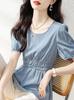 Camisa de manga corta con cuello en V y mangas abullonadas de verano 2023, estilo coreano, informal, adelgazante, con exquisito temperamento para viajeros