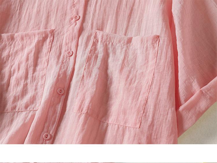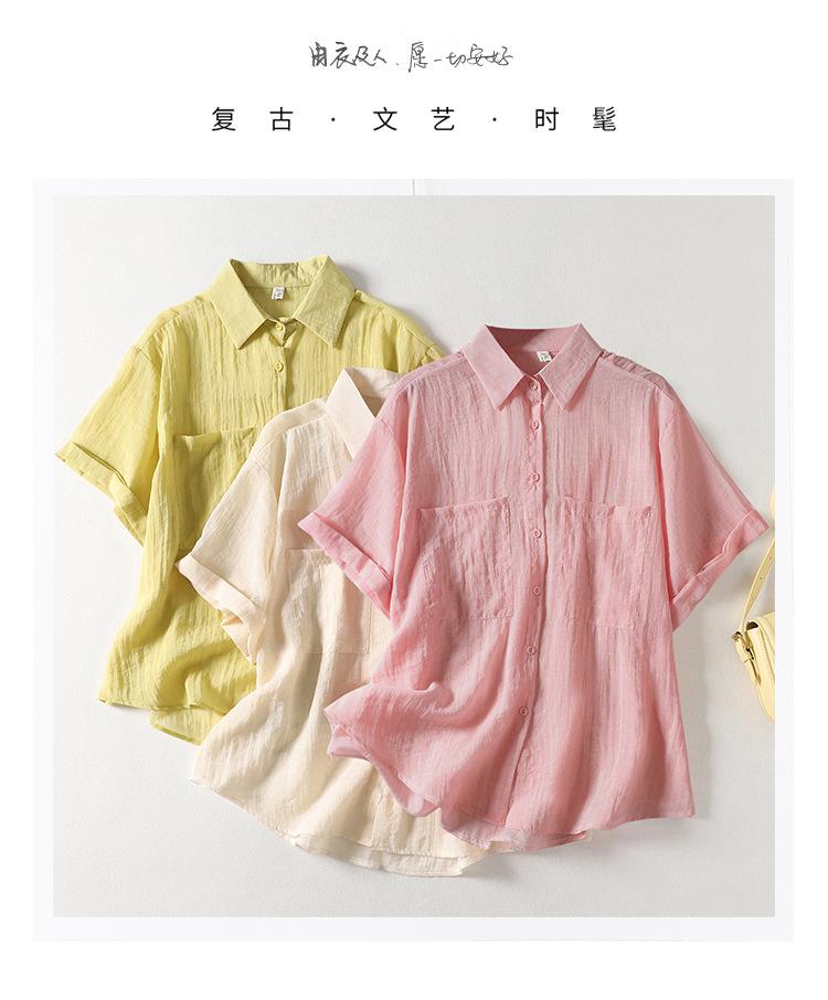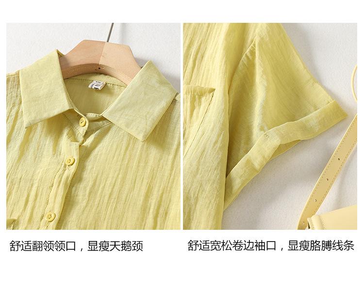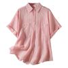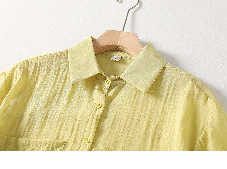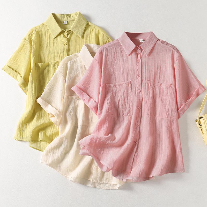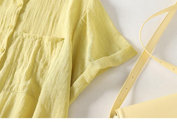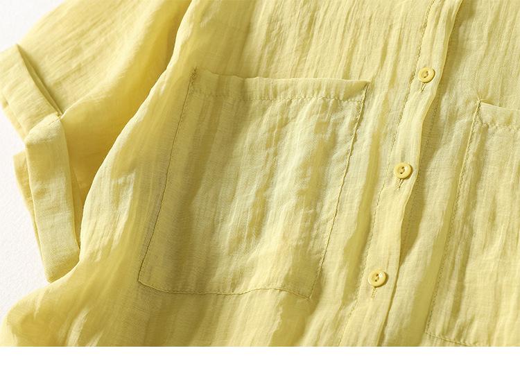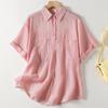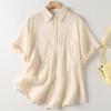 Camisa Tencel de Manga Corta con Solapa para Mujer Verano 2024 Nueva Ligera Transpirable Plisada Holgada Casual