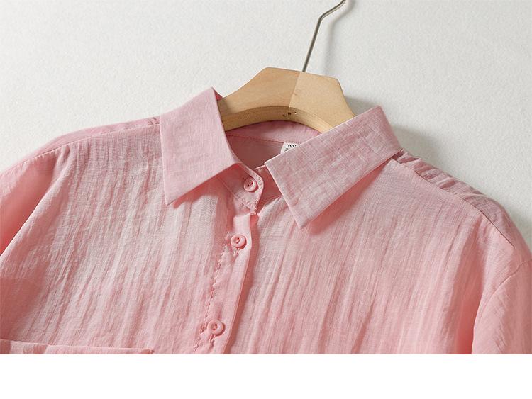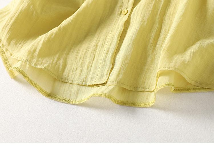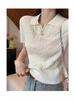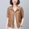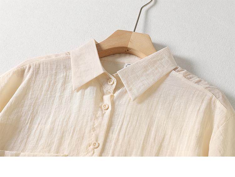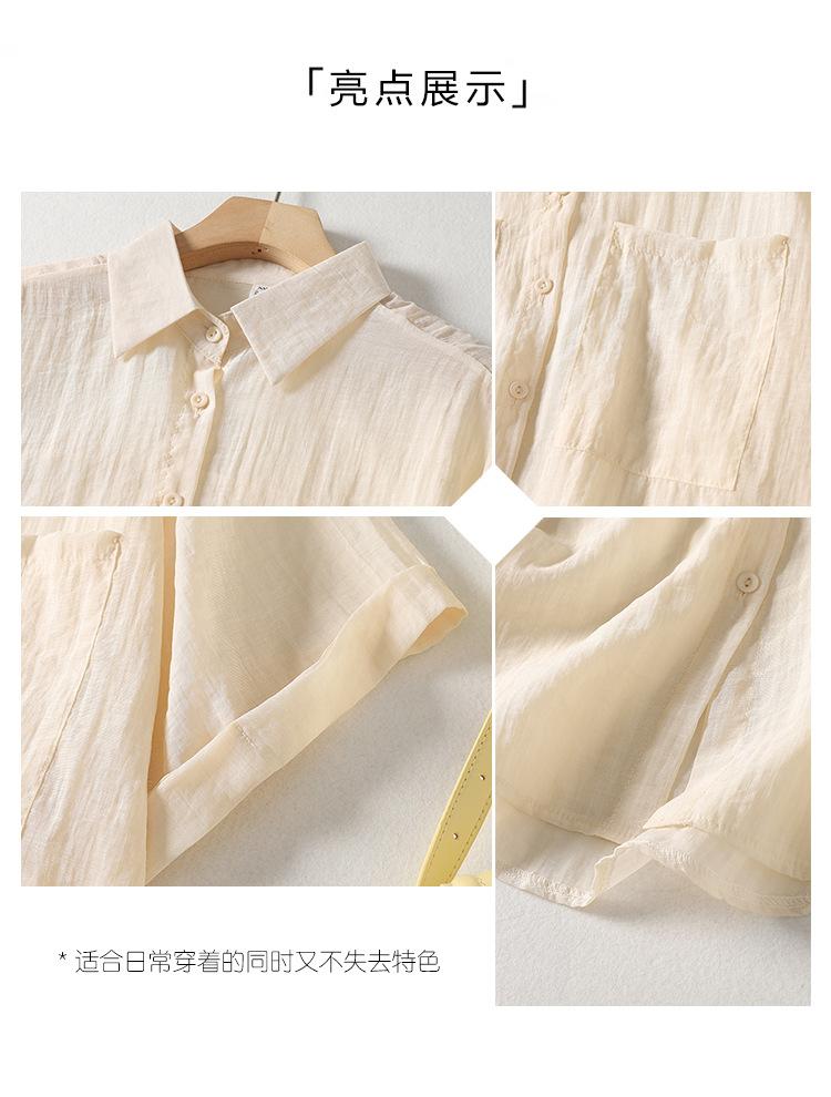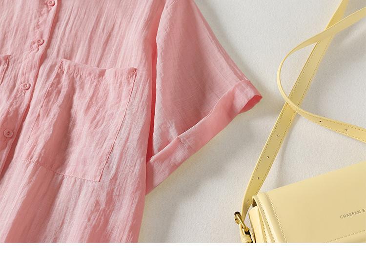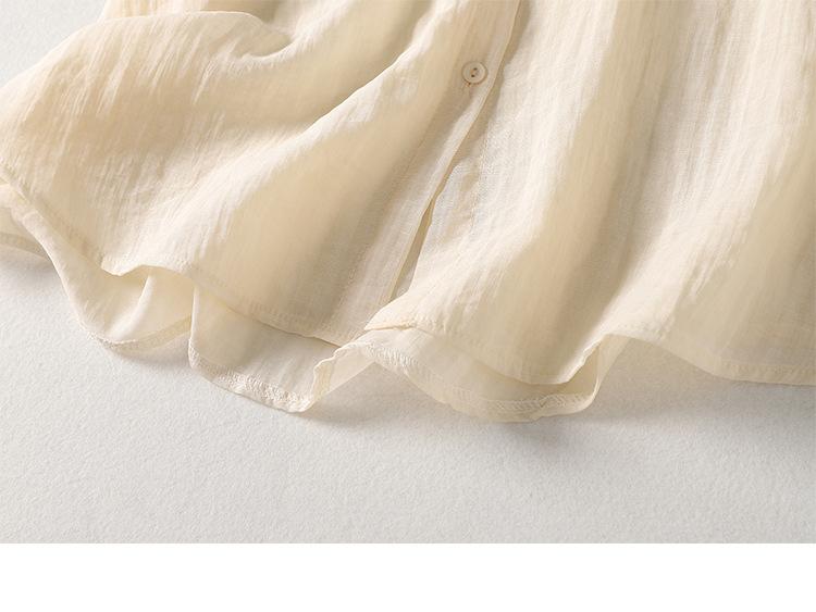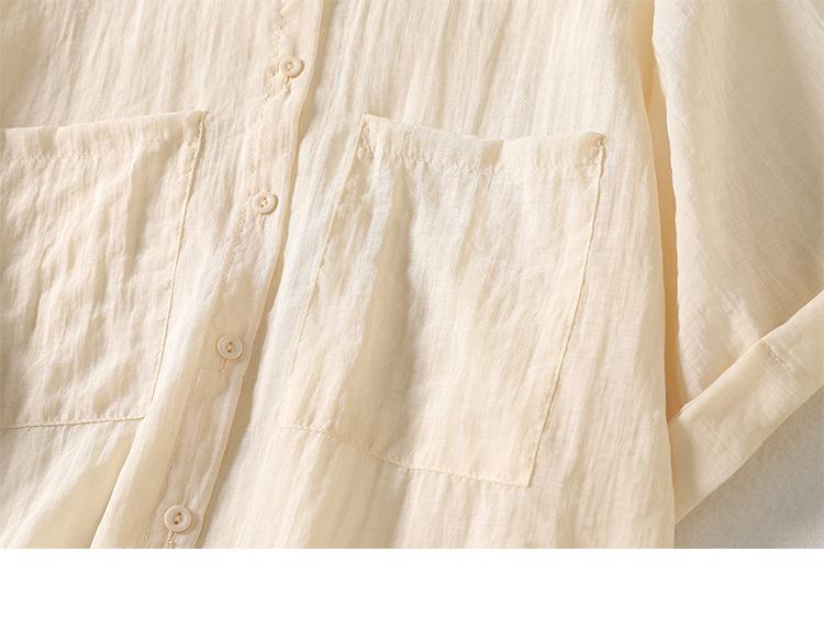 Camisa Tencel de Manga Corta con Solapa para Mujer Verano 2024 Nueva Ligera Transpirable Plisada Holgada Casual